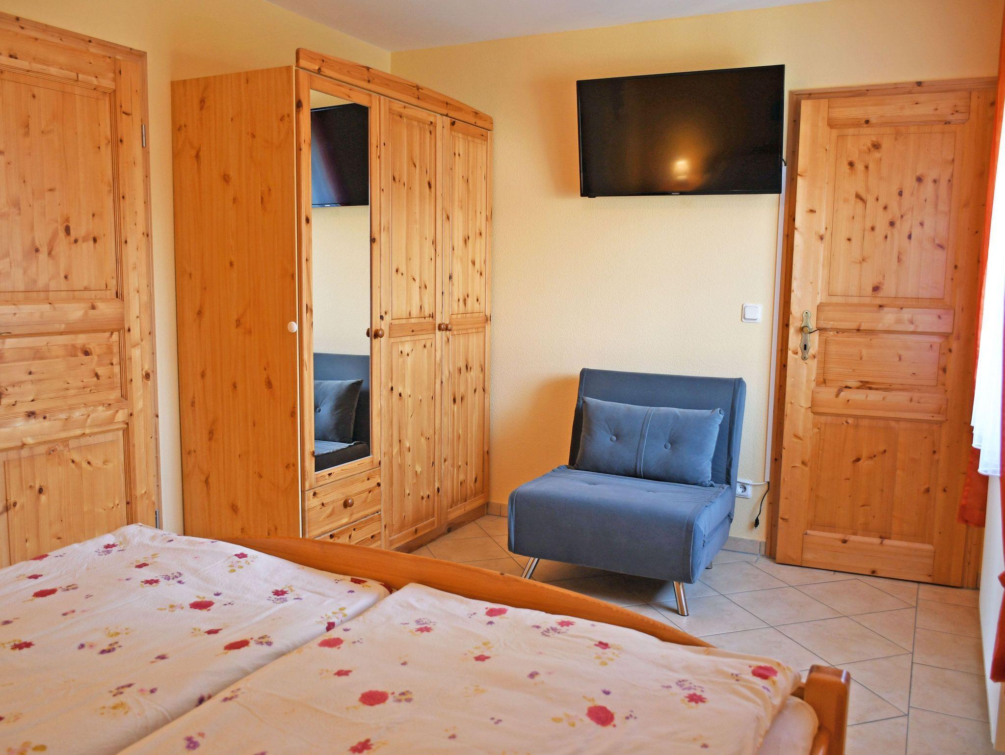 Im 1. und 2. Schlafzimmer stehen je ein Doppelbett mit Nachttischen und Leselampen sowie ein Schrank. Ein Schlafzimmer verfügt auch über einen Flachbild-TV. Das Bad ist mit Dusche, Handtuchtrockner, WC und Waschbecken ausgestattet. Die Schlafcouch im Wohnzimmer kann für zwei Aufbettungen genutzt werden. Bei Ihrer Anreise sind die Betten bereits mit Bettwäsche bezogen und es liegen für Sie frische Handtücher bereit.