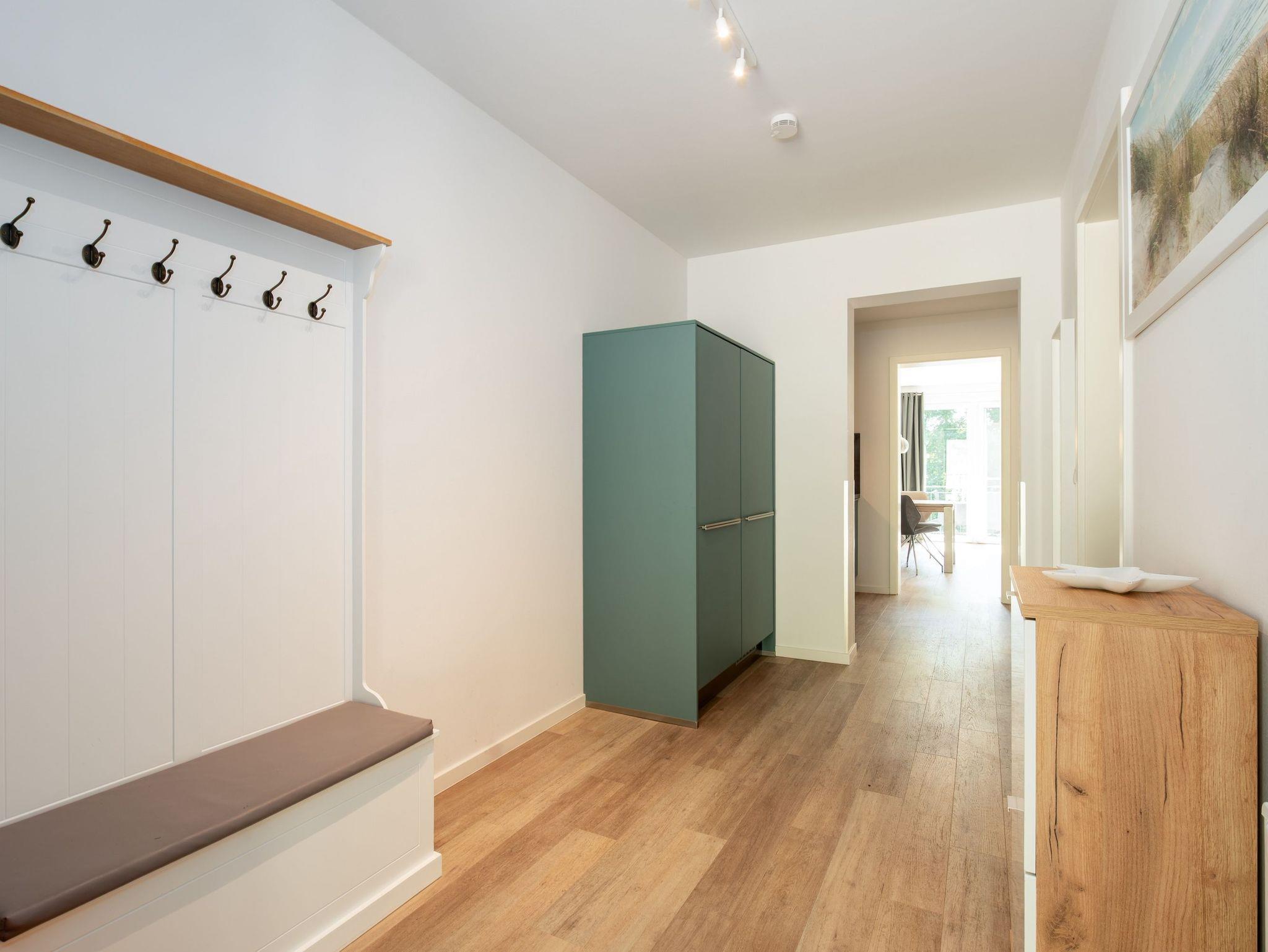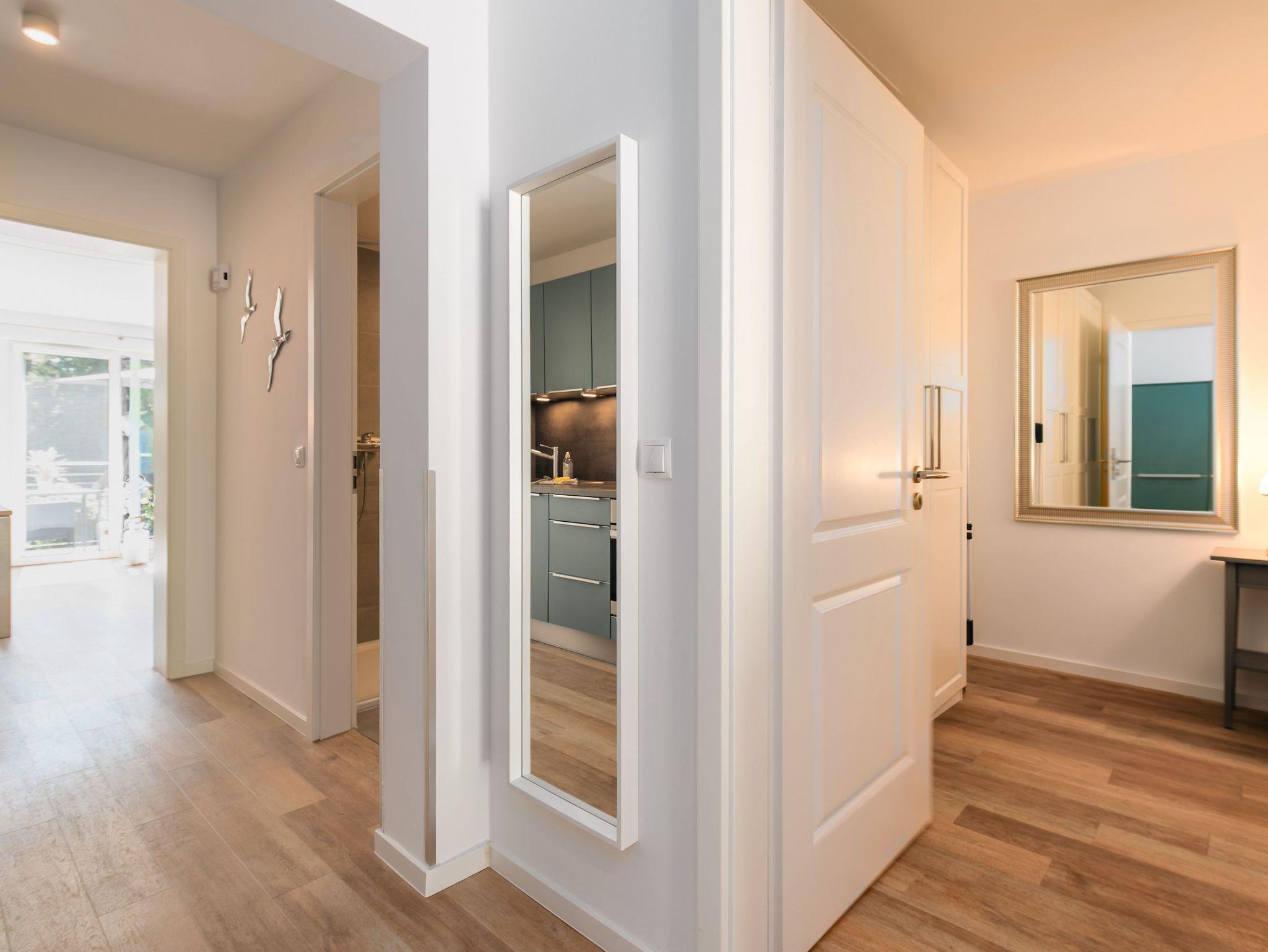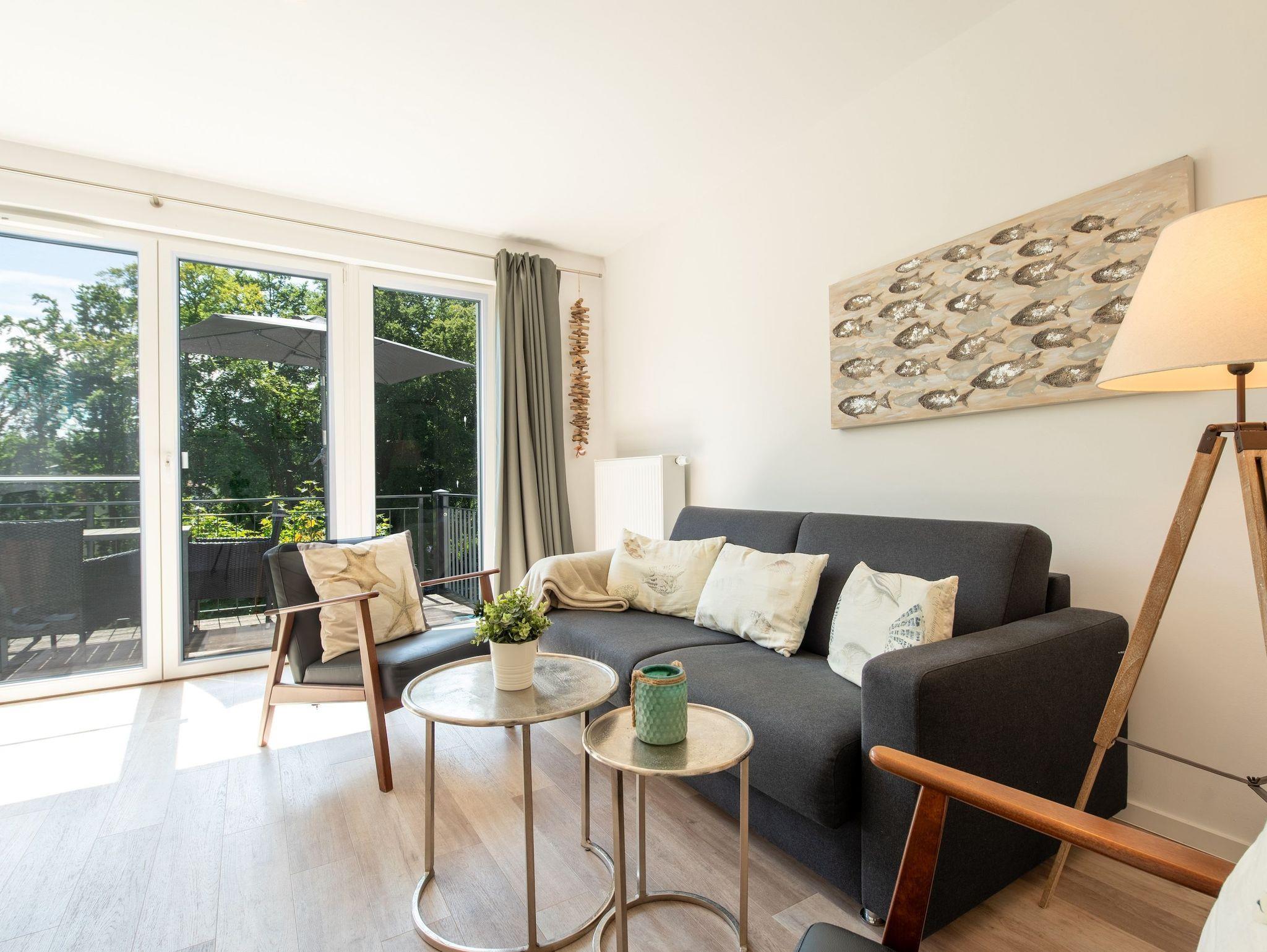 Treten Sie ein und lassen Sie sich vom offenen, lichtdurchfluteten Flur empfangen, der mit einer charmanten maritimen Atmosphäre sofort Urlaubsstimmung entfacht. Der Wohnbereich besticht durch eine moderne, zugleich behagliche Couchgarnitur, die auch Platz für eine zusätzliche Person bietet. Der angrenzende Essbereich lädt zu genussvollen Stunden ein, während der großzügige Flachbild-TV für entspannte Unterhaltung sorgt.
