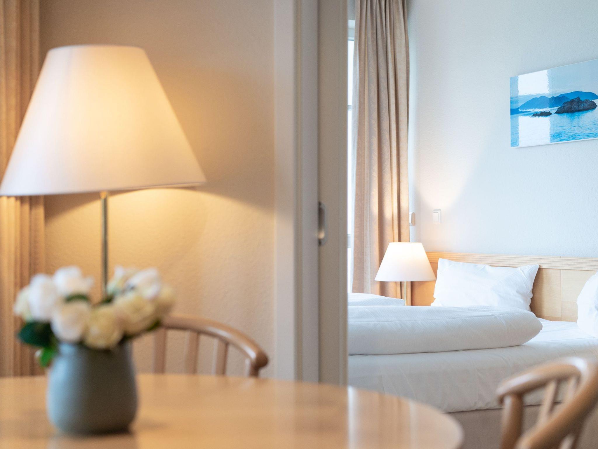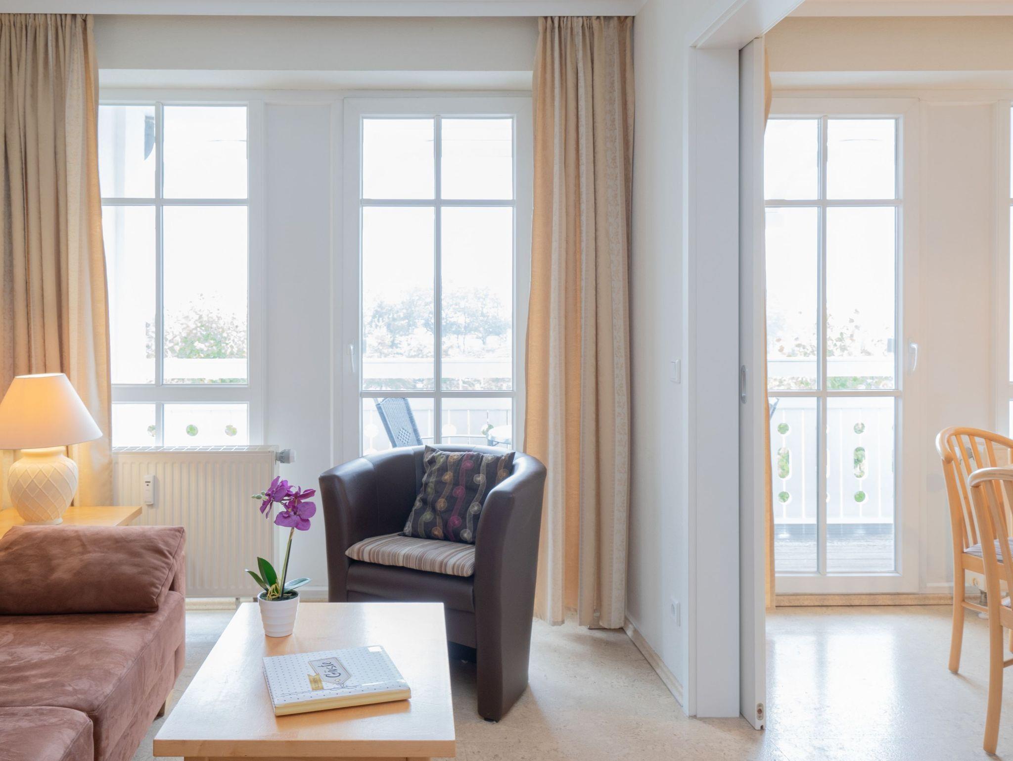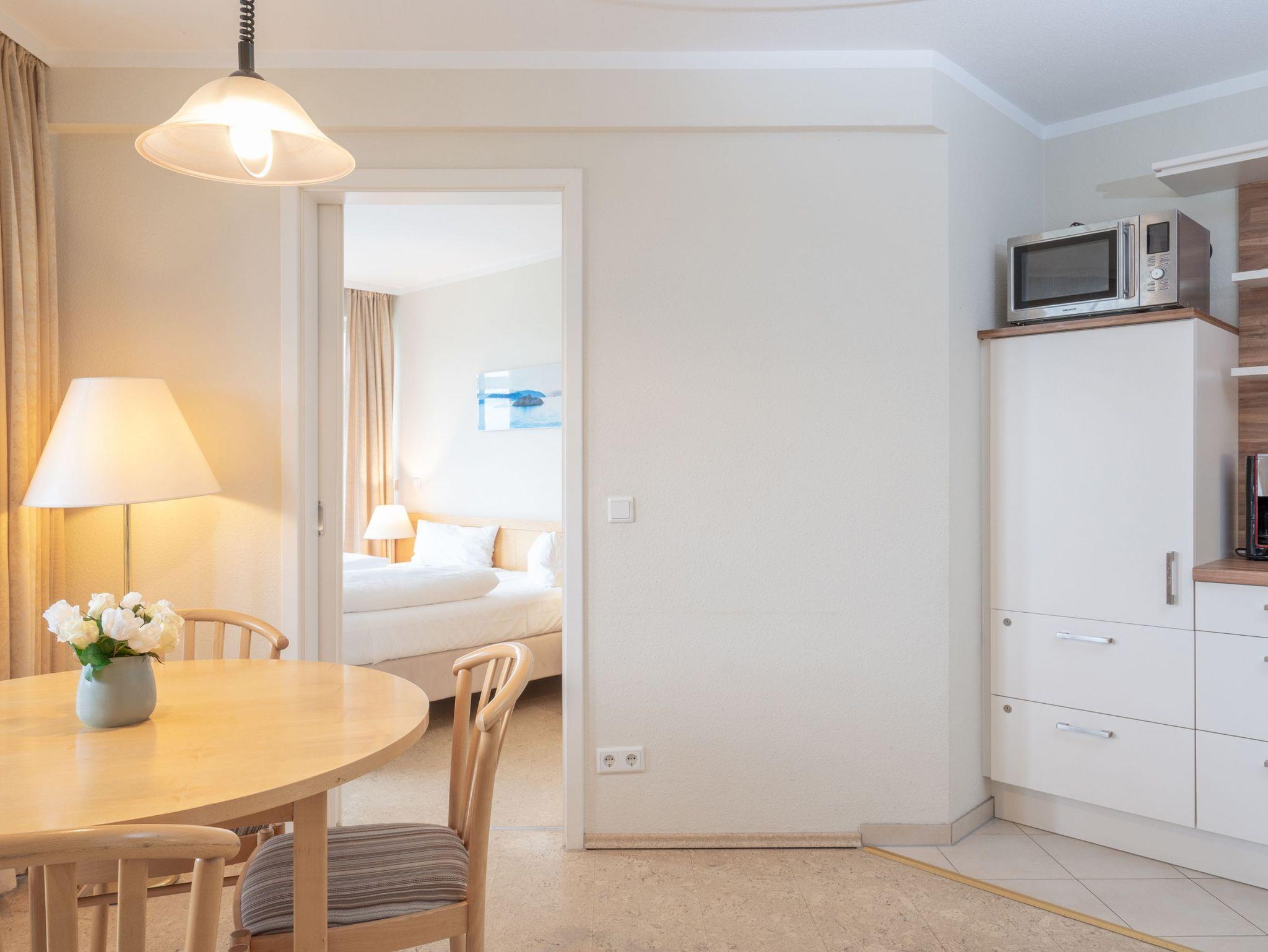 Nach einem erlebnisreichen Urlaubstag können Sie auf dem Balkon in Südwestlage Platz nehmen. Der Ausblick und die Sitzgruppe sorgen hier für ein wunderbares Urlaubsgefühl. Im Nichtraucher-Apartment ist ein mitreisendes Haustier gestattet.