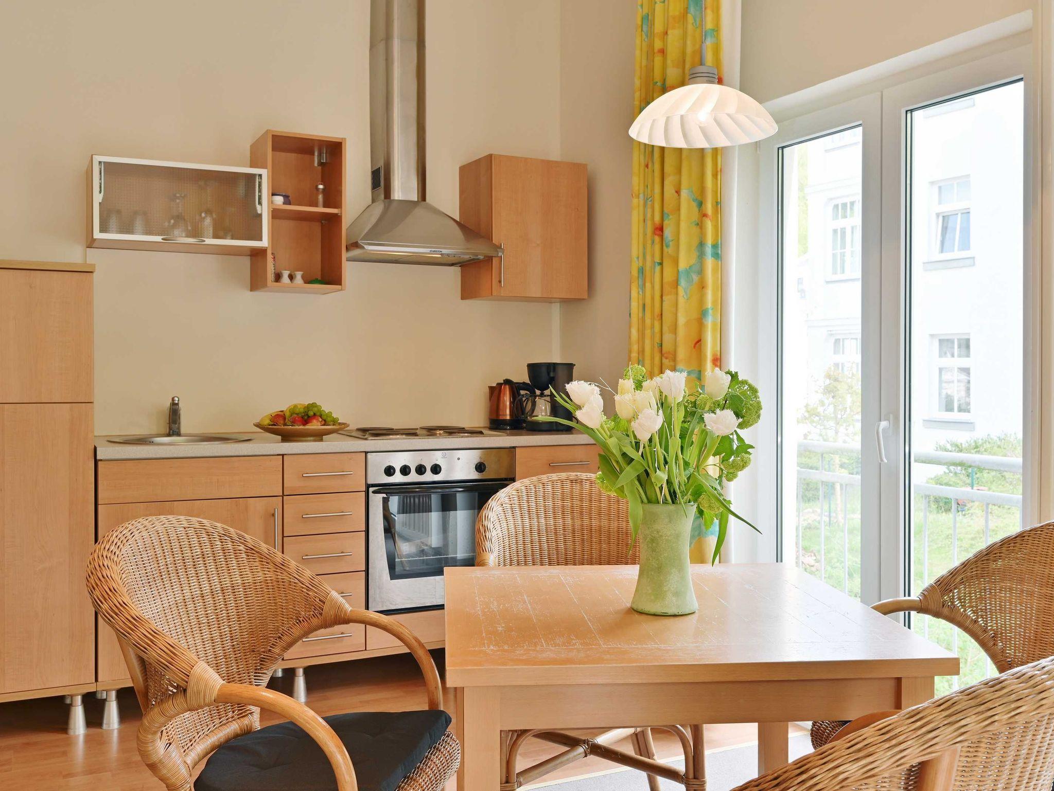 Jede Ferienwohnung ist nach hohen Standards modern und gemütlich eingerichtet und verfügt über einen großzügigen Balkon oder eine Loggia. Von den Ferienwohnungen in den oberen Stockwerken haben die Gäste einen wunderschönen Blick auf die Wilhelmstraße, den Selliner See, die Selliner-Seebrücke und / oder die Ostsee.