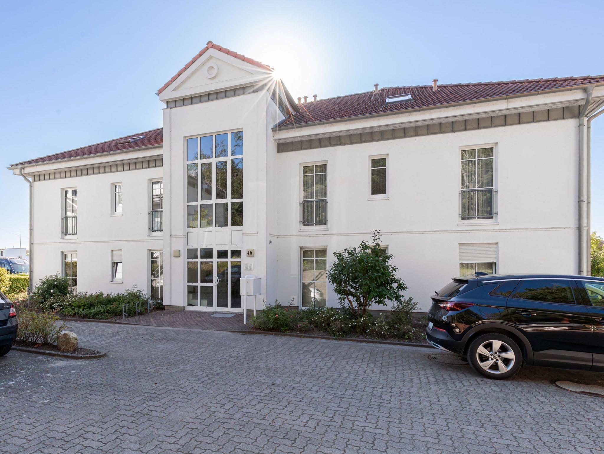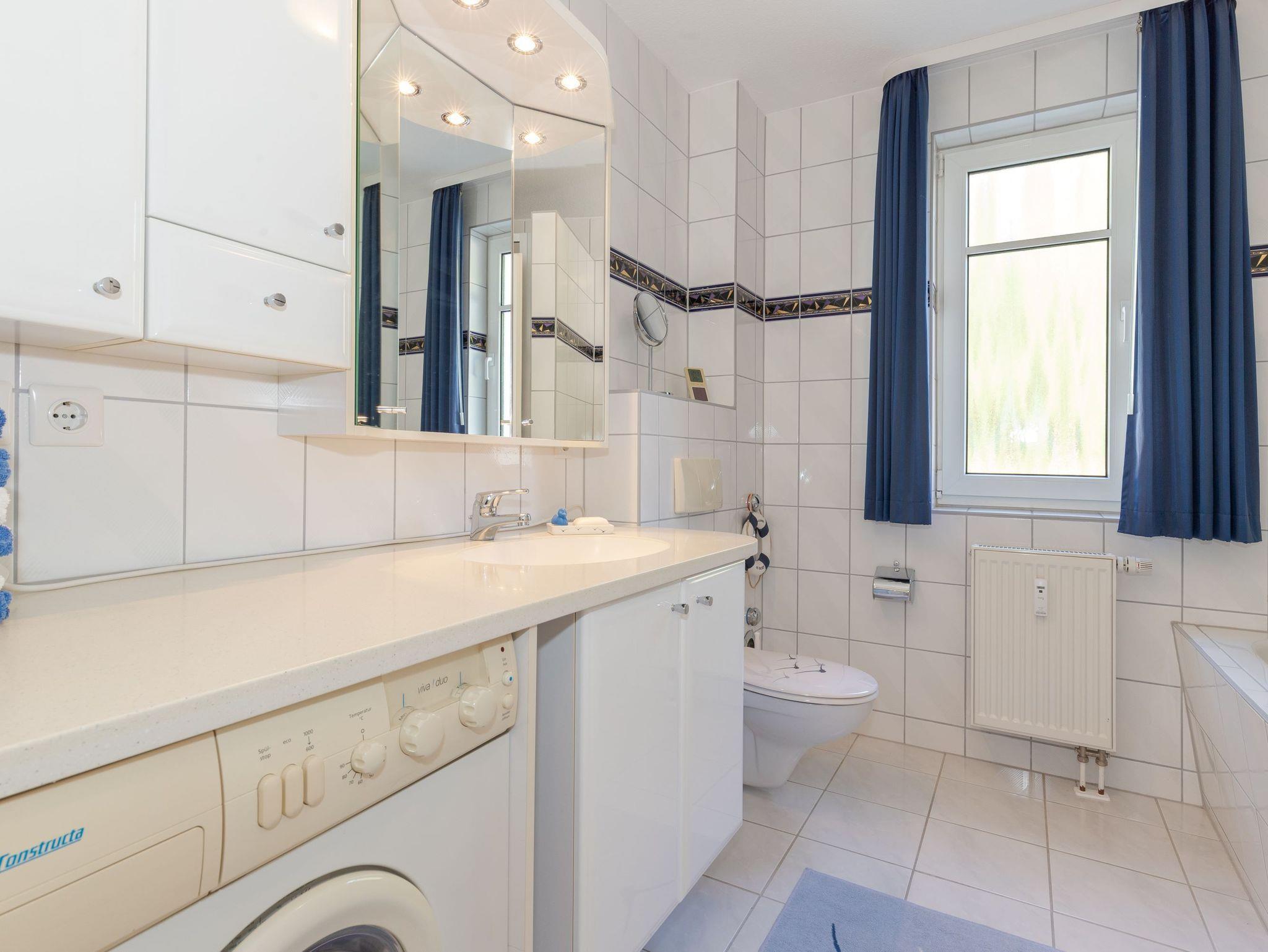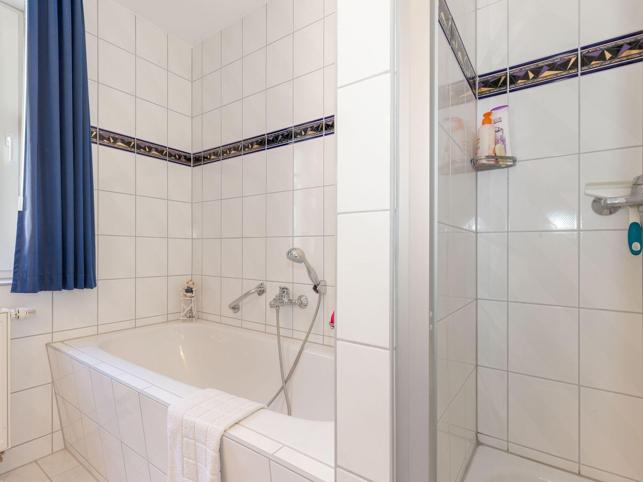 Das moderne Badezimmer ist mit einer Badewanne, Dusche, einem Waschbecken und einer Toilette ausgestattet. Ein Parkplatz befindet sich direkt am Haus, ein abschließbarer Fahrradraum im Nebenhaus kann gemeinschaftlich genutzt werden.