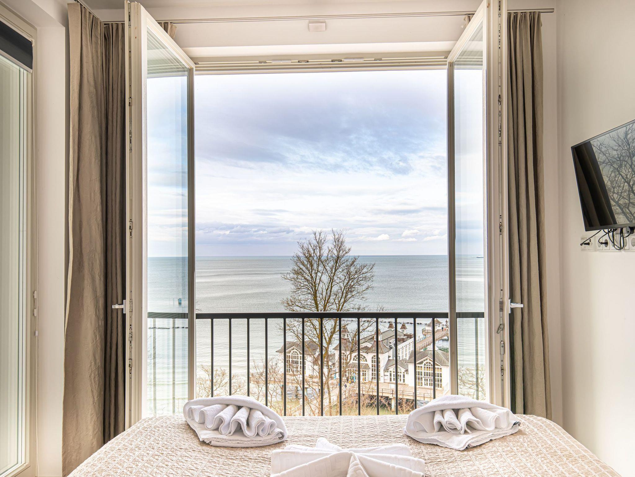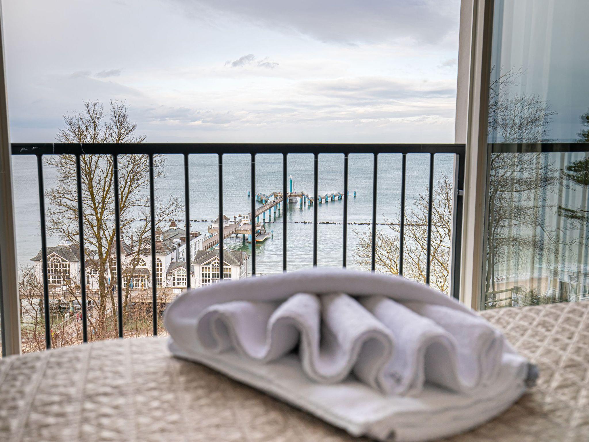 Die Ferienwohnung mit dem Namen FIRST Meerblick bietet auf 89 m² ausreichend Platz für bis zu 4 Personen. Sie befindet sich in der 3. Etage des Hauses FIRST Sellin und verfügt über 1 Schlafzimmer und 1 Badezimmer. Zur Ausstattung dieser schönen Wohnung gehört selbstverständlich auch ein Tiefgaragenstellplatz. Eine Kaffeemaschine und eine Spülmaschine stehen Ihnen in der Küchenzeile zur Verfügung. Aus der gesamten Wohnung genießen Sie einen traumhaften Panorama-Meerblick welcher einen schon beim ersten betreten der Wohnung fesselt. Zusätzlich zum saisonal geöffneten Außenpool, steht Ihnen ganzjährig und kostenfrei ein Sky-Infinitypool (Indoor auf dem Dach des Gebäudes) zur Verfügung. Außerdem gibt es einen WLAN Anschluss, der Ihnen eine unkomplizierte Internetnutzung ermöglicht. Entspannung finden Sie auch im hauseigenen Saunabereich, welcher ebenfalls kostenfrei zur Ausstattung gehört. Die Ferienwohnung ist sowohl für Familien als auch für Radfahrer geeignet. Die Ortsmitte ist nur ca. 100 m entfernt und der Strand ist nur ca. 80 m entfernt. Ebenso befinden sich eine Vielzahl sehr guter Restaurants in unmittelbarer Nähe. Hier bleiben also keine Wünsche offen.