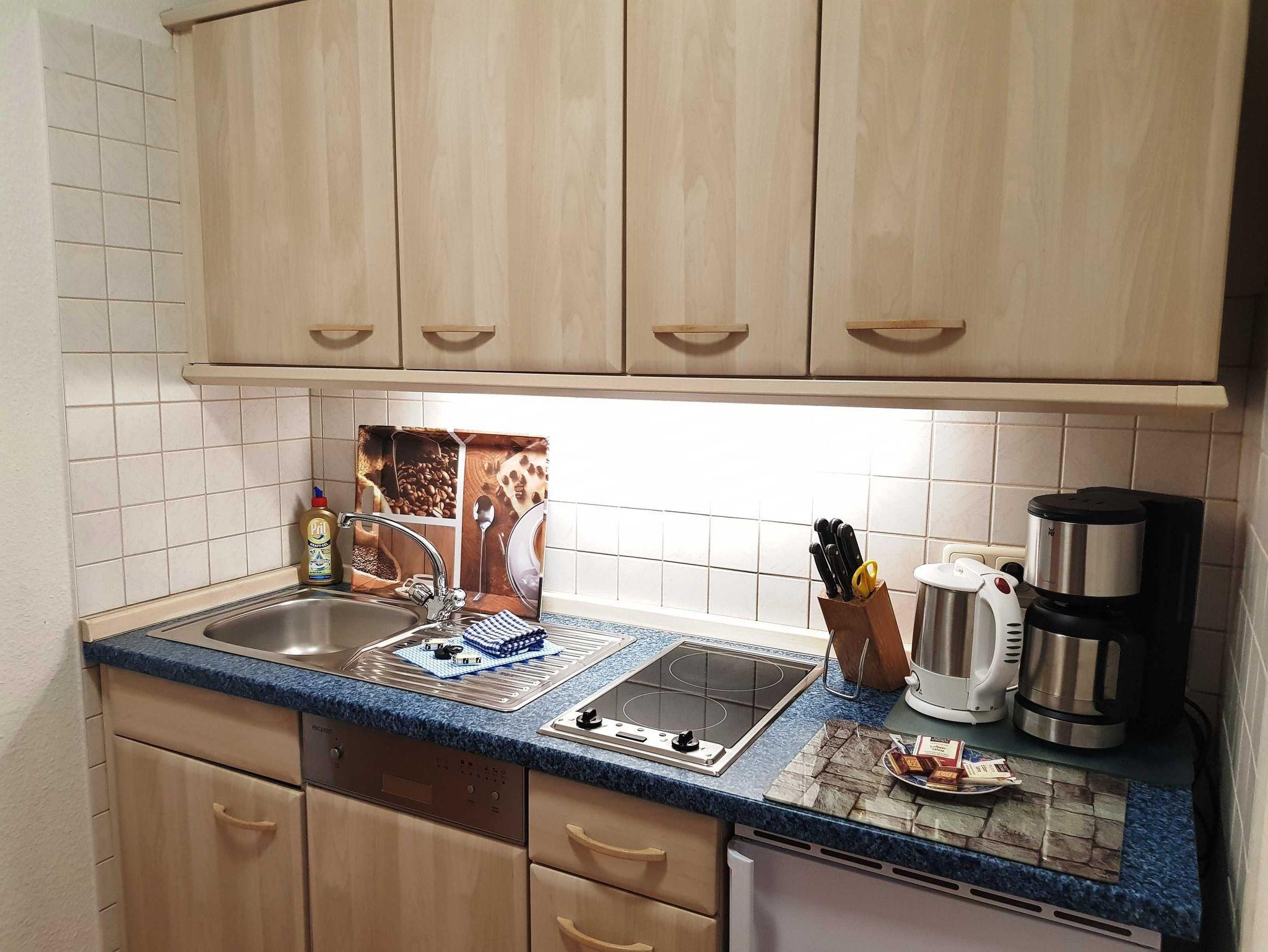 2 Raum Apartment mit Wohn-Schlafraum und Doppelbett und einem 2. Zimmer mit Ausziehcouch .Einem Esstisch im Wohnschlafraum für 4 Personen und gut ausgestatte Küche mit Geschirrspüer, Kaffemaschine, Wasserkocher etc. Babybetten ohne Wäsche können für einmalig 10 Euro gemietet werden. Bitte vorbestellen .