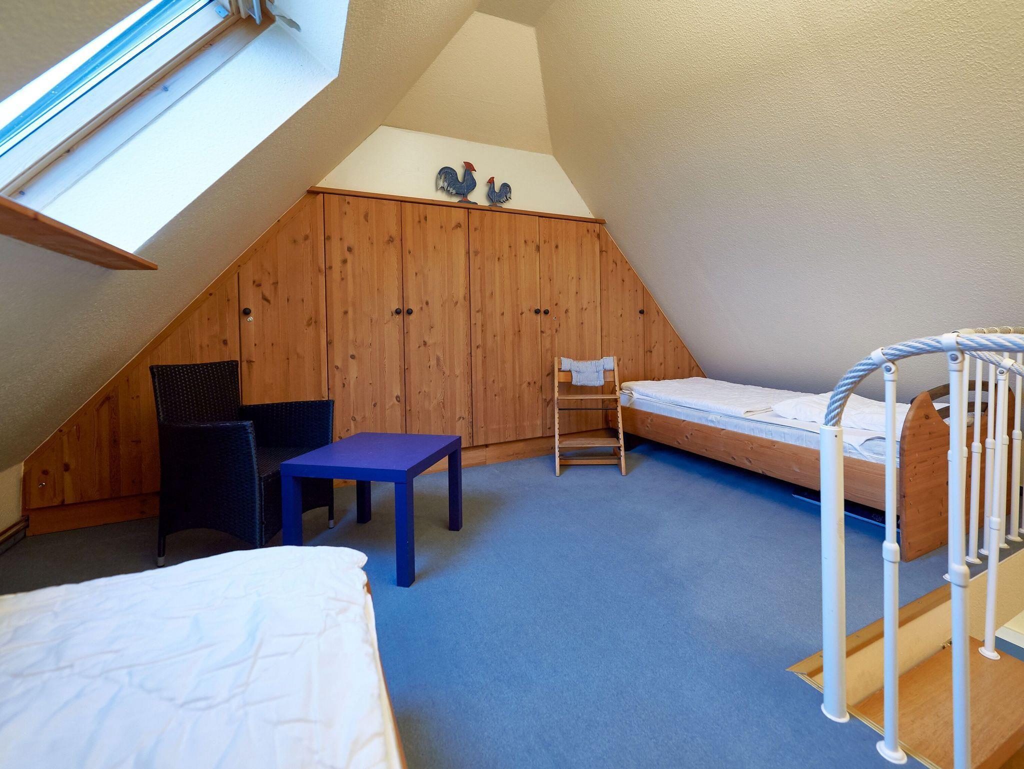 In der Galerie im zweiten Obergeschoss unter dem Dach gibt es zwei weitere Einzelbetten (1,00 x 2,00m) und einen geräumigen Einbauschrank.