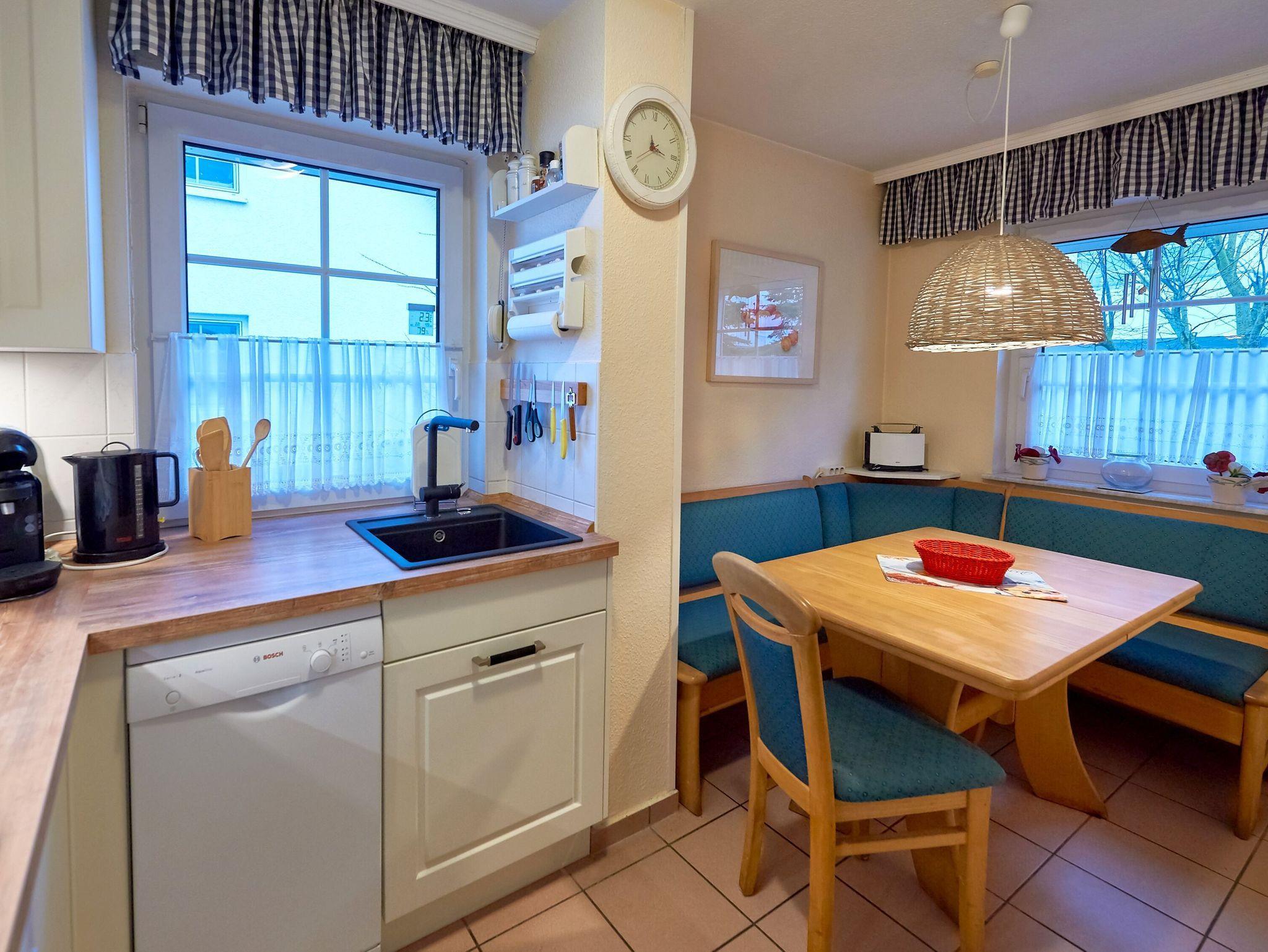 Speisen können Sie wahlweise an der gemütlichen Sitzecke gleich neben der Küche oder auf der Terrasse draußen in der frischen Ostseeluft. Die Sonne haben Sie hier vom späten Vormittag bis in die Abendstunden zu Gast und können den herrlichen Seeblick genießen.