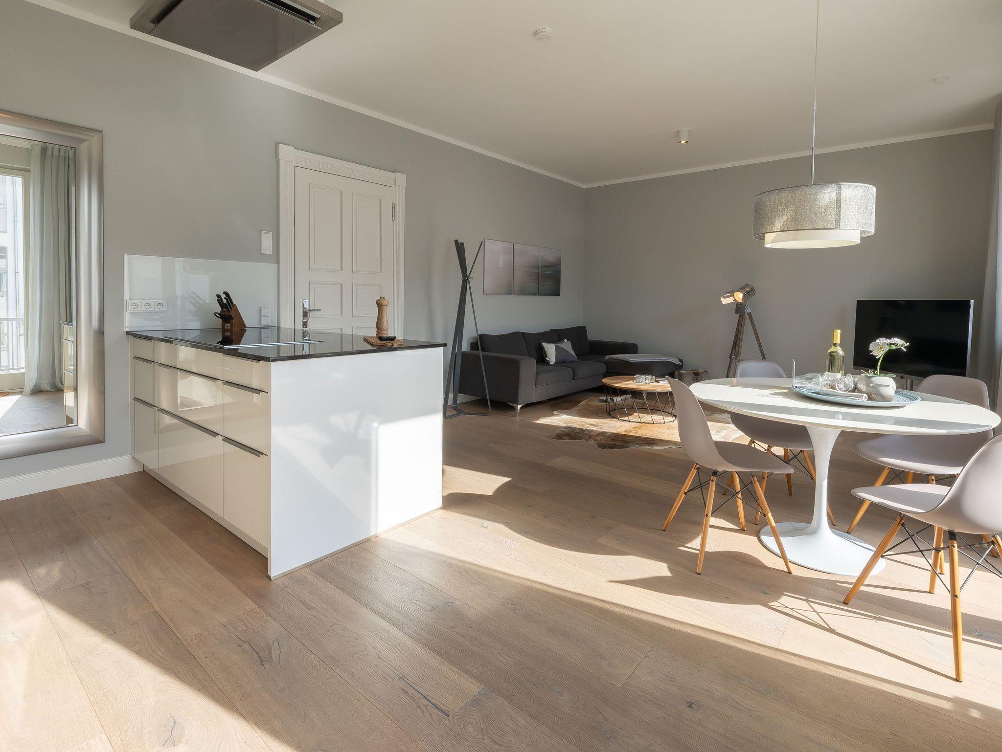 Die Ferienwohnung mit dem Namen FIRST Lands End bietet auf rund 55 m² [nbsp]Wohnfläche ausreichend Platz für 2 Personen. Sie befindet sich in der 3. Etage des Hauses FIRST Sellin und verfügt neben einem großen Wohn-, Essbereich und Balkon auch über 1 Schlafzimmer und 1 Badezimmer. Zur Ausstattung dieser schönen Wohnung gehört selbstverständlich auch ein Tiefgaragenstellplatz. Eine Kaffeemaschine und eine Spülmaschine stehen Ihnen in der Küchenzeile zur Verfügung. Zusätzlich zum saisonal geöffneten Außenpool, steht Ihnen ganzjährig und kostenfrei ein Sky-Infinitypool (Indoor auf dem Dach des Gebäudes) zur Verfügung. Außerdem gibt es einen WLAN Anschluss, der Ihnen eine unkomplizierte Internetnutzung ermöglicht. Entspannung finden Sie auch im hauseigenen Saunabereich, welcher ebenfalls kostenfrei zur Ausstattung gehört. Die Ferienwohnung ist sowohl für junge Familien als auch für Radfahrer geeignet. Ebenso ist auch ihr Haustier ein gerne gesehener Gast. Die Ortsmitte ist nur ca. 100 m entfernt und der Strand ist nur ca. 80 m entfernt. Ebenso befinden sich eine Vielzahl sehr guter Restaurants in unmittelbarer Nähe. Hier bleiben also keine Wünsche offen.
