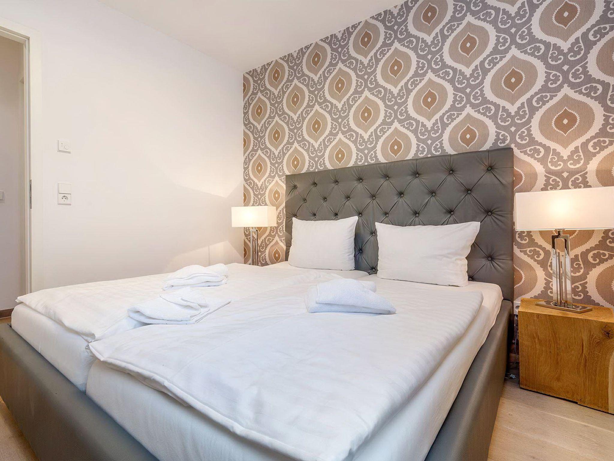 Der Wohn- und Essbereich lädt mit hochwertigen Leder- und Eichenmöbeln, integrierter Designerküche und modernster Unterhaltungselektronik zum gemeinsamen Entspannen ein. Für kuschelige Gemütlichkeit sorgen der Kamin, die Sauna mit Farblicht und die Fußbodenheizung. Auch die beiden Schlafzimmer und das elegante Badezimmer mit seiner ebenerdigen Dusche werden Sie begeistern. Auf der südwestlich ausgerichteten Terrasse stehen Ihnen saisonal bequeme Sitzmöbel und ein BBQ-Grill zur Verfügung.