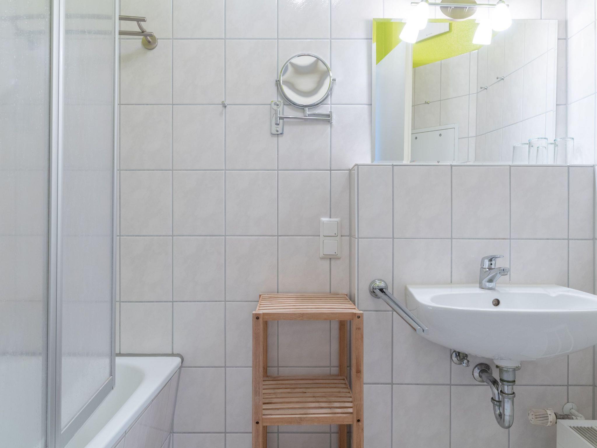 Die Ferienwohnung verfügt über kostenfreies WLAN und die Erstausstattung an Bettwäsche ist inklusive. Das Schlafzimmer mit Verdunklung verfügt über ein Doppelbett, im Wohnzimmer befindet sich zusätzlich eine Doppelschlafcouch. Darüber hinaus verfügt die Ferienwohnung über ein Bad mit Badewanne/WC und einen Kosmetikspiegel. Die voll ausgestattete, offene Küche mit Mikrowelle, Geschirrspüler, Kaffeemaschine und Toaster lässt keine Wünsche offen. Ein Fernseher inkl. 3 Sky-Sender rundet die Einrichtung ab.