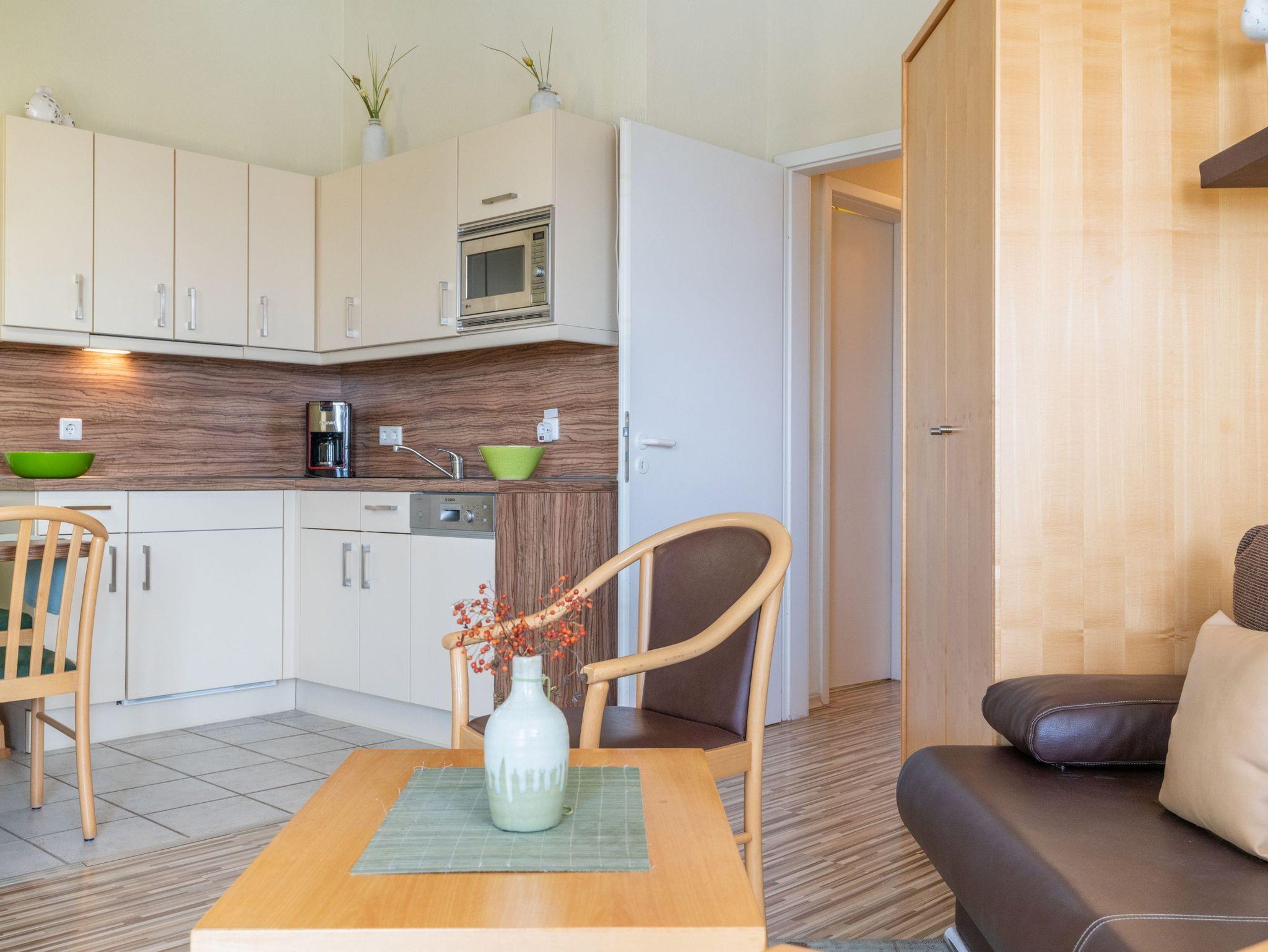 Nach einem erlebnisreichen Urlaubstag können Sie auf dem Balkon in Südwestlage Platz nehmen. Der Ausblick und die Sitzgruppe sorgen hier für ein wunderbares Urlaubsgefühl. Im Nichtraucher-Apartment sind keine Haustiere gestattet.
