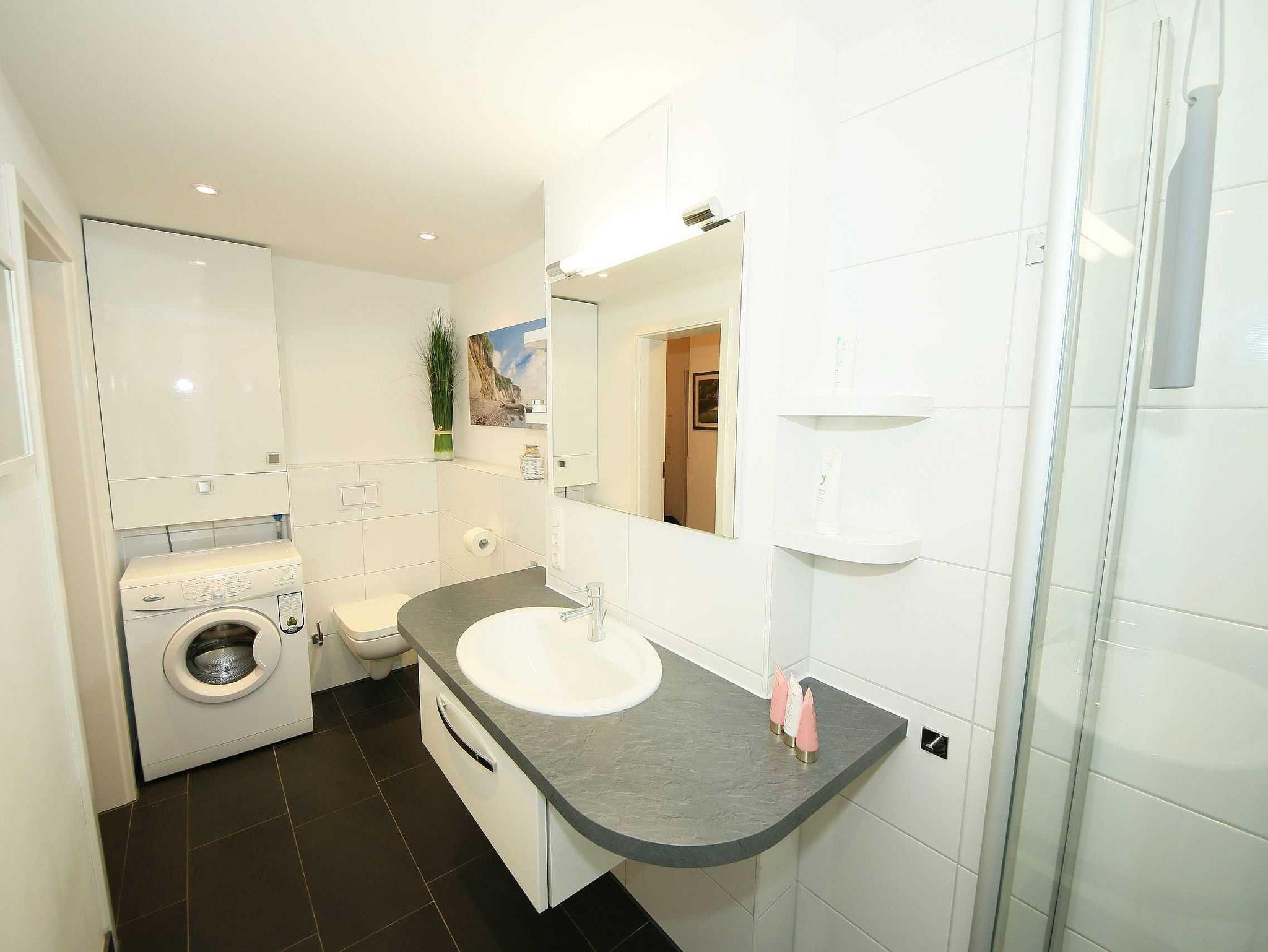 Die liebevoll im Landhausstil eingerichtete 67 qm große Nichtraucher-Wohnung befindet sich in der 3. Etage der Villa Rosa. Als Dreiraumwohnung bietet Sie Ihnen ausreichend Platz für 2 bis 4 Erwachsene und 1 Kleinkind (bis 3 Jahre im Kinderreisebett). Die hochwertige Ausstattung der Wohnung garantiert einen unbeschwerten Urlaub. Die großzügige Küchenzeile bietet Ihnen eine Geschirrspülmaschine, Backofen mit Ceranfeld, Mikrowelle, Kühlschrank mit Gefrierfach, Kaffeemaschine, Senseo Pad-Maschine, Toaster, Wasserkocher, Eierkocher, Mixer, diverse Küchenhelfer sowie ein gemütlicher Essplatz mit 4 Stühlen. Bei schönem Wetter können Sie zusätzlich die Dachterrasse (Süd/West und Nord/West) zu einem Essplatz umfunktionieren. Diese wird durch einen eigenen Strandkorb und eingeschränktem Meerblick abgerundet. Der angrenzende und geschmackvoll eingerichtete Wohnbereich mit 2 Ledercouchen und Couchtisch, Leselampe, Sideboard mit 40 Full-HD Smart-TV mit Blu-Ray-Player, Musikanlage mit DAB-Radio sowie Glasvitrine runden die Gemütlichkeit ab. Auch auf einen Internetzugang (WLAN) brauchen Sie nicht verzichten. Dieser ist für Sie inklusive. Alle Räumlichkeiten wurden mit einem hochwertigen Vinylboden, Fliesen sowie Fußbodenheizung versehen. Im großen Schlafzimmer mit Doppelbett (1,80 m x 2,00 m), 7-Zonen-Kaltschaummatratzen, verstellbaren Lattenrosten, Nachttischablagen und Kleiderschrank finden Sie zusätzlich ein TV-Gerät. Von hier gelangen Sie auch auf die Dachterrasse. Das kleine Schlafzimmer ist mit einem Kojenbett (ausziehbar bis zu einer Liegefläche von 1,60 m x 2,00 m), 7-Zonen-Kaltschaummatratze, Nachttischablage und Kleiderschrank ausgestattet. Für einen ruhigen Schlaf dienen die Verdunklungsmöglichkeiten. Der Mittelpunkt des Bades ist ein moderner Waschplatz, ein WC, eine ebenerdige Dusche (0,90m x 1,40m), Fön und eine Waschmaschine (inklusive). Ein eigener Tiefgaragenparkplatz (Nr.16, Einfahrtshöhe 2,00m) steht Ihnen inklusive zur Verfügung. Im Untergeschoss finden Sie zudem einen großen abschließbaren Fahrradraum sowie einen Extraraum für Kinder- und Bollerwagen. Der Fahrstuhl bringt Sie bequem zur Wohnung. Im Erdgeschoss der Villa Rosa finden Sie einen kleinen kostenpflichtigen Spa-Bereich mit Sauna, Dampfsauna, Dusche und Ruheraum. Ab einem Aufenthalt von 5 Nächten, sind 2 Saunamarken in der Zeit vom 01. November bis 30. April für Sie inklusive. Die Wertmarken können Sie auf Nachfrage während Ihres Urlaubes in der Zimmervermittlung erwerben. Der kleine Garten hinter dem Haus steht allen Gästen zur Verfügung. Hier gibt es einen Grillplatz und einen kleinen Spielplatz. 1x stabiles Kinderbett (1,20 m x 0,60 m, ohne Bettinlett) und 1x Kinderhochstuhl sind für unsere kleinen Gäste inklusive. Haustiere sind nicht erlaubt. Die Erstausstattung eines Wäschepaketes (komplette Bettwäsche, 1 Duschhandtuch, 1 kleines Handtuch) können Sie bis 14 Tage vor Anreise gegen einen Aufpreis dazu buchen oder durch eigene ergänzen. Ab 2 gebuchten Paketen erhalten Sie einmalig 1 Geschirrhandtuch und 1 Duschvorleger hinzu.