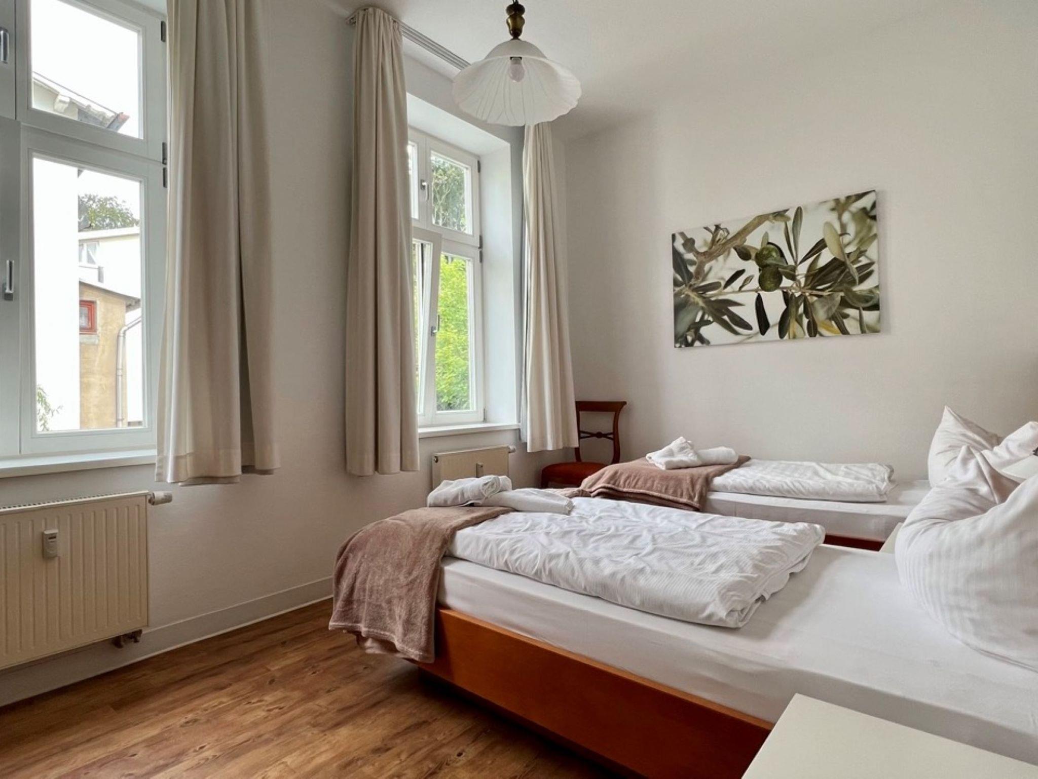 Die Wohnung 15 in der Villa Sonneck sorgt durch die zwei separaten Schlafbereiche für genügend Privatsphäre im Familienurlaub. Eines der beiden Schlafzimmer ist mit einem Doppelbett, einem TV und einem großzügigen Kleiderschrank ausgestattet, der zweite Schlafbereich bietet 2 Einzelbetten.