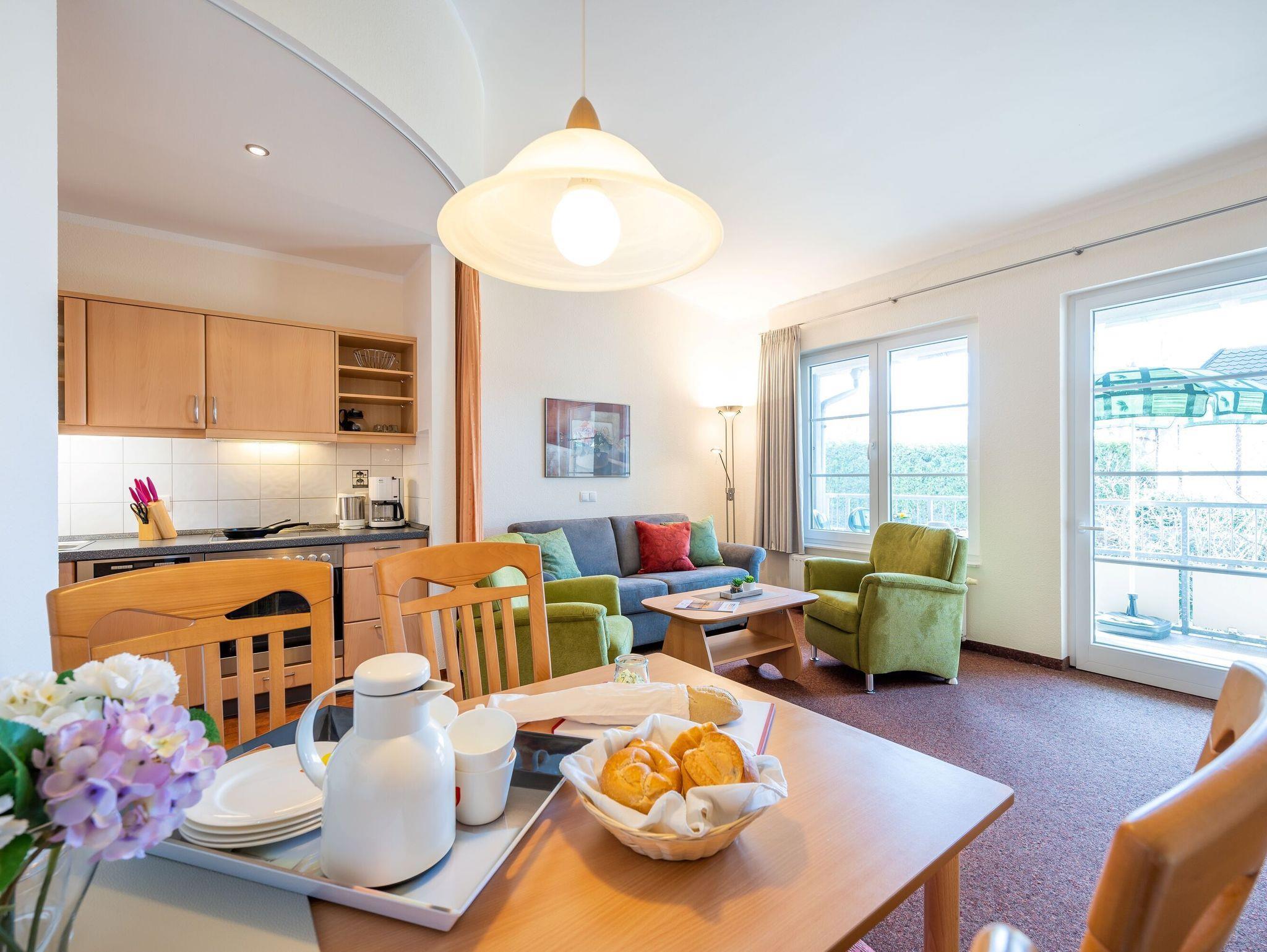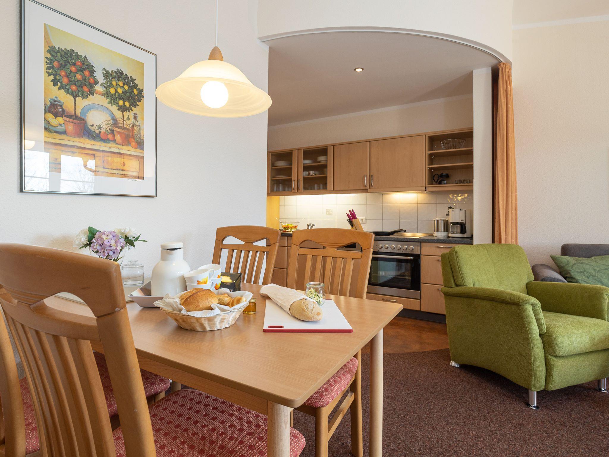 Die freundlich eingerichtete Wohnung 16 in der Ferienanlage Margaretha ist ca. 58 m² groß und für bis zu 4 Personen ausgelegt.