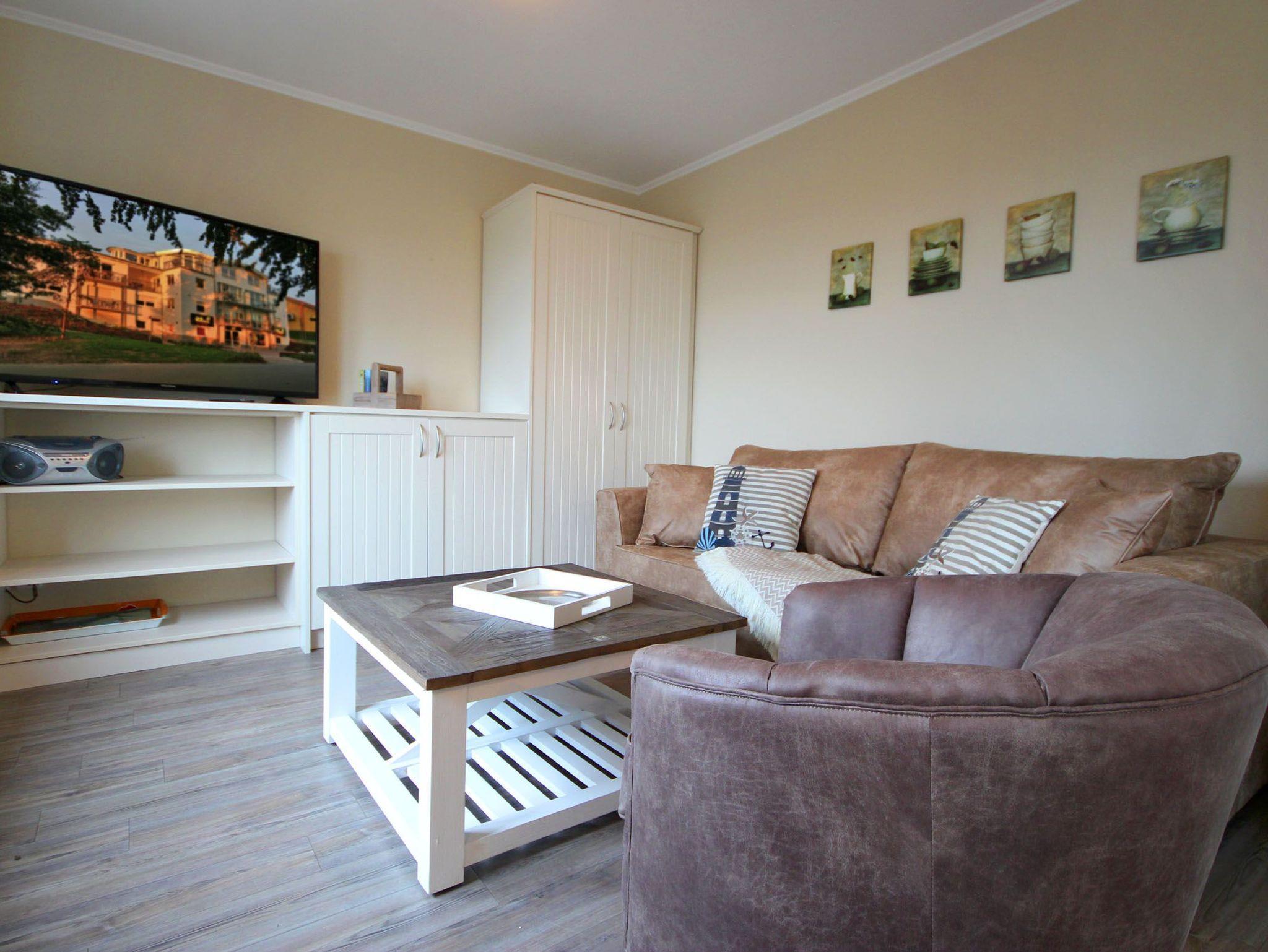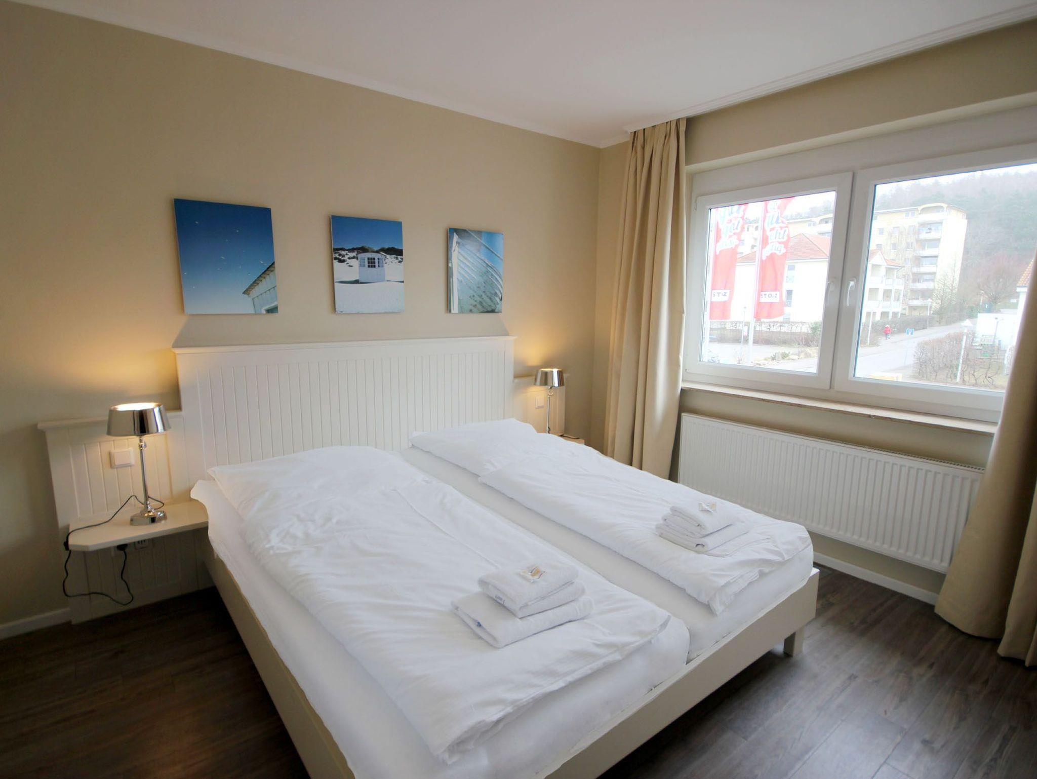 Ihre 2-Zimmer Ferienwohnung 65RB6 Seegras mit Balkon befindet sich im 1. Obergeschoss und ist ca. 50 qm groß sowie für bis zu 4 Personen gut geeignet. Neben dem gemütlichen Wohnbereich mit Zugang zum Balkon mit Blick auf den Selliner See, gehört eine Sitzecke mit Schlaffunktion, ein Essbereich, Flachbild TV sowie WLAN zur Nichtraucherwohnung. Im Schlafzimmer erwartet Sie ein Doppelbett sowie ein großzügiger Kleiderschrank. Zudem können Sie eine voll ausgestattete und im Wohnbereich integrierte Küchenzeile mit Geschirrspüler, Backofen, Wasserkocher, Toaster, Kaffeemaschine sowie umfangreiches Küchengeschirr nutzen. Das moderne Tageslichtbad erwartet Sie mit Waschtisch, WC und Dusche. Einen Parkplatz sowie eine Fahrradunterstellmöglichkeit befinden sich direkt am Objekt.