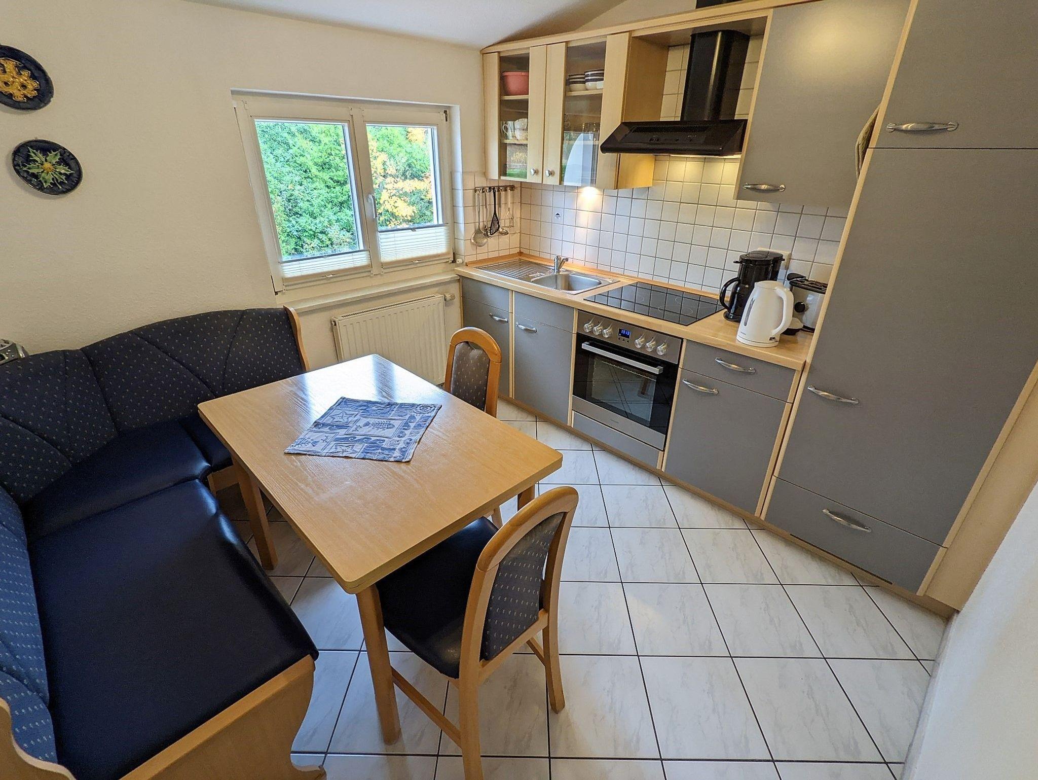 • separate Küche mit Essecke, E-Herd, Backofen, Kühlschrank uvm.