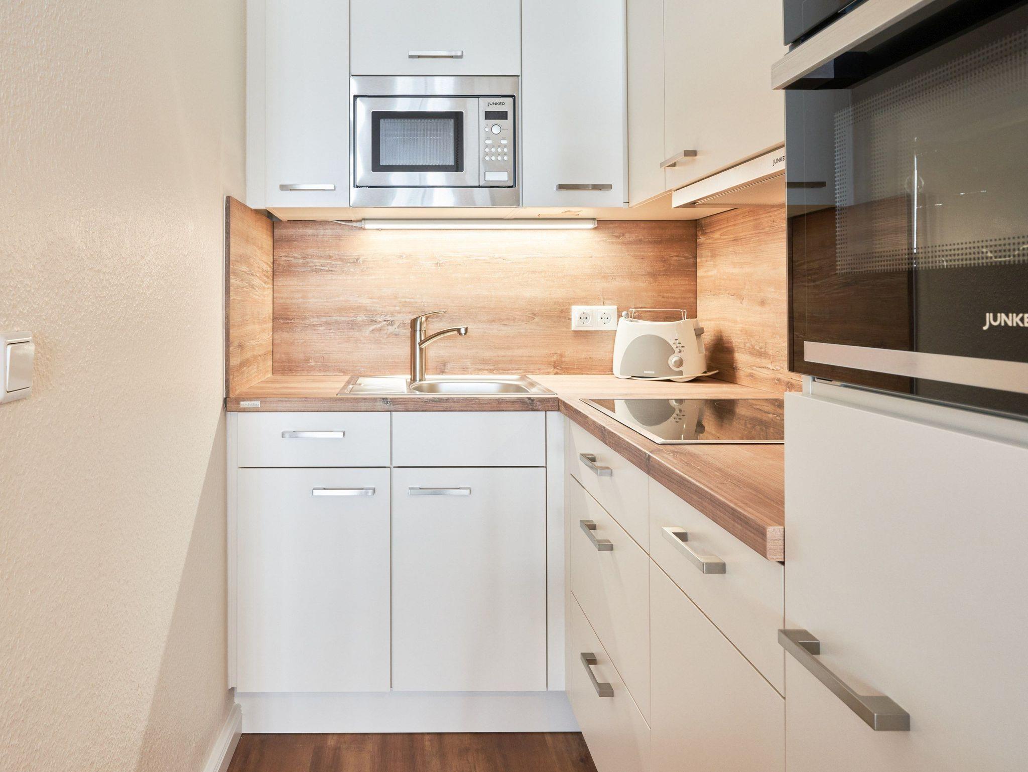 In der gemütlichen Wohnung erwartet Sie ein TV-Flachbild, auf dem Sie sich entspannt zurücklehnen können. Für eine gute Tasse Kaffee steht Ihnen eine Kaffeemaschine zur Verfügung. Auch eine Mikrowelle und ein Geschirrspüler gehören zur Ausstattung. Die Bettwäsche ist bereits inklusive und auf dem Balkon können Sie die frische Ostseeluft genießen. Die offene Wohnküche lädt zum gemeinsamen Kochen und Essen ein.