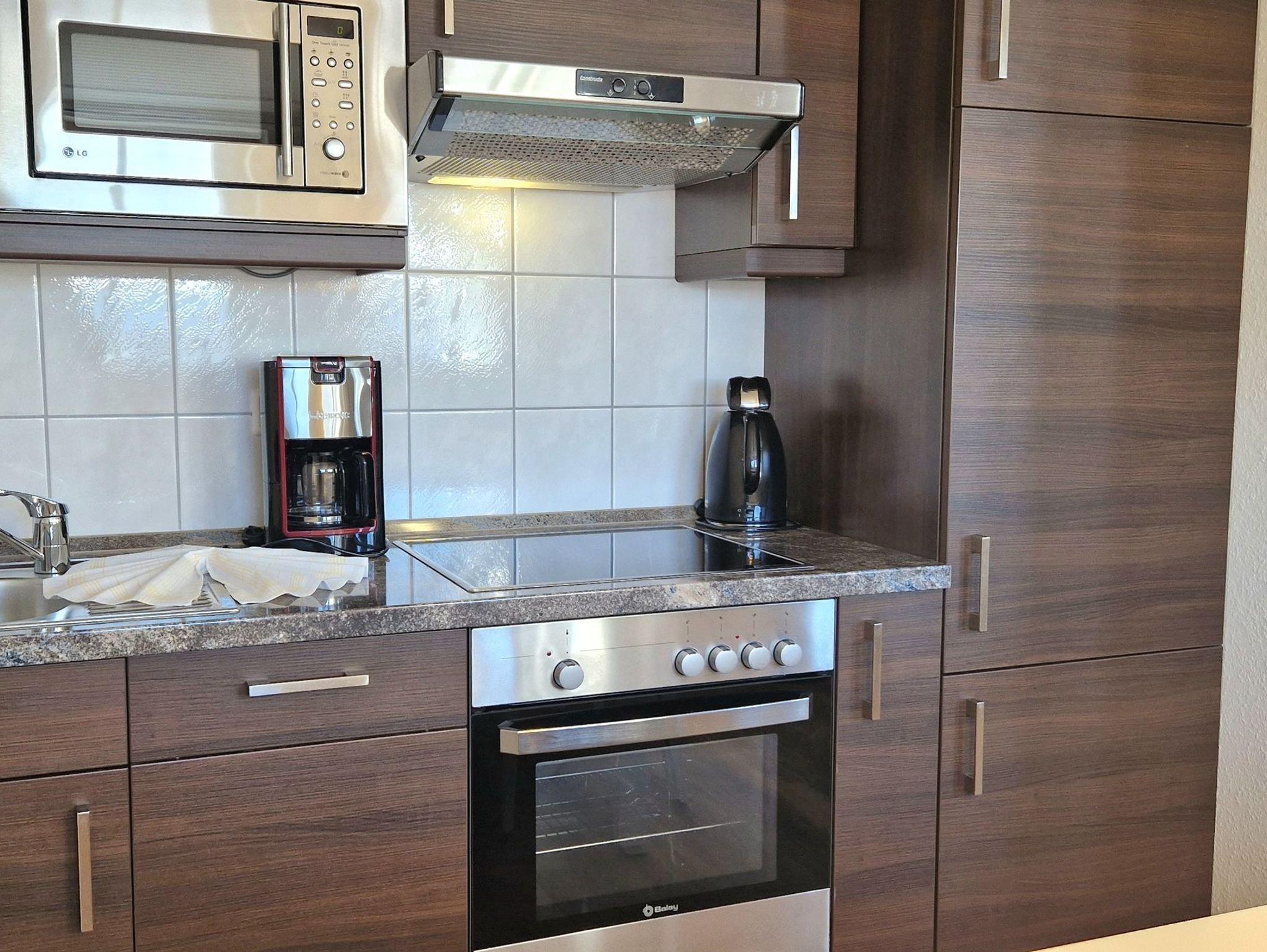 Die Ferienwohnung verfügt über kostenfreies WLAN und Bettwäsche ist in der Erstausstattung enthalten. Das Schlafzimmer ist mit einem Doppelbett und Verdunklungsmöglichkeiten ausgestattet. Das Badezimmer verfügt über eine Dusche, WC und einen Föhn. Die offene Küche ist vollständig ausgestattet mit Backofen, Mikrowelle, Geschirrspüler, Kaffeemaschine und Toaster. Ein Fernseher mit 3 Sky-Sendern rundet die moderne Einrichtung ab.