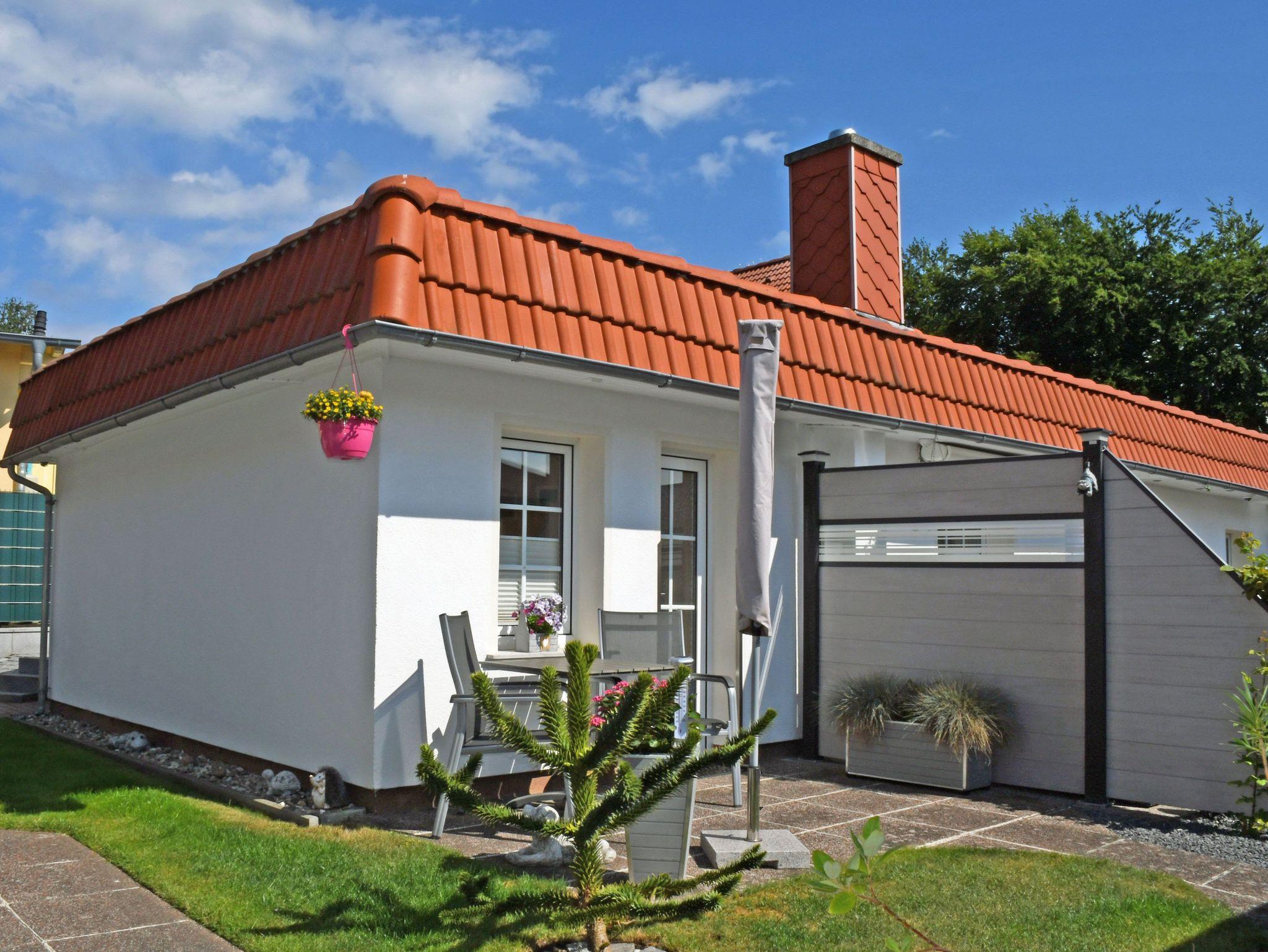 Unsere Ferienwohnungen (2 Erwachsene, komb. Wohn-/ Schlafzimmer, Küchenzeile, Bad/Dusche, Terrasse) befinden sich im Ostseebad Sellin, in neu gebauten Reihenhäusern, die sehr ruhig und sonnig liegen.