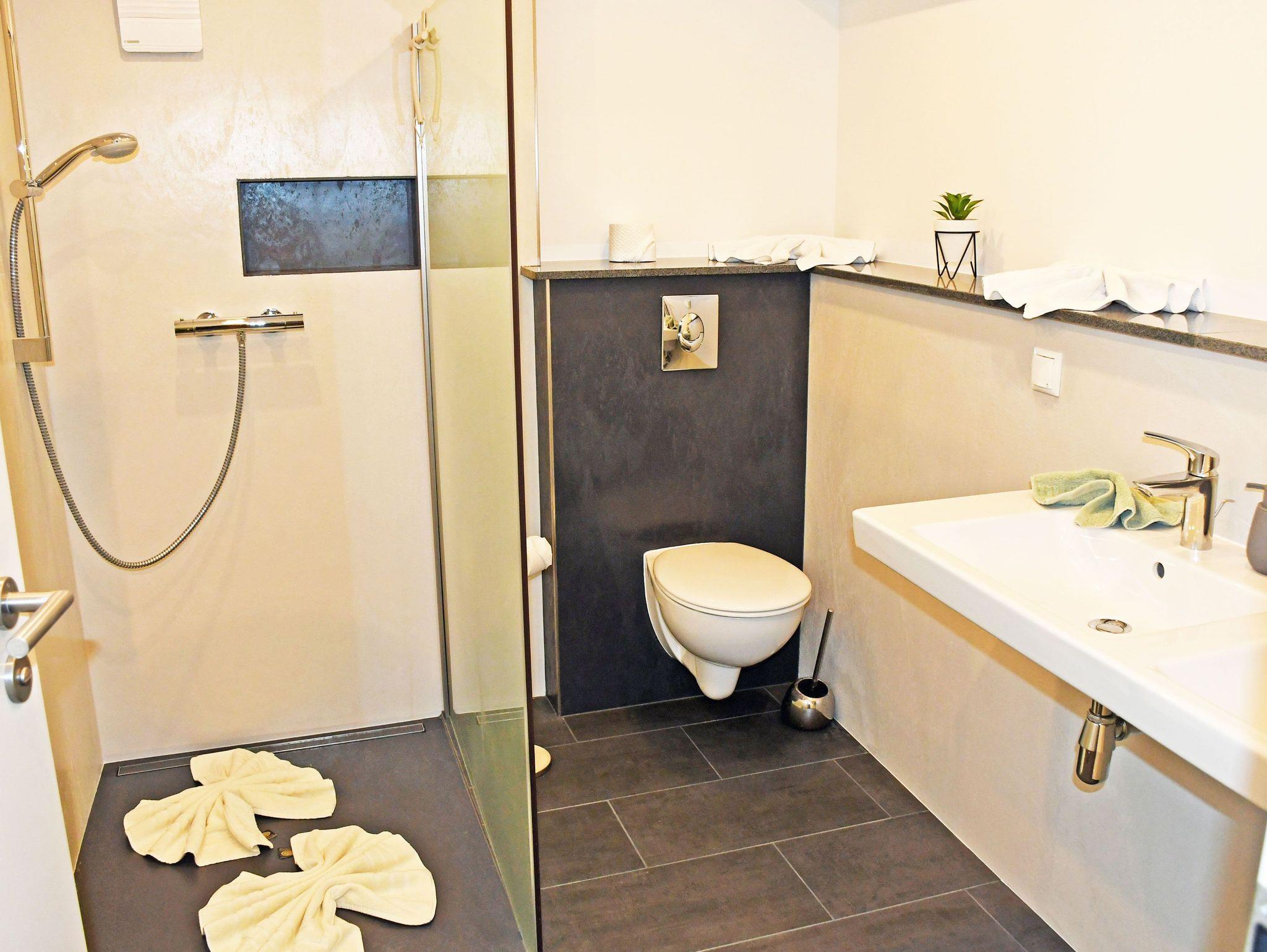 Das Bad (EG) ist mit Dusche, WC und Waschtisch ausgestattet.
