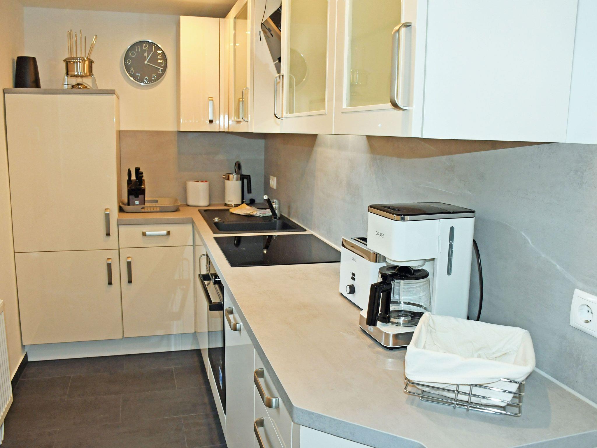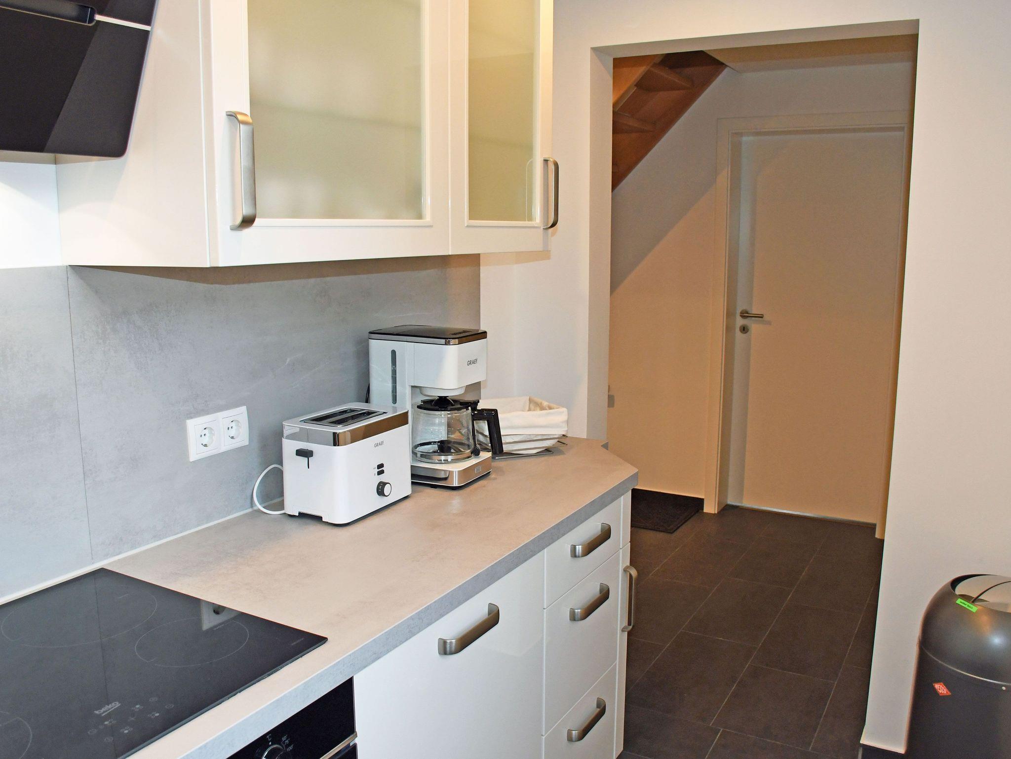 Die separate Küche ist mit Elektroherd mit Ceranfeld, Anzugshaube, Backofen, Kühlschrank mit Gefrierfach, Kaffeemaschine, Wasserkocher, Toaster komplett ausgestattet.