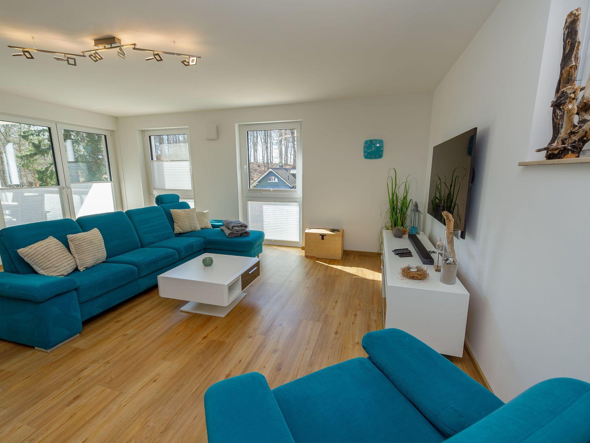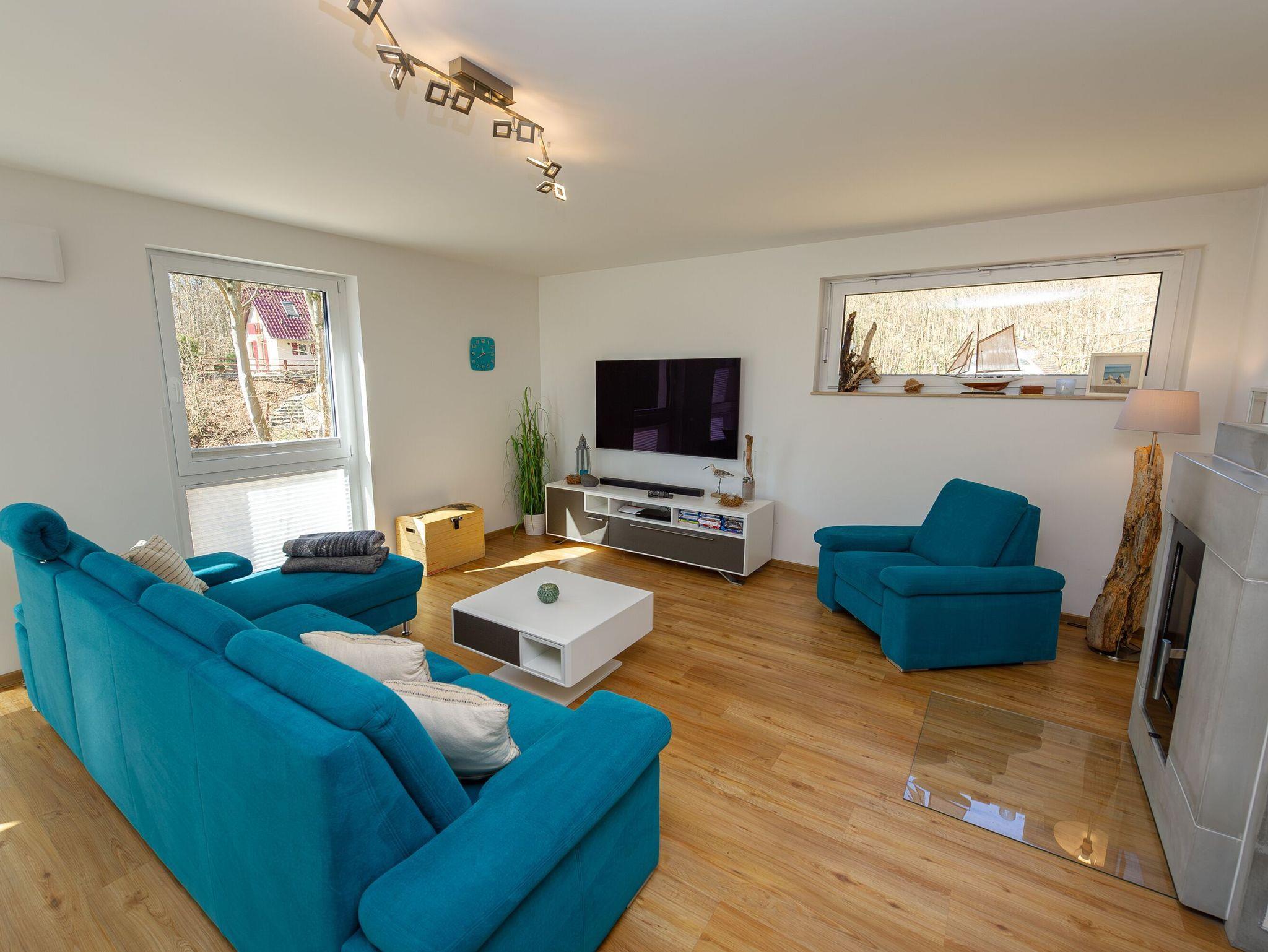 Herzstück Ihres Zuhauses auf Zeit ist das offen gestaltete Wohn- und Esszimmer mit Kaminofen (Holz ist kostenfrei vorhanden),[nbsp] einem bequemen Relaxsofa, einem Sessel und einem 65 QLED 4K Smart-TV mit Bluetooth Soundbar und Bluray-Player. Natürlich steht Ihnen in der gesamten Wohnung auch kostenfreies W-LAN zur Verfügung. Einen Schreibtisch zum mobilen Arbeiten gibt es auch.