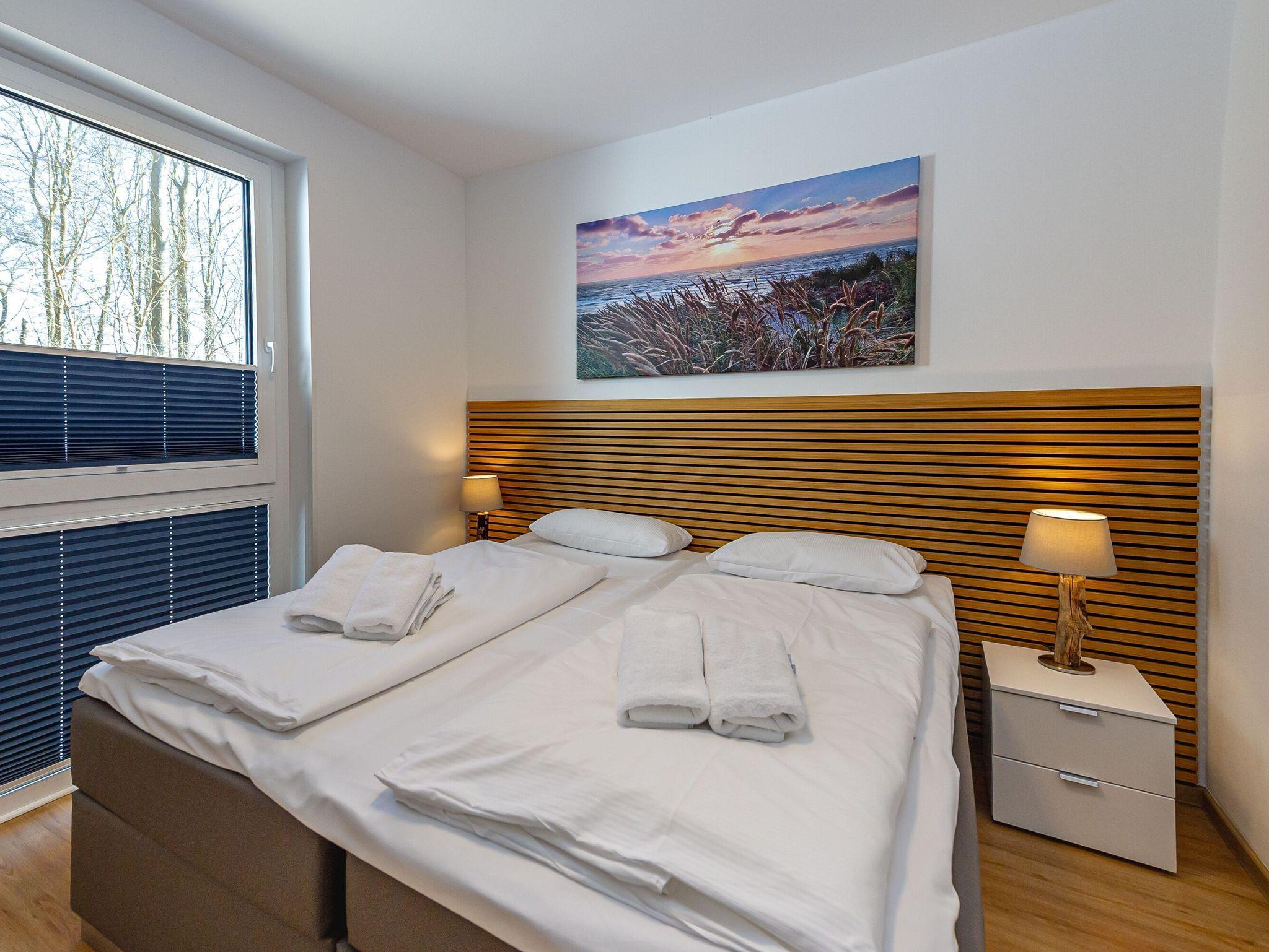 Ihre beiden Schlafzimmer sind mit wunderbar bequemen Betten (1,80x2,00m), geräumigen Kleiderschränken und zusätzlichen 32 Smart-TVs ausgestattet. Die Boxspringbetten im kleinen Schlafzimmer können entweder als Einzelbetten gestellt werden oder als Doppelbett.