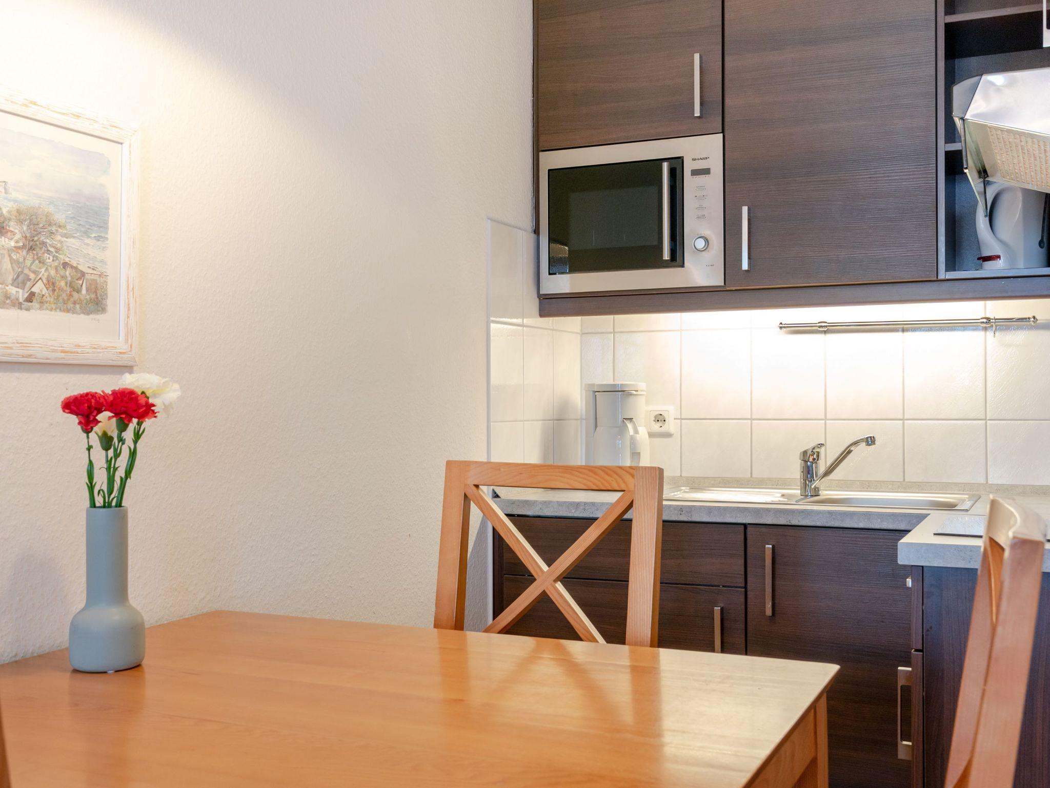 Sie liegt in der 1. Etage und ist somit bequem über Treppen oder dem vorhandenen Fahrstuhl zu erreichen. Die Wohnung verfügt über ein Schlafzimmer und ein Badezimmer. Zur Ausstattung gehören ein Flachbild-TV, eine Kaffeemaschine (Filter), eine Mikrowelle und Bettwäsche, die bereits im Preis inkludiert ist.