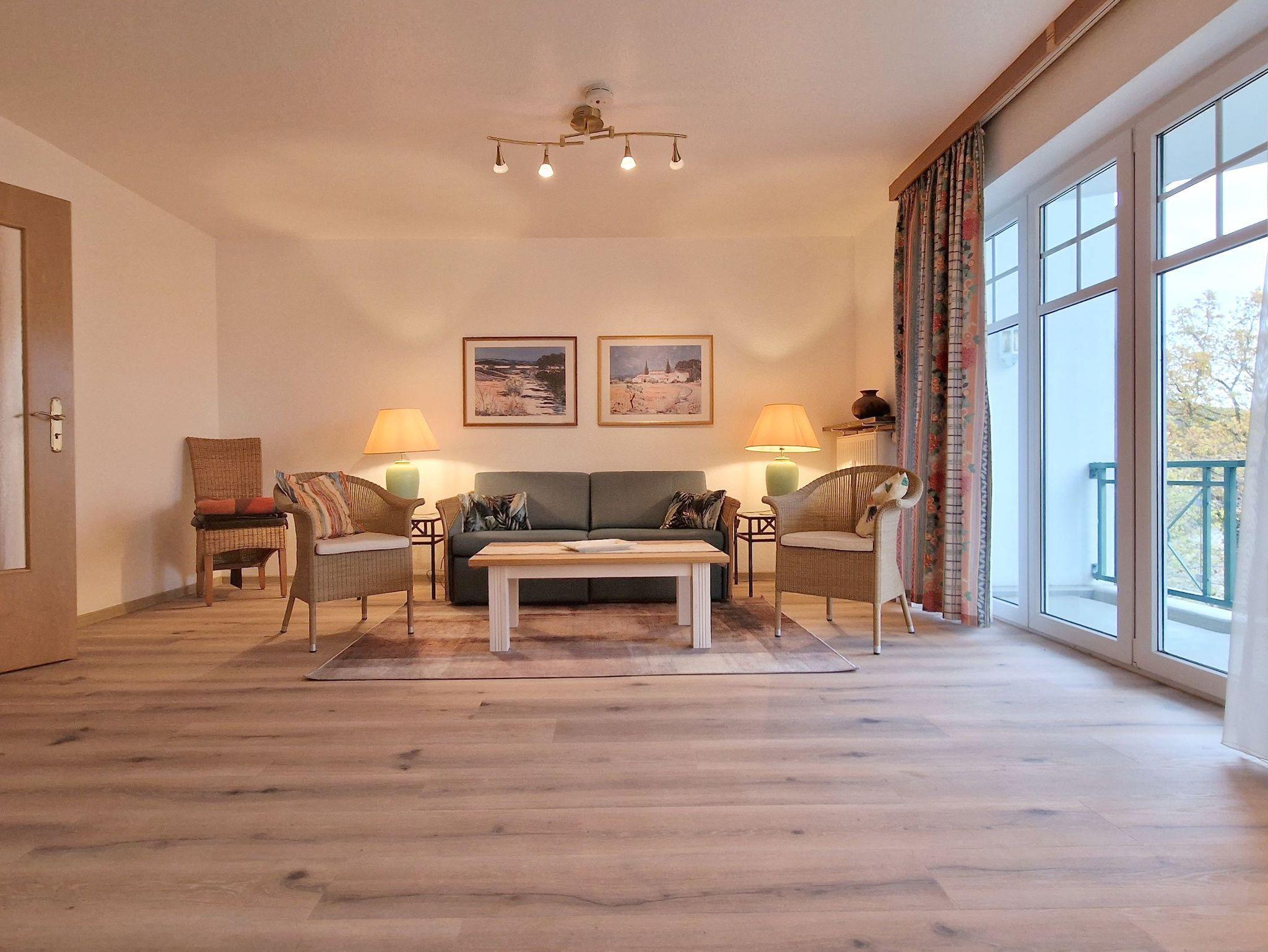 Die 2-Raum Ferienwohnung befindet sich in der 2. Etage des Waldschlösschens, verfügt über großzügige 71 m ² Wohnfläche und einem 18 m² großen Südbalkon. Bis zu 4 Gäste finden hier wunderbar Platz für einen entspannten Urlaub.