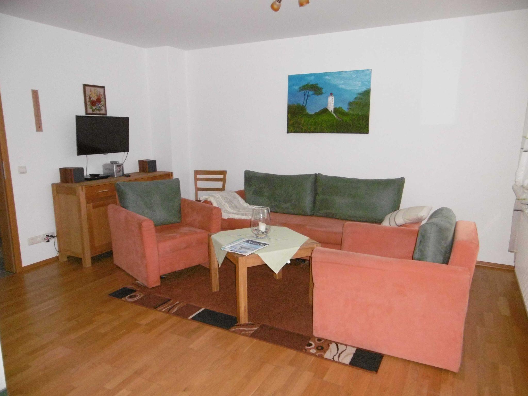 60qm Fewo, Schlafzimmer, Dusche + WC, Wohnzimmer mit Fußbodenheizung und Ofen, Terasse, kompl.Küche mit MW, Herd, Geschirrspüler, KM, WK, Toaster