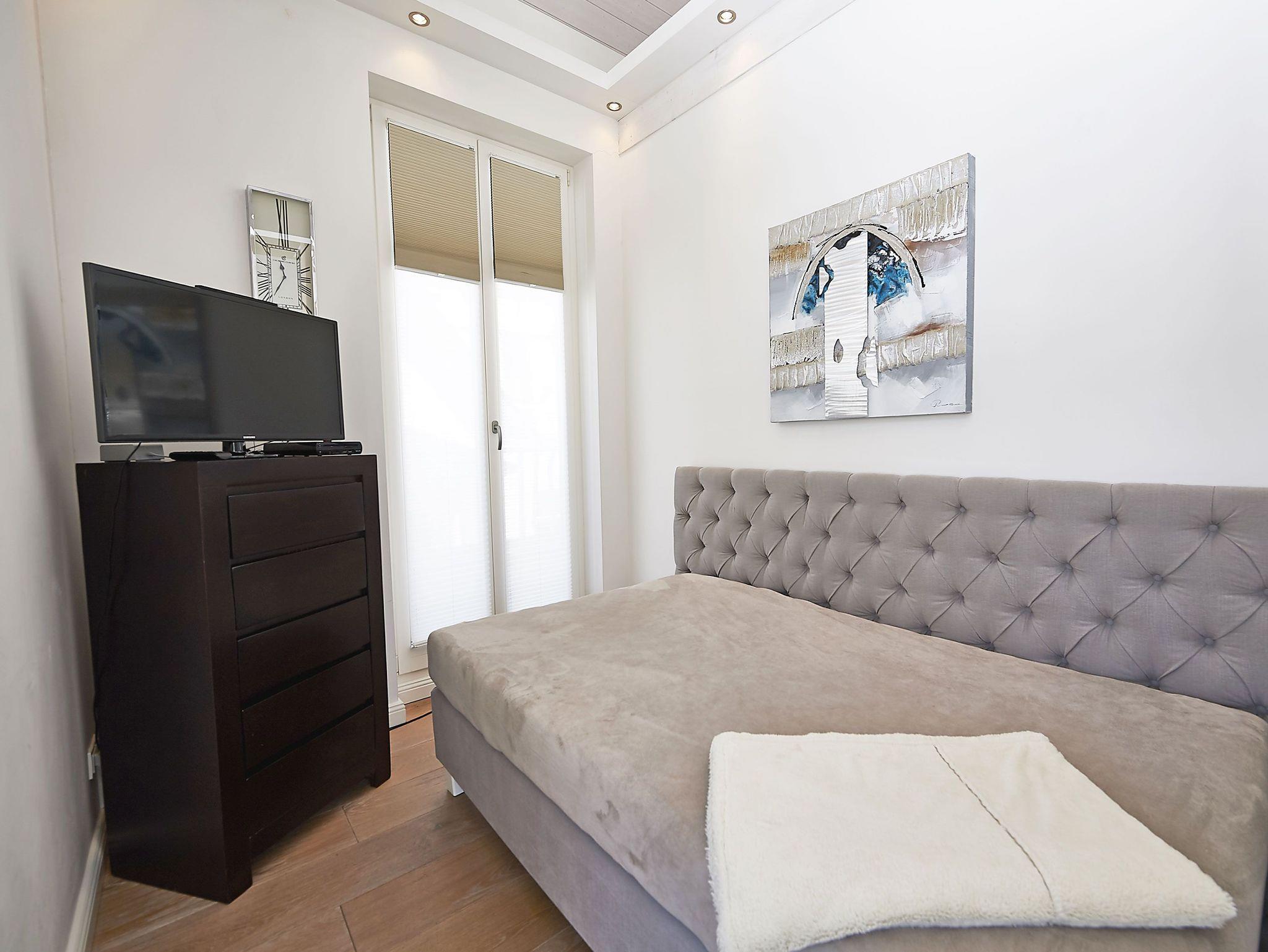 Das Penthouse Nautilus ist mit einem Wellness-Schlafzimmer mit einem Boxspringbett (180 x 200 cm) und Luxusschaummatratzen in Härtegrad mittel sowie einem Flachbild-TV ausgestattet.