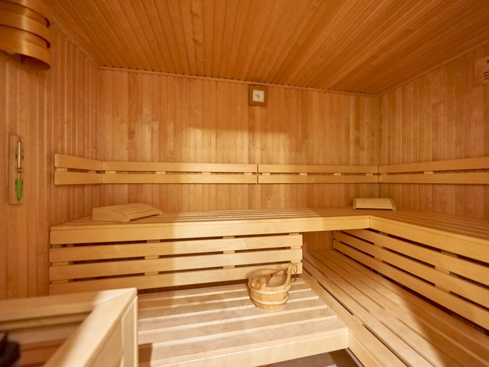 Im Haus gibt es gegen Gebühr einen großzügigen Saunabereich, eine Waschmaschine und einen Trockner für die Hausgemeinschaft.