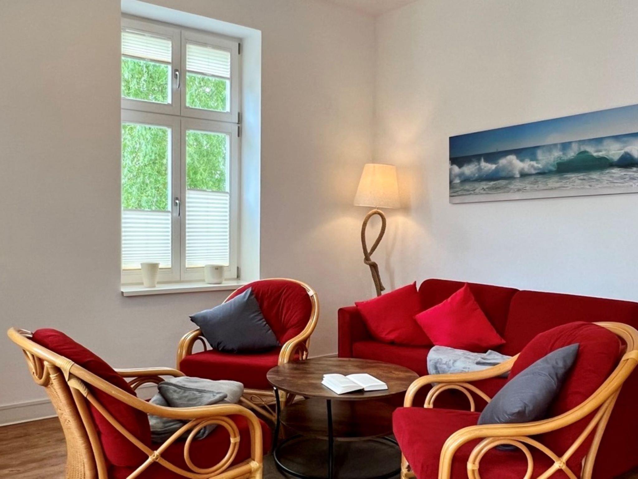 Über den freundlichen Flurbereich erreichen Sie das helle Wohnzimmer - hier erwartet Sie neben dem Flachbild-TV und den beiden bequemen Sesseln eine komfortable Couchgarnitur, welche ebenso als Aufbettungsmöglichkeit für 2 weitere Personen genutzt werden kann. Von hier aus erreichen Sie den sonnigen Balkon mit Gartenmöbeln (inkl. Auflagen) und einem eigenen Strandkorb.