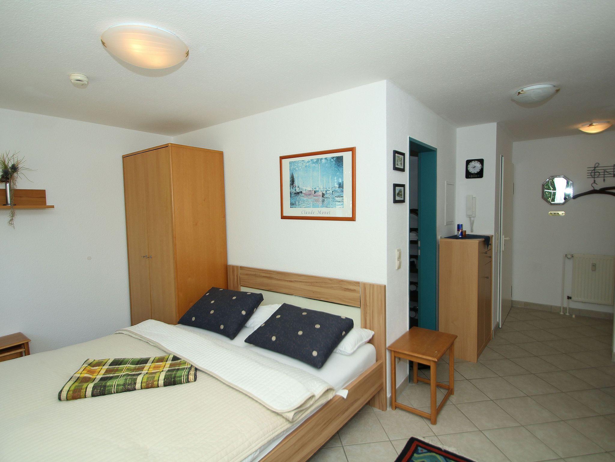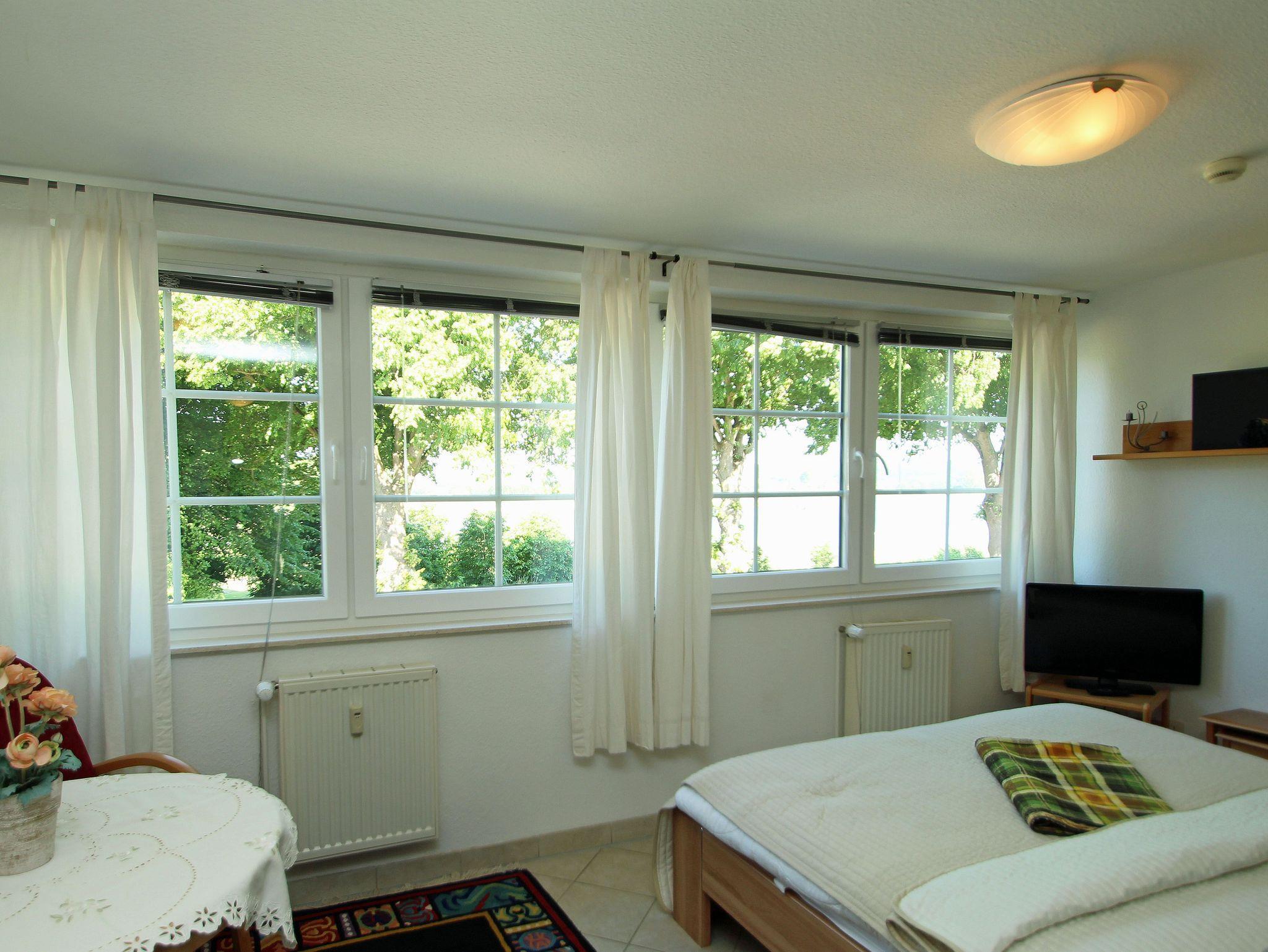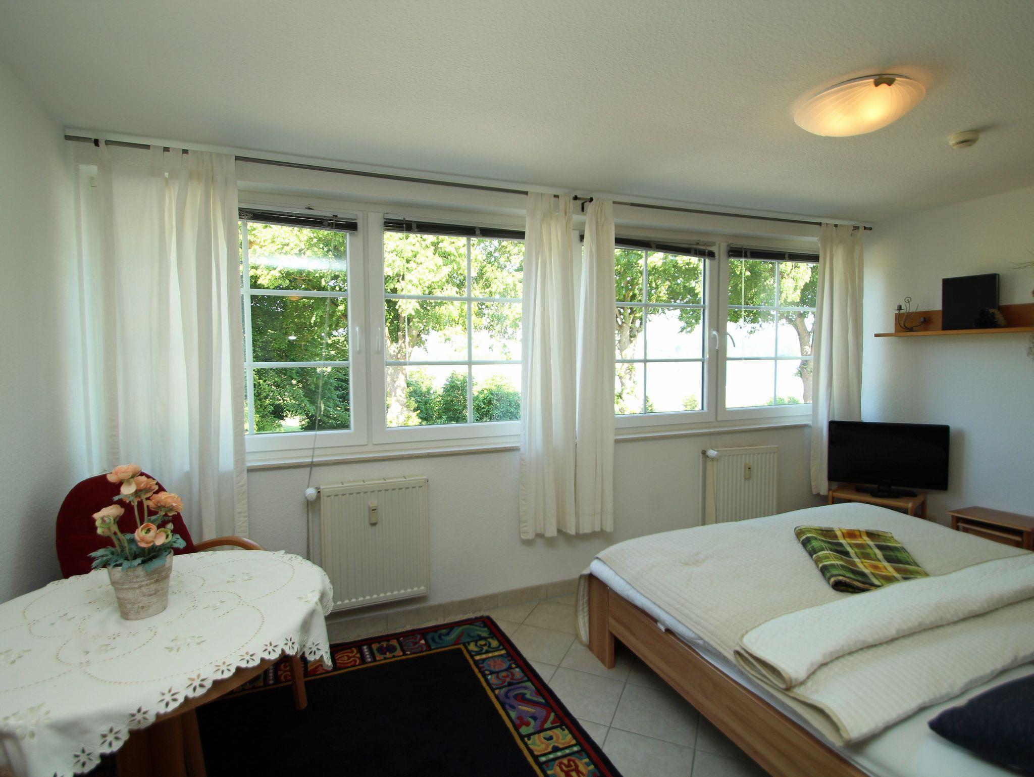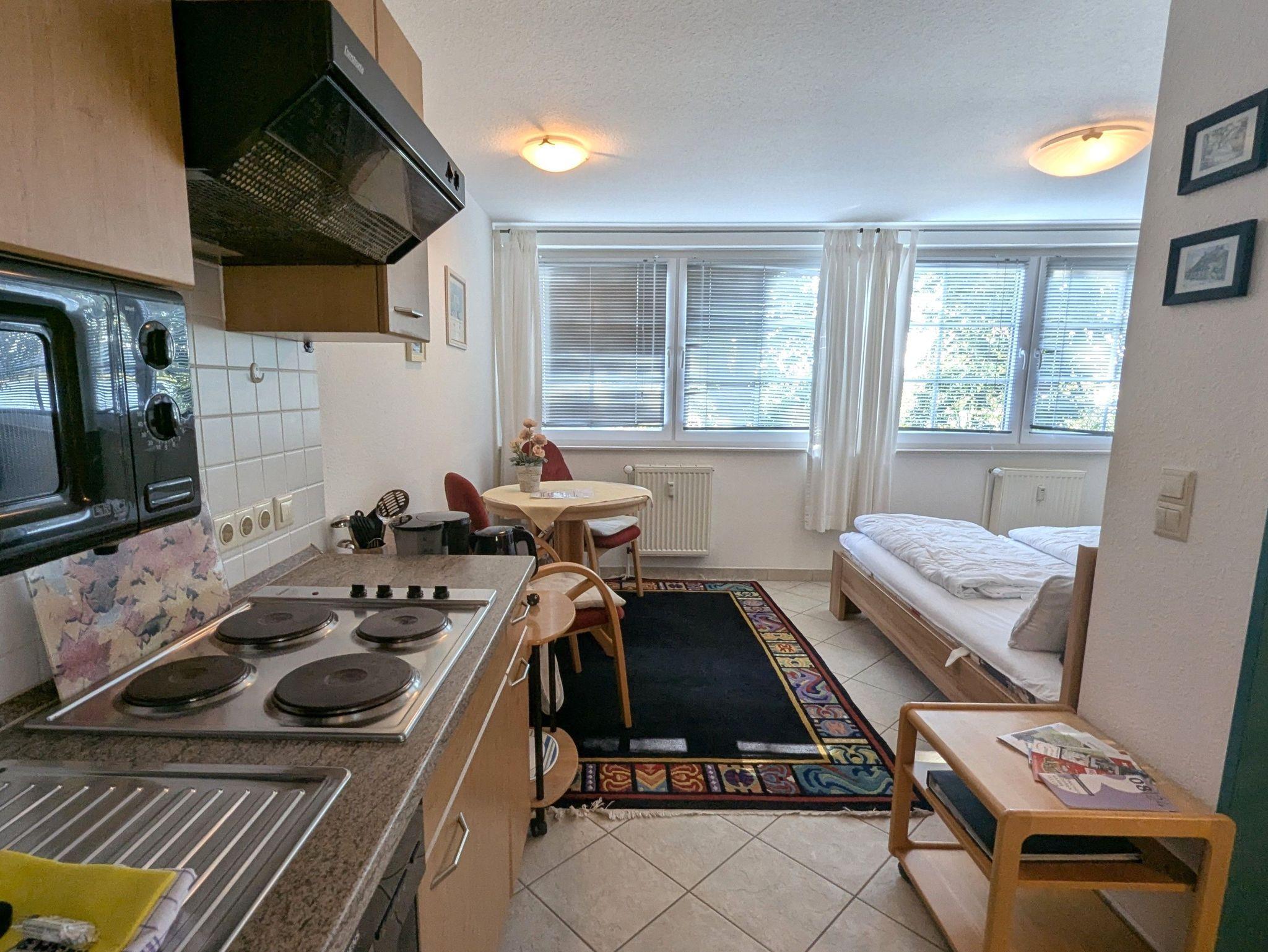 Das Studio ist ideal für 2 Personen und bietet zusätzliche Aufbettung für ein Kleinkind.. Es besteht aus einem Wohn- Esszimmer mit Doppelbett, komplett ausgestatteter Küchenzeile und einem Bad mit Dusche und WC. Aus dem Fenster haben Sie einen Blick über den Neuensiener See zum Jagdschloss Granitz.