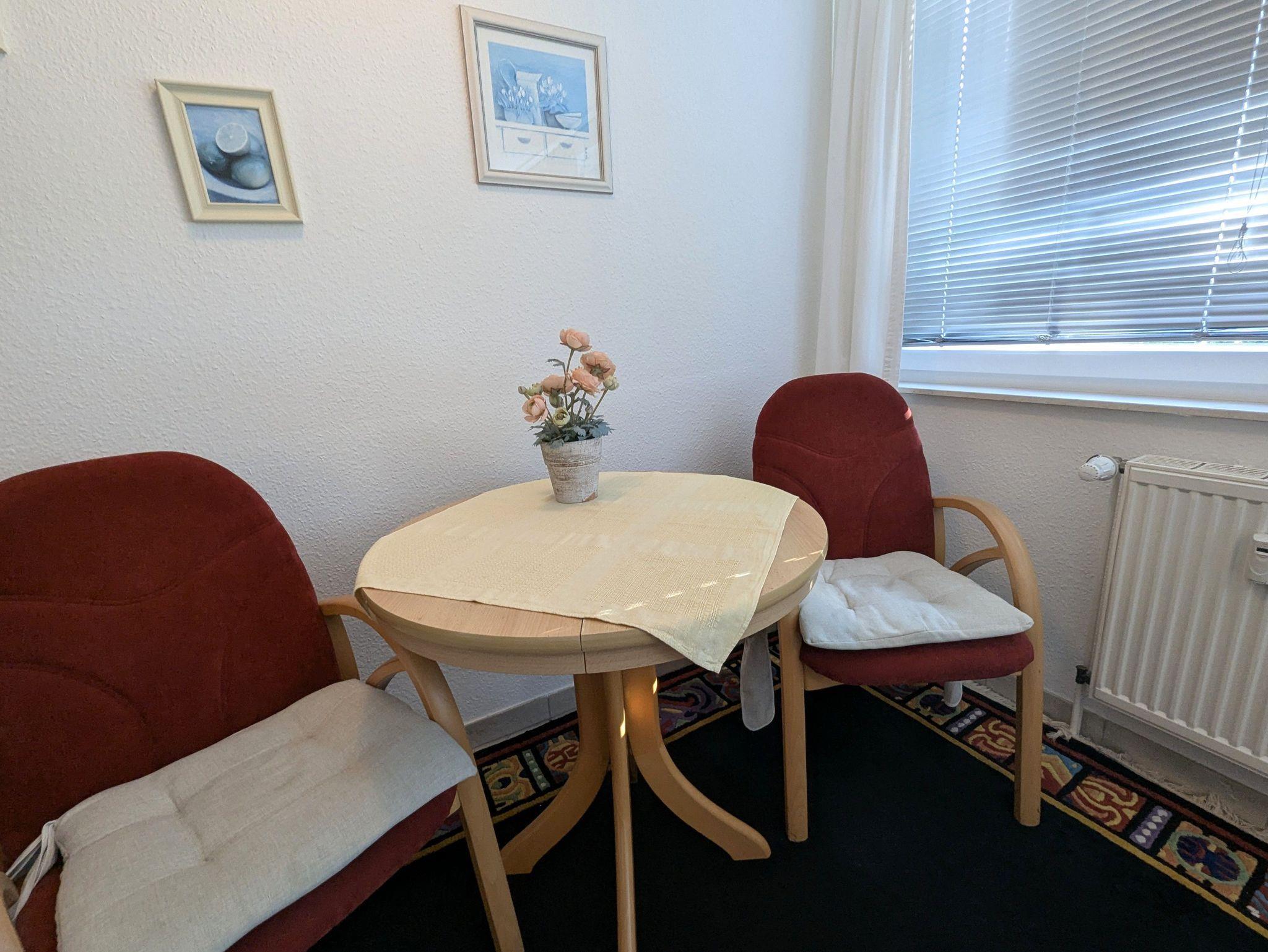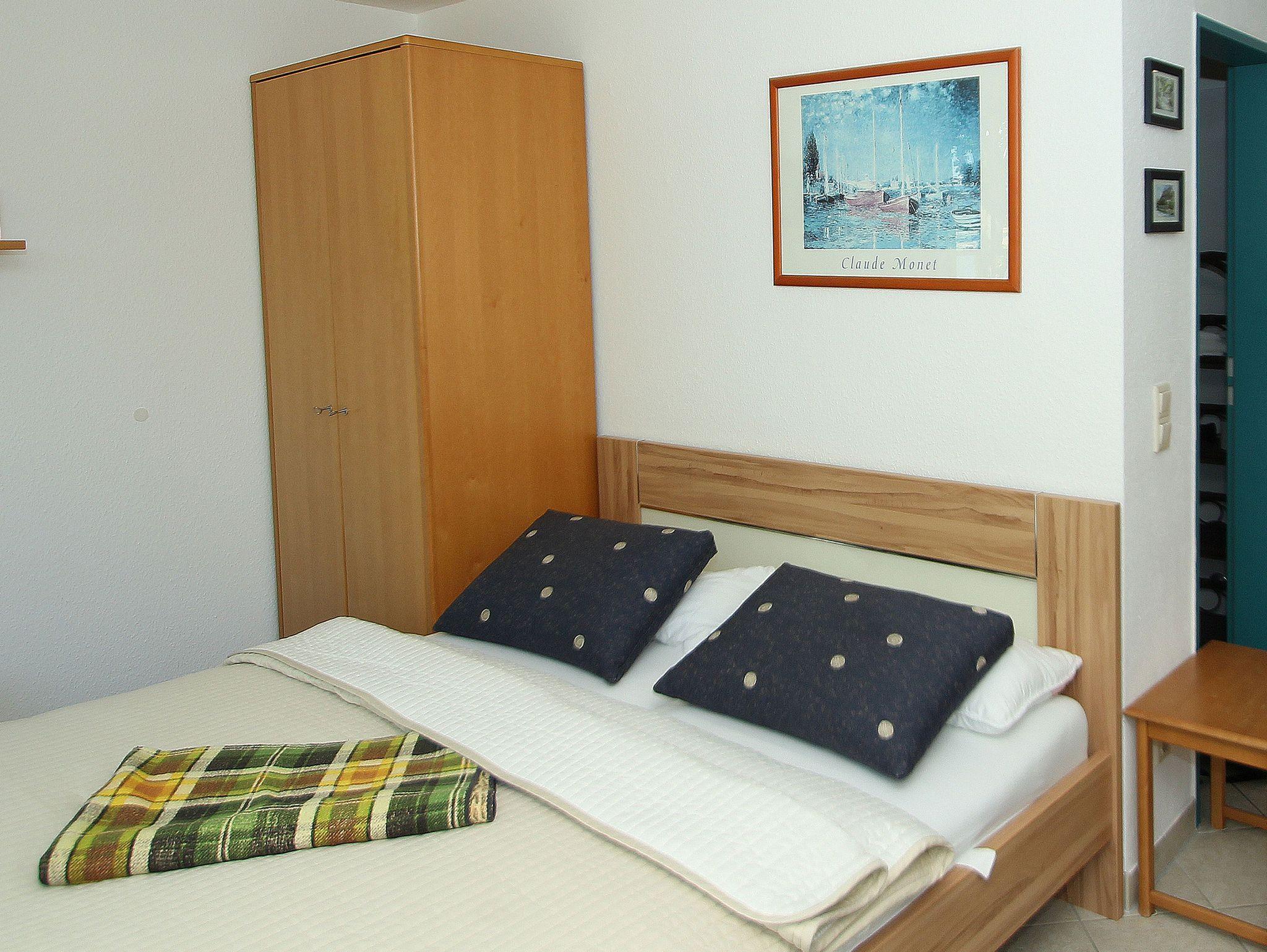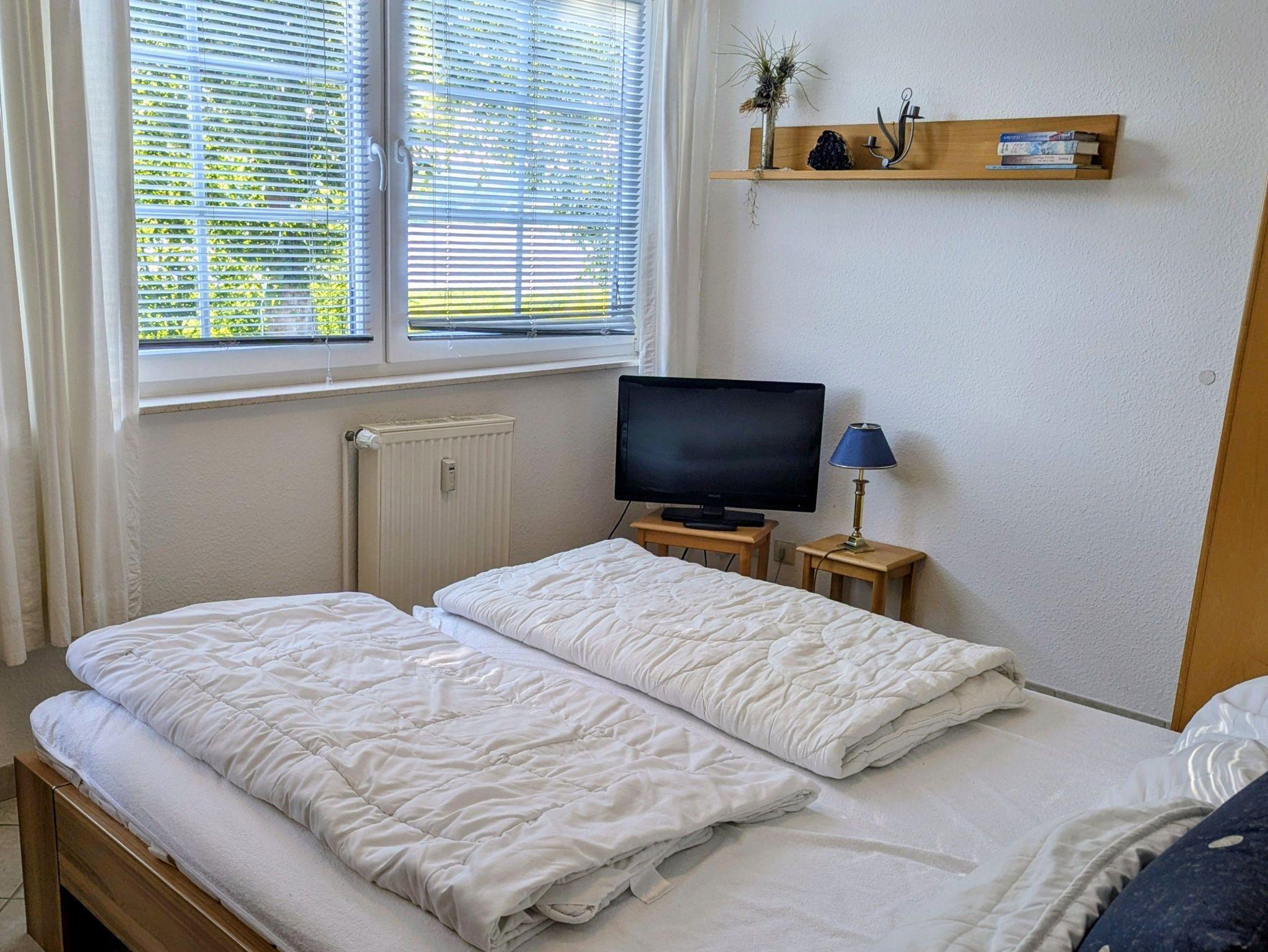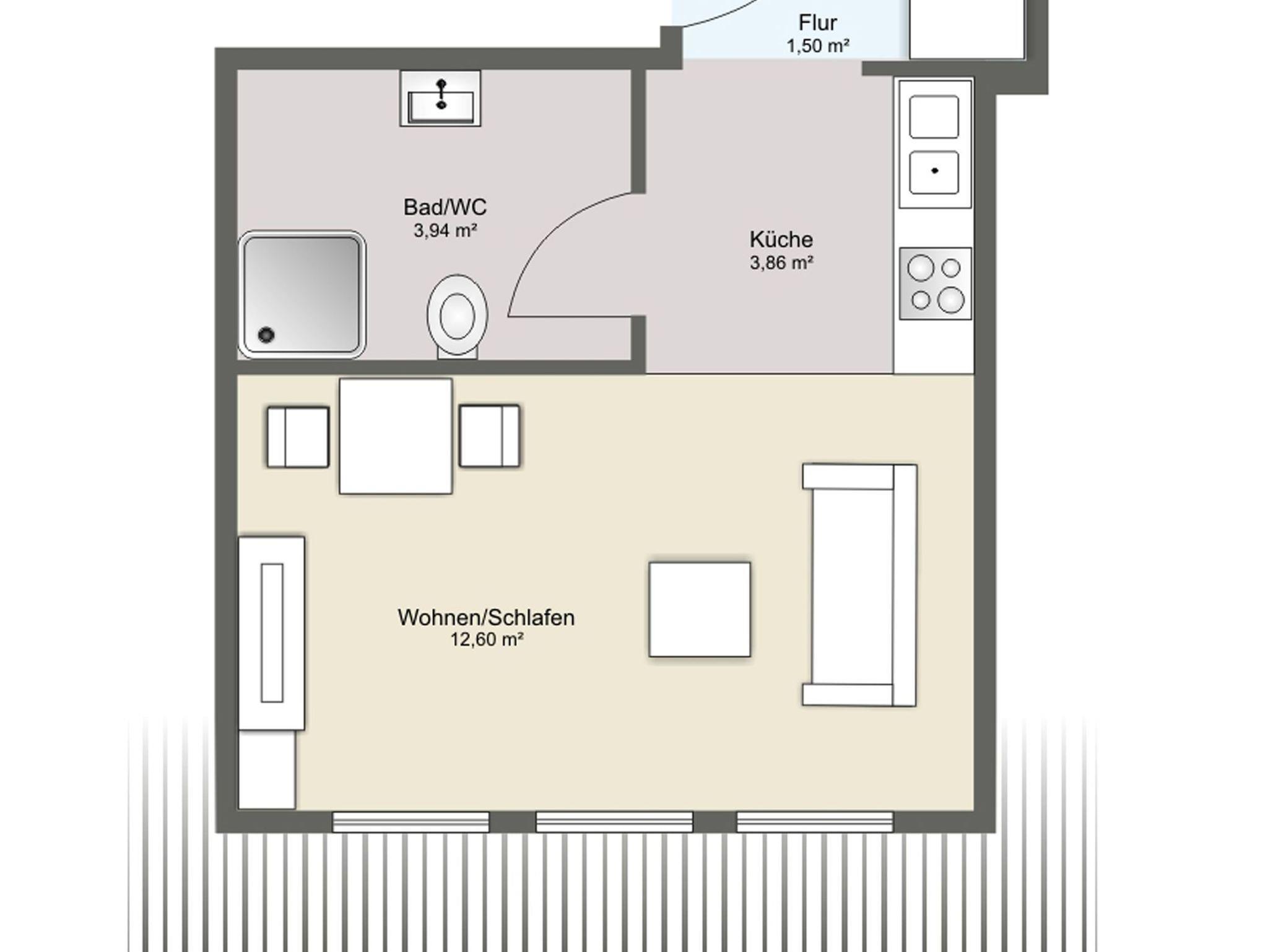 Das Studio ist ideal für 2 Personen und bietet zusätzliche Aufbettung für ein Kleinkind.. Es besteht aus einem Wohn- Esszimmer mit Doppelbett, komplett ausgestatteter Küchenzeile und einem Bad mit Dusche und WC. Aus dem Fenster haben Sie einen Blick über den Neuensiener See zum Jagdschloss Granitz.