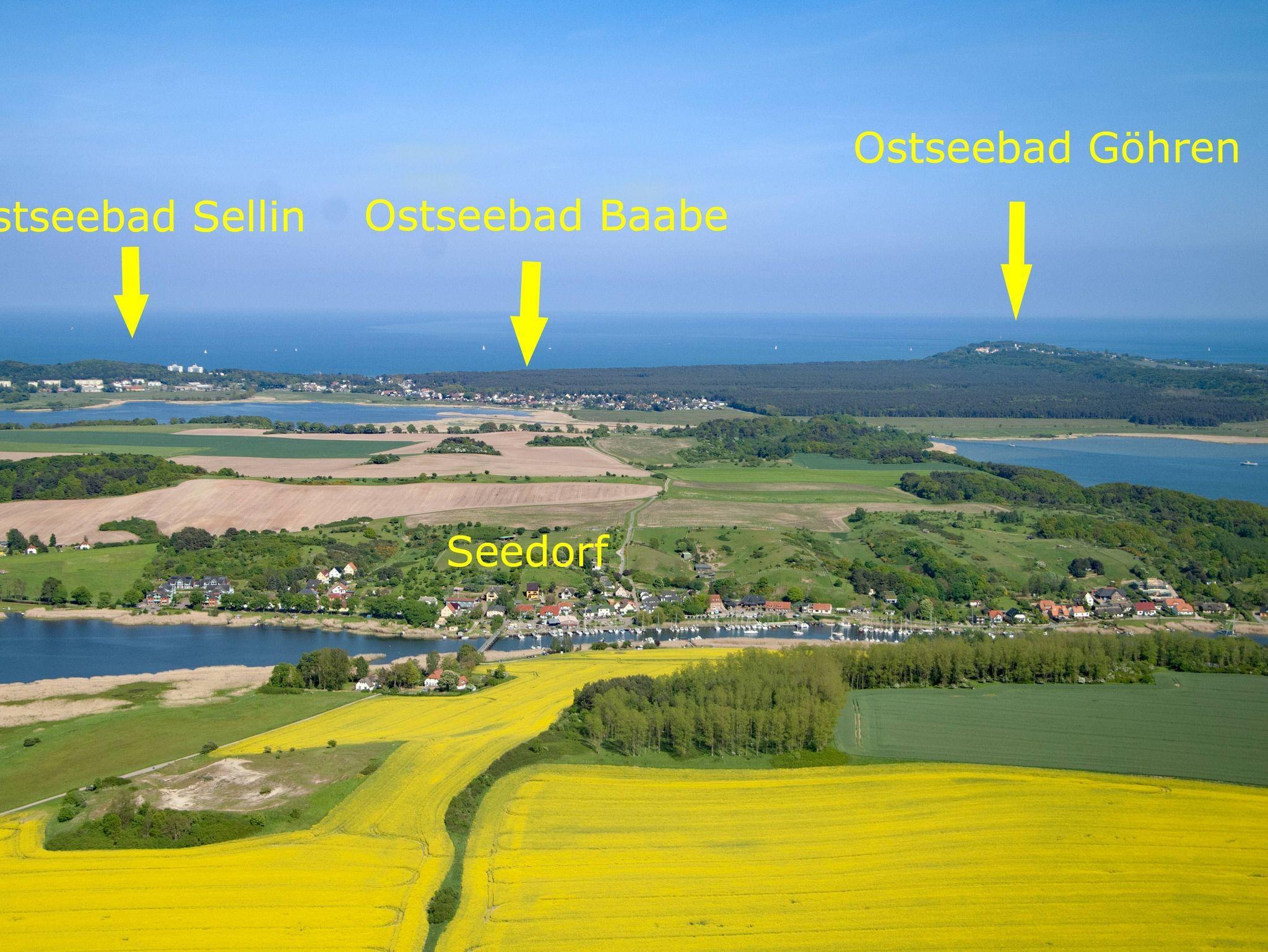 Zu den Ostseebädern Binz, Sellin, Baabe und Göhren, sind es nur wenige Kilometer. In Sellin befindet sich eine Spassbad mit Saunalandschaft. Der Rasende Roland, die bekannte Kleinbahn von Rügen, fährt täglich von Sellin aus in die benachbarten Ostseebäder. Einkaufsmöglichkeiten befinden sich ausreichend in Sellin.