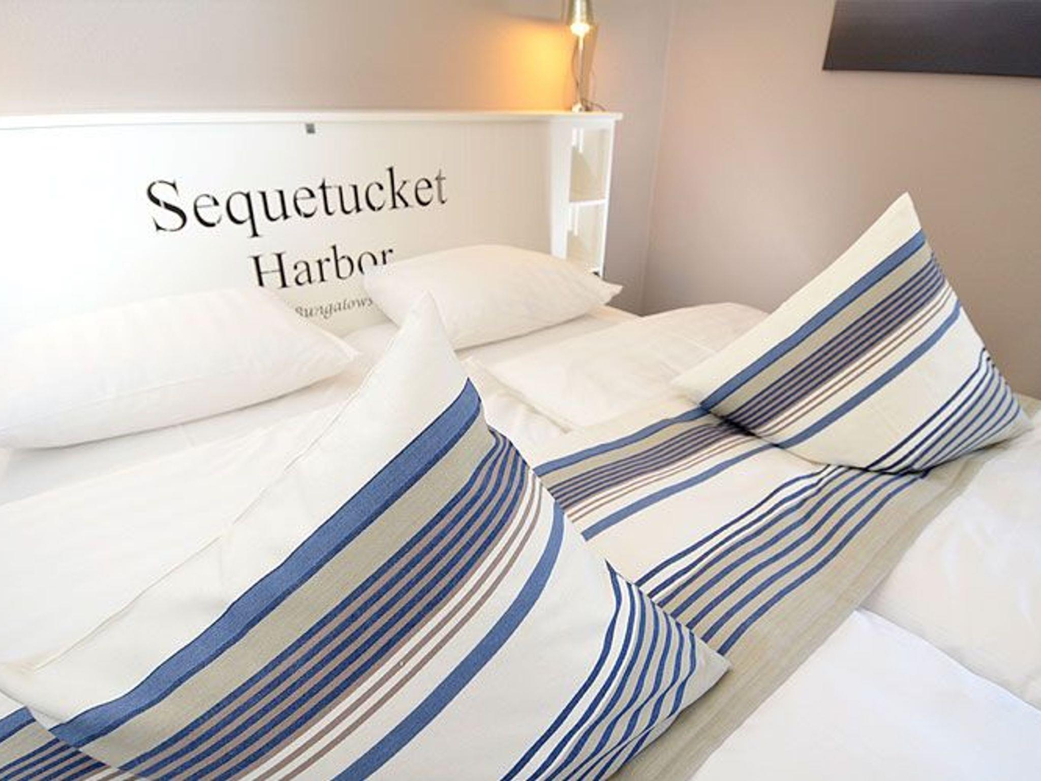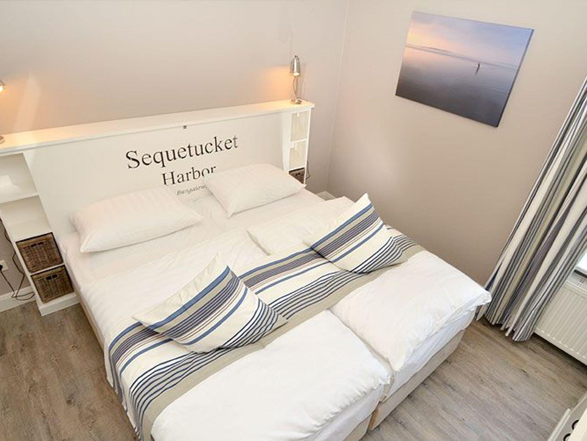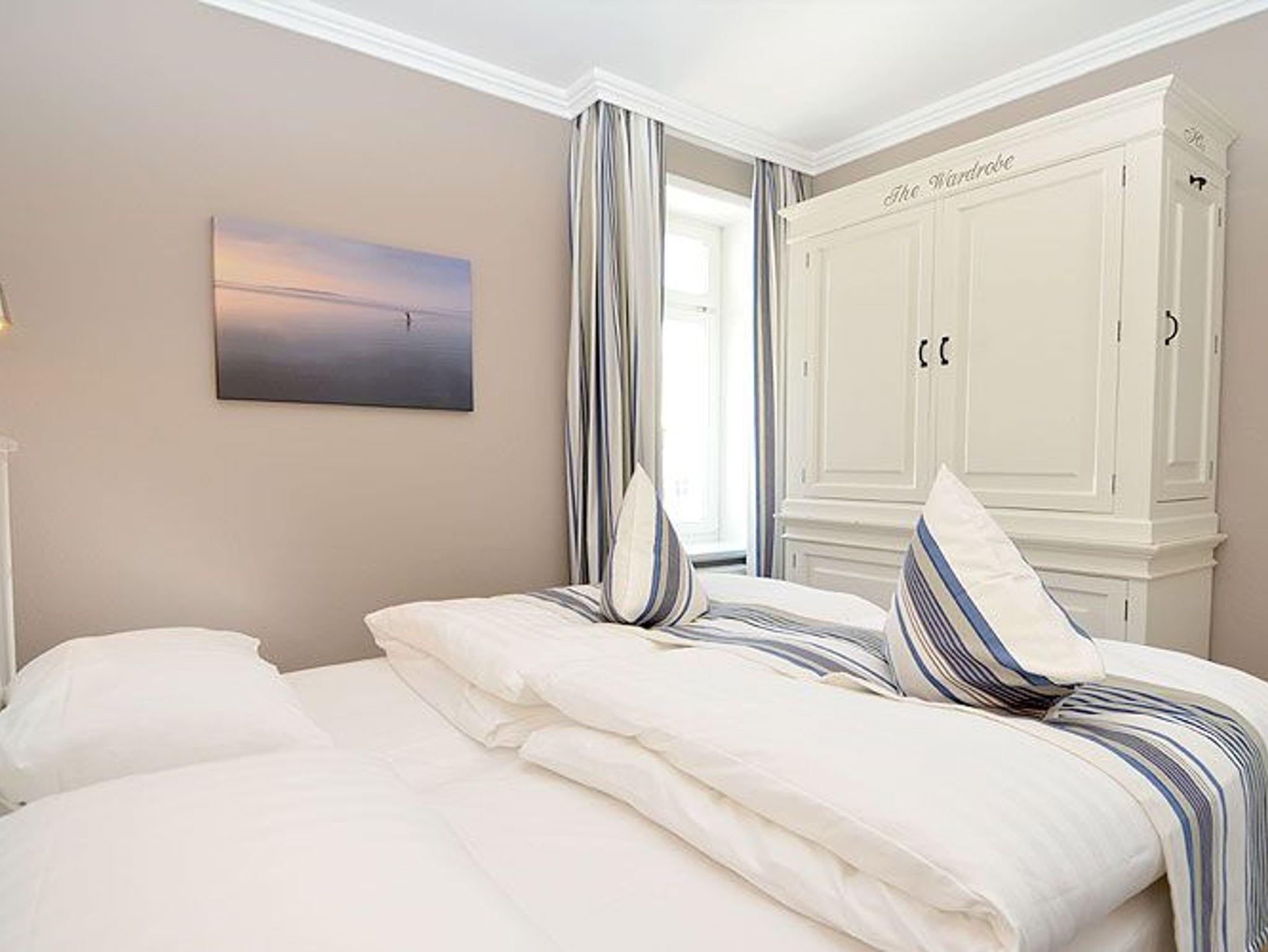 Das gemütliche Schlafzimmer wirkt durch das 5 Star-Deluxe-Boxspring-Doppelbett (1,80 x 2,00 m) mit Komforthöhe und dem ausreichenden Stauraum für Ihre Garderobe ganz besonders einladend.