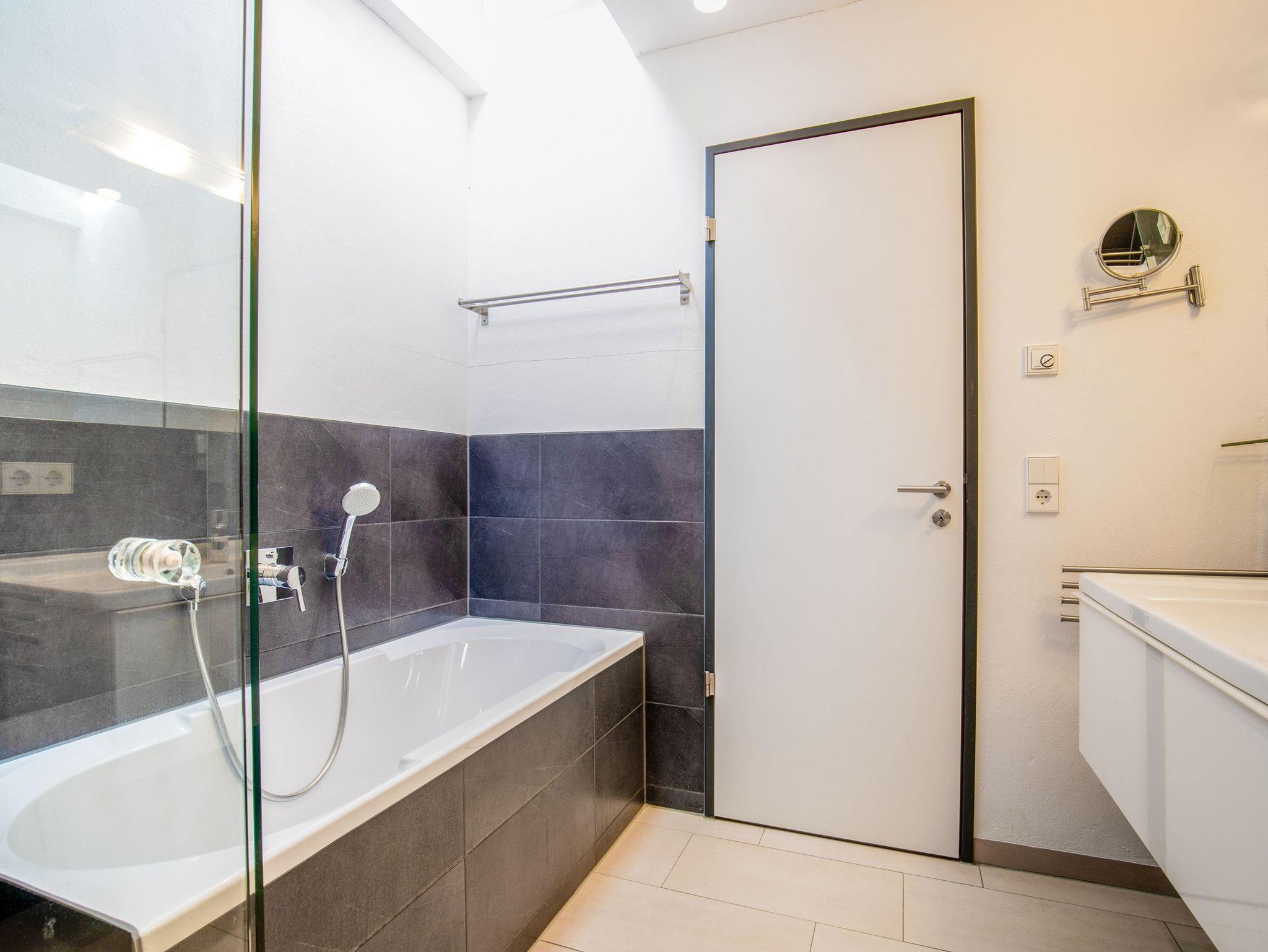 Hinter seiner bauhaustypischen Fassade verfügt Ihr Urlaubsdomizil über zwei Schlafzimmer mit bequemen Doppelbetten, großen Kleiderschränken und Flachbild-TV, zwei Bäder, eine Finnische Sauna, ein geräumiges Wohnzimmer mit Kaminofen, Schlafcouch, Flatscreen-TV sowie voll ausgestatteter Wohnküche mit Essbereich und einer großen Außenterrasse. Auf der Terrasse stehen Ihnen in der warmen Jahreszeit bequeme Sitzmöbel und ein Grill zur Verfügung, so dass man die Sommerabende bei Leckereien vom Grill wunderbar ausklingen lassen kann.