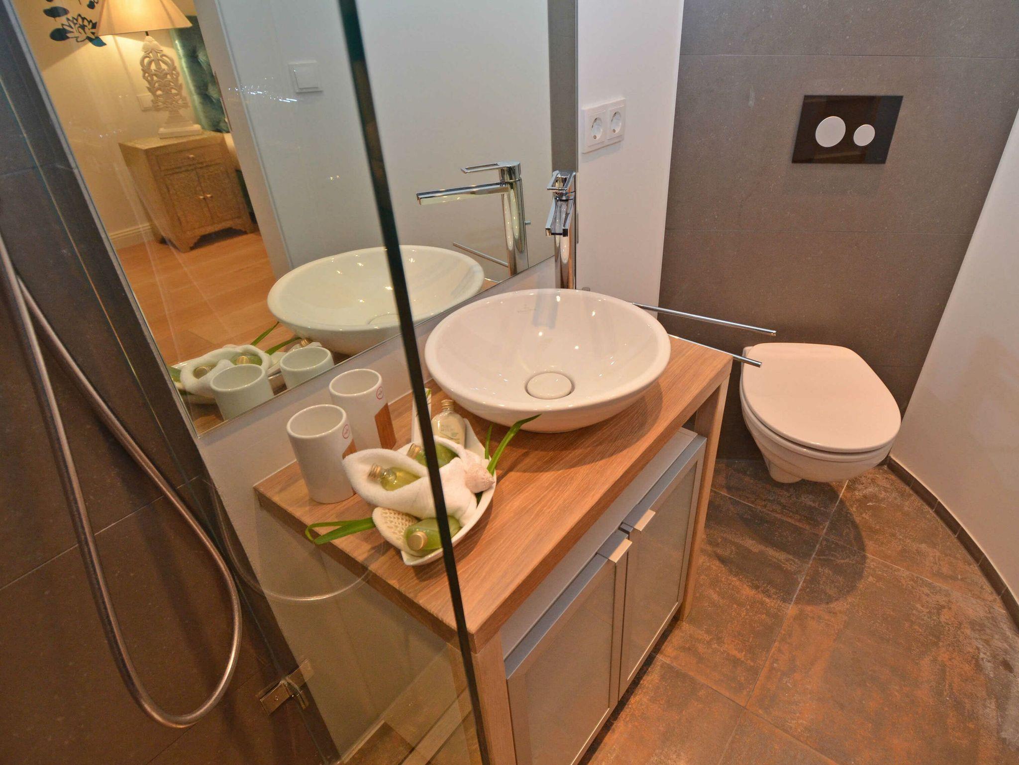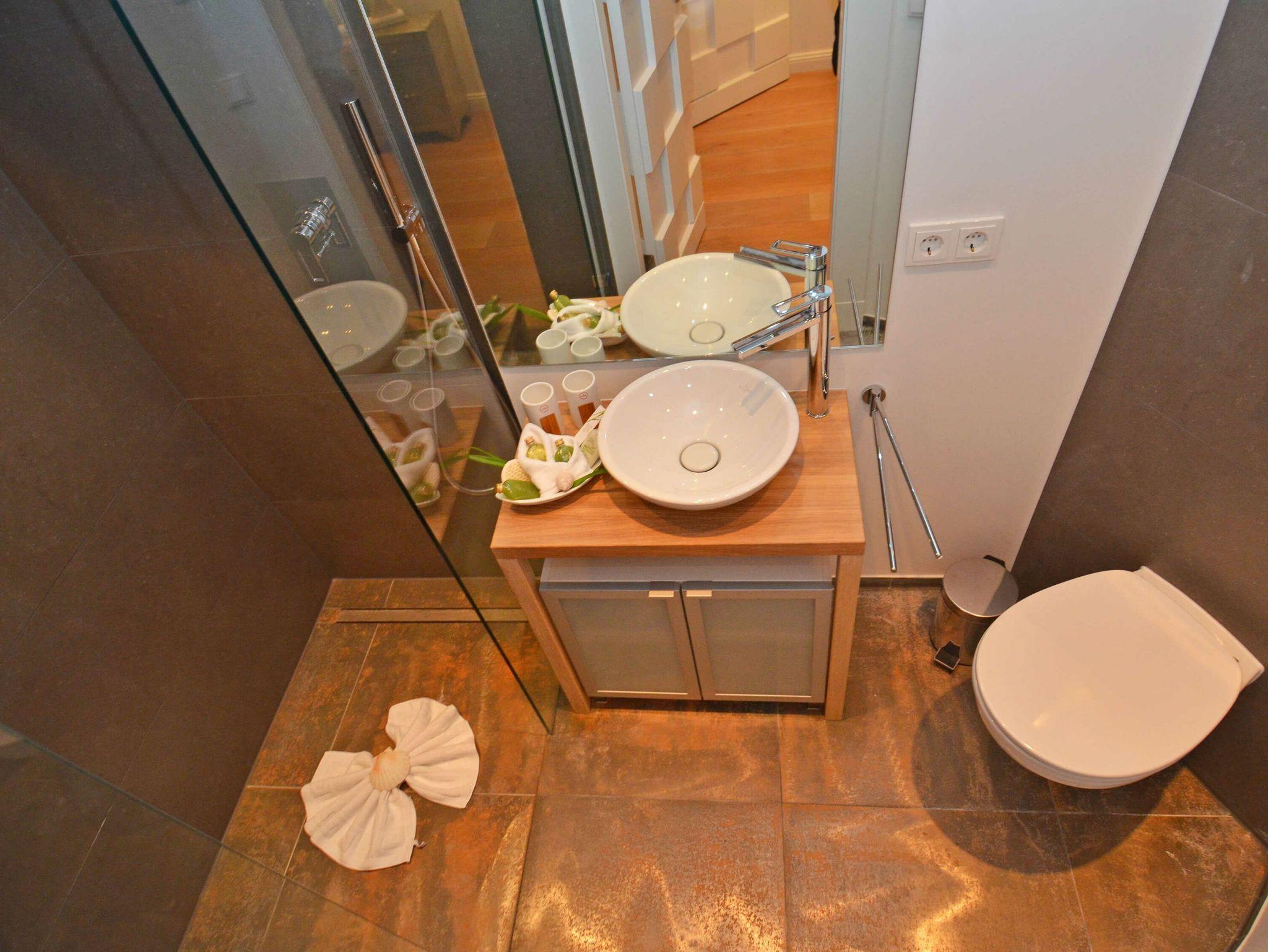 Zwei Schlafzimmer sind je mit einem komfortablen Doppelbett und einem modernen Duschbad mit hochwertigen Armaturen ausgestattet. Das dritte Schlafzimmer ist ein kombiniertes Wohn-/Schlafzimmer mit einer bequemen Ledercouch inkl. Schlaffunktion für 2 Personen und einem eigenen TV. Es kann ideal auch als Fernseh-, Lese- oder Relaxzimmer für ruhige Stunden genutzt werden. Ein Gäste-WC steht Ihnen ebenfalls zur Verfügung.