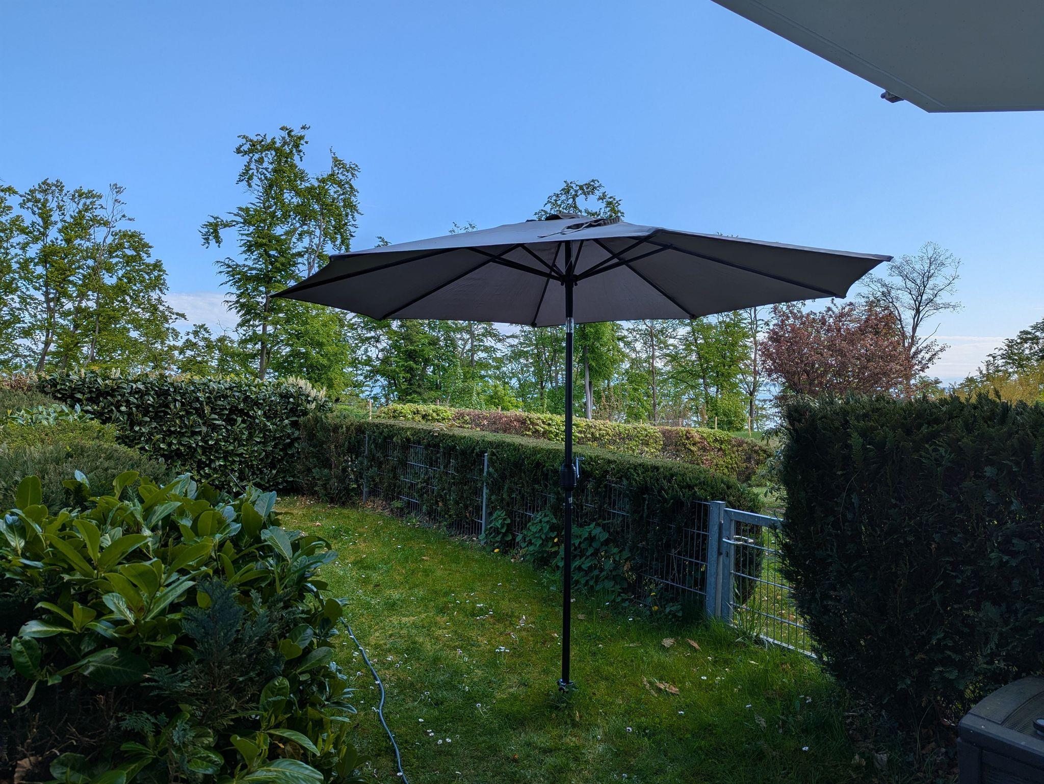 2 bestuhlte Terrasse mit Sonnenschirm (Rauchen ist im Garten und auf der Terrasse gestattet)