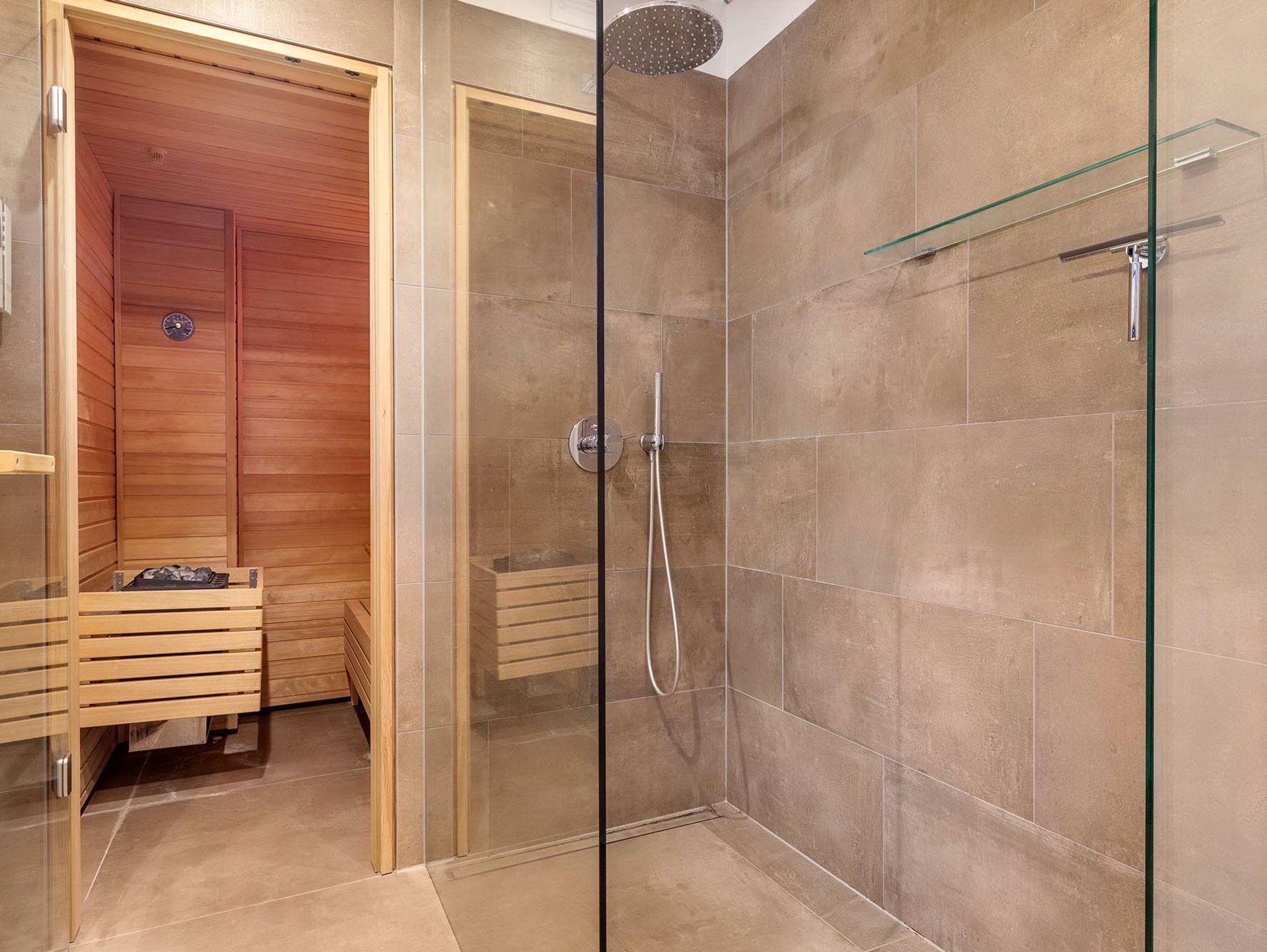 Der Wohn- und Essbereich lädt mit hochwertigen Leder- und Eichenmöbeln, integrierter Designerküche und modernster Unterhaltungselektronik zum gemeinsamen Entspannen ein. Für kuschelige Gemütlichkeit sorgen der Kamin, die Sauna mit Farblicht und eine Fußbodenheizung. Auch das stilvolle Schlafzimmer und das Interieur des Masterbads mit seinem Designwaschtisch und der ebenerdigen Dusche werden Sie begeistern. Auf der südwestlich ausgerichteten Terrasse stehen Ihnen bequeme Sitzmöbel und ein BBQ-Grill zur Verfügung.