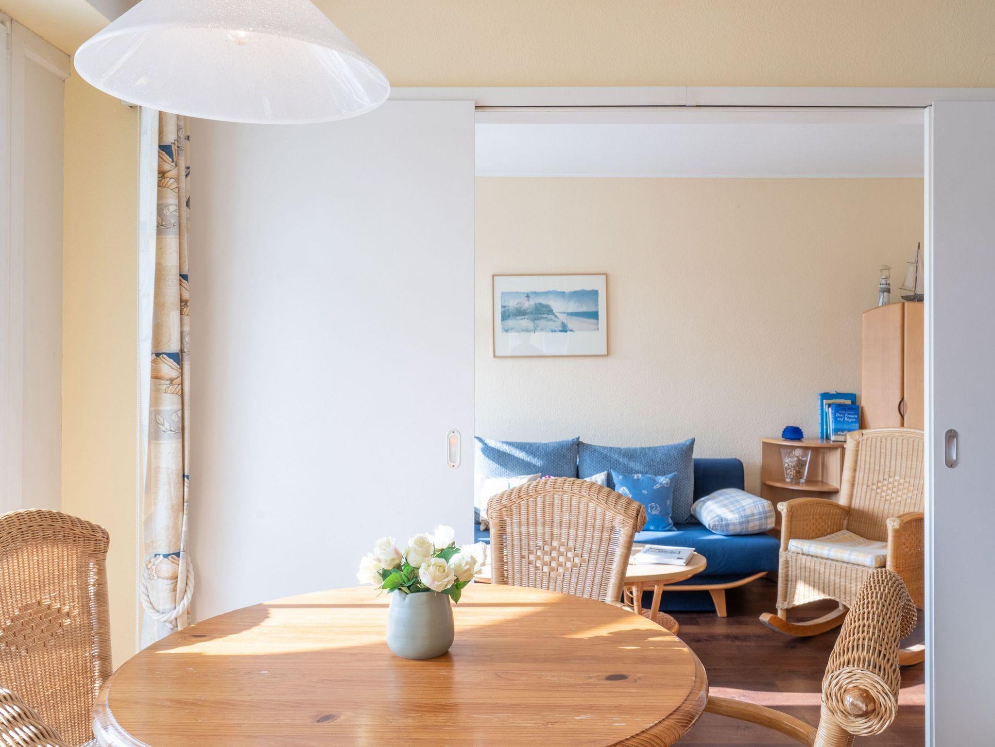 Auf dem Balkon in Südostlage können Sie den Ausblick und die Sitzgruppe nutzen, um das Urlaubsgefühl zu genießen. Die Ferienwohnung ist ein Nichtraucher-Apartment und Haustiere sind nicht erlaubt.