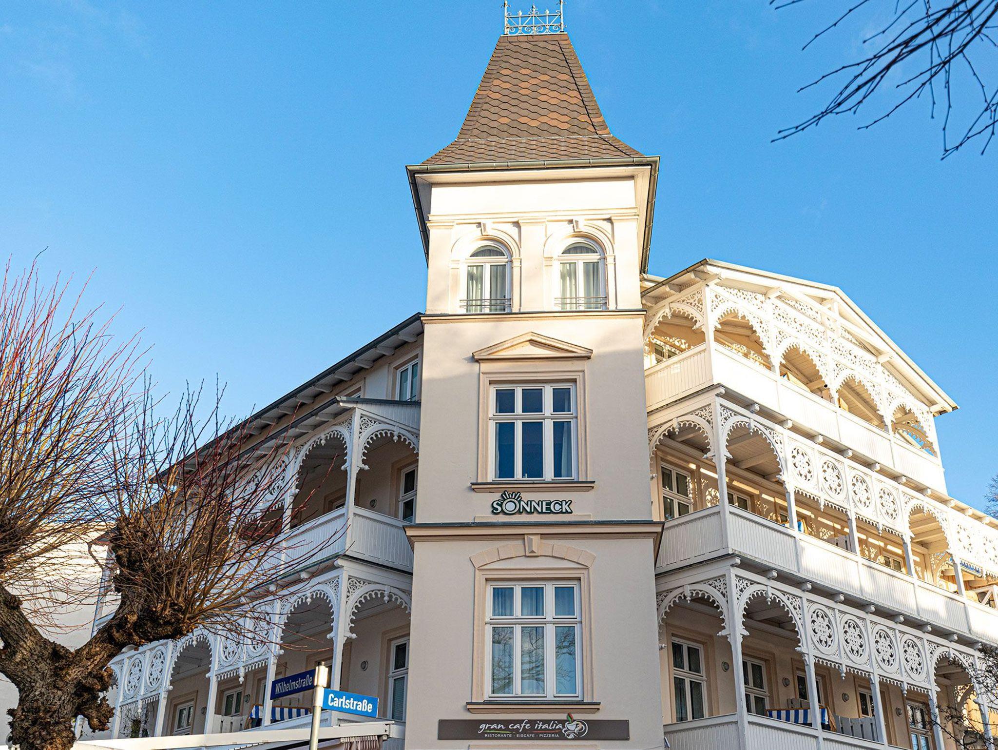 Im ersten Obergeschoss der Villa Sonneck begrüßt Sie dieses schöne Domizil. Die Ferienwohnung wurde im Frühjahr 2023 komplett saniert. Direkt an Sellin´s Prachtstraße -der Wilhelmstraße- gelegen, bietet diese Unterkunft einen tollen Startpunkt um die unzähligen Restaurants und den feinsandigen Ostseestrand zu erkunden. Auf gut 65qm Wohnfläche, unterteilt in Wohnzimmer mit Schlafcouch, 2 Schlafzimmer sowie Duschbad, bietet diese Wohnung ausreichend Platz für bis zu 6 Personen. Per Lift erreichen Sie den Saunabereich im Untergeschoss des Hauses, welcher an kalten Tagen für wohltuende Wärme sorgt. Hier gibt es auch einen direkten Zugang zum hauseigenen Restaurant (Italiener), welches die Gäste gerne mit diversen Köstlichkeiten versorgt. Ebenso befinden sich Waschmaschine und Trockner auf dieser Etage. Für Ihren PKW ist ein kostenfreier Stellplatz auf dem Parkplatz des Hauses reserviert. In der Wohnung gibt es kostenfreies W-Lan/Internet. Der große Balkon der Wohnung bietet ausreichend Platz für 6 Personen und lädt an schönen Sommertagen zum gemütlichen verweilen ein.