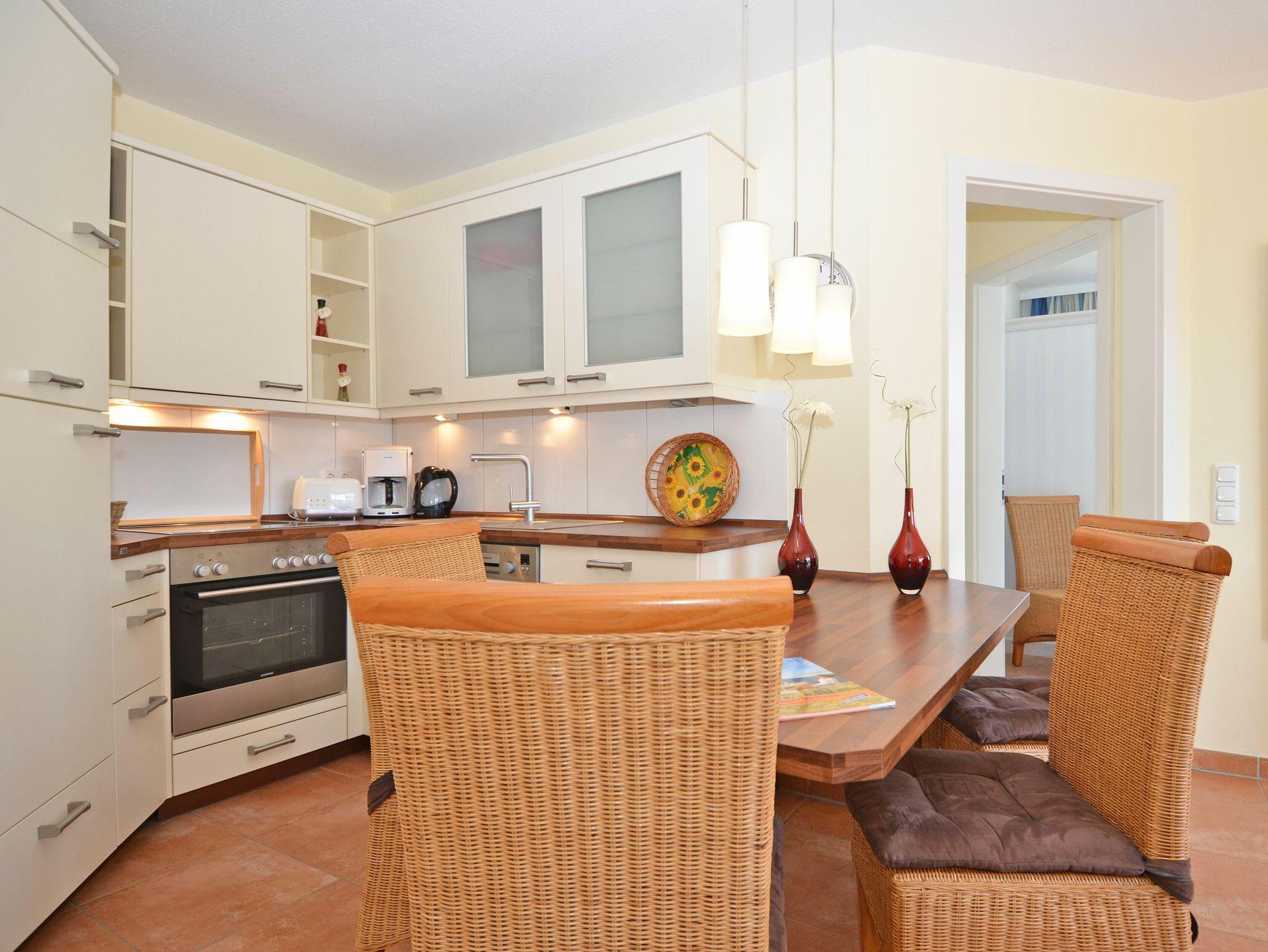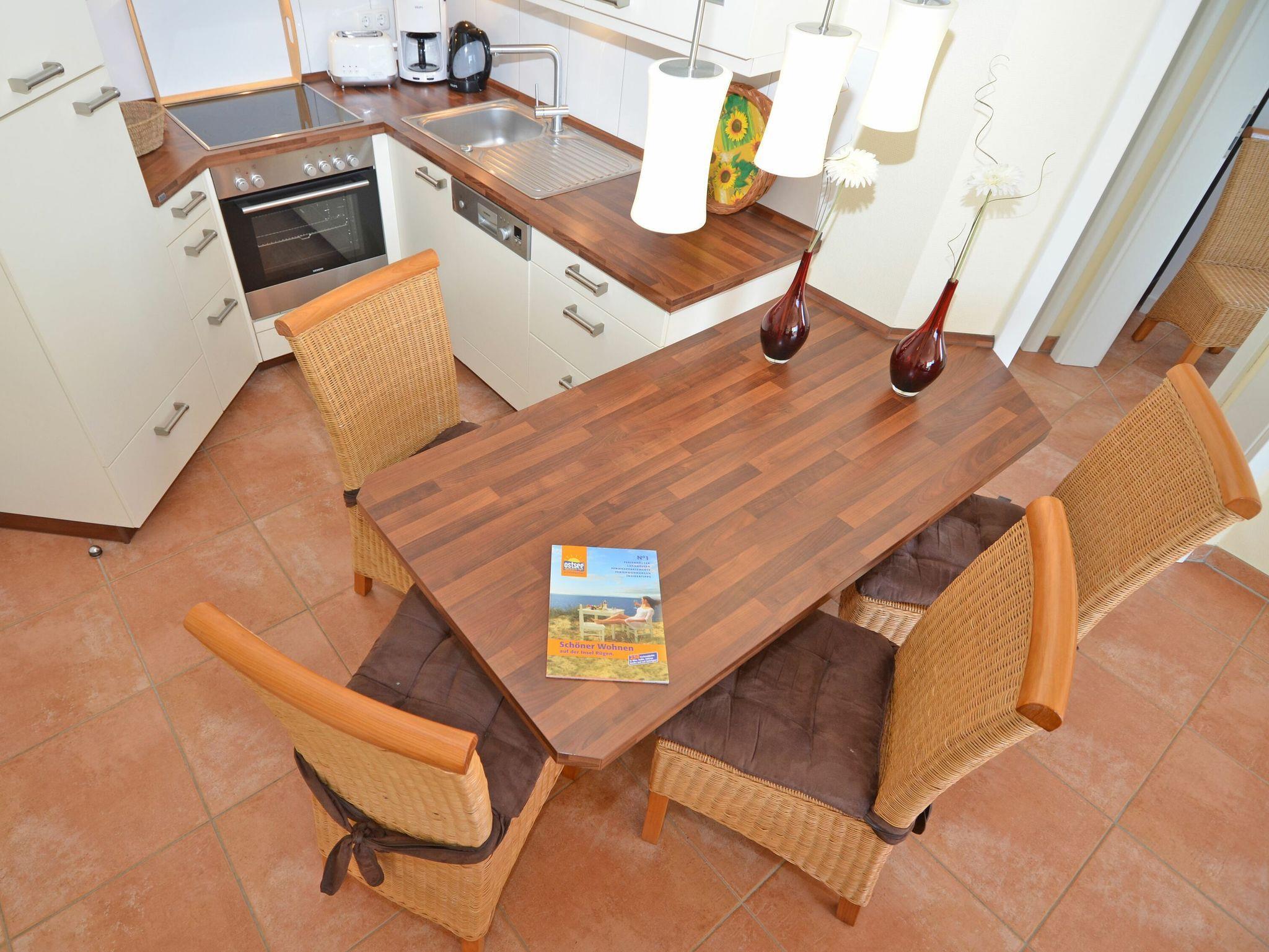 Die Nichtraucherwohnung verfügt über ein geräumigen Wohnraum mit einer bequemen Schlafcouch (Aufbettung für 1 Person), einem großen LCD-Flachbild-TV, einer Stereoanlage mit CD-Player, einem DVD-Player sowie einem Esstisch und der im Wohnbereich harmonisch integrierten Küchenzeile, die keine Wünsche offen lässt. Sie finden in der Küchenzeile eine Spülmaschine, eine Mikrowelle, einen Kühlschrank, 4-Platten-Cerakochfeld, einen Backofen und diverses Kleininventar, das die Ausstattung komplettiert.