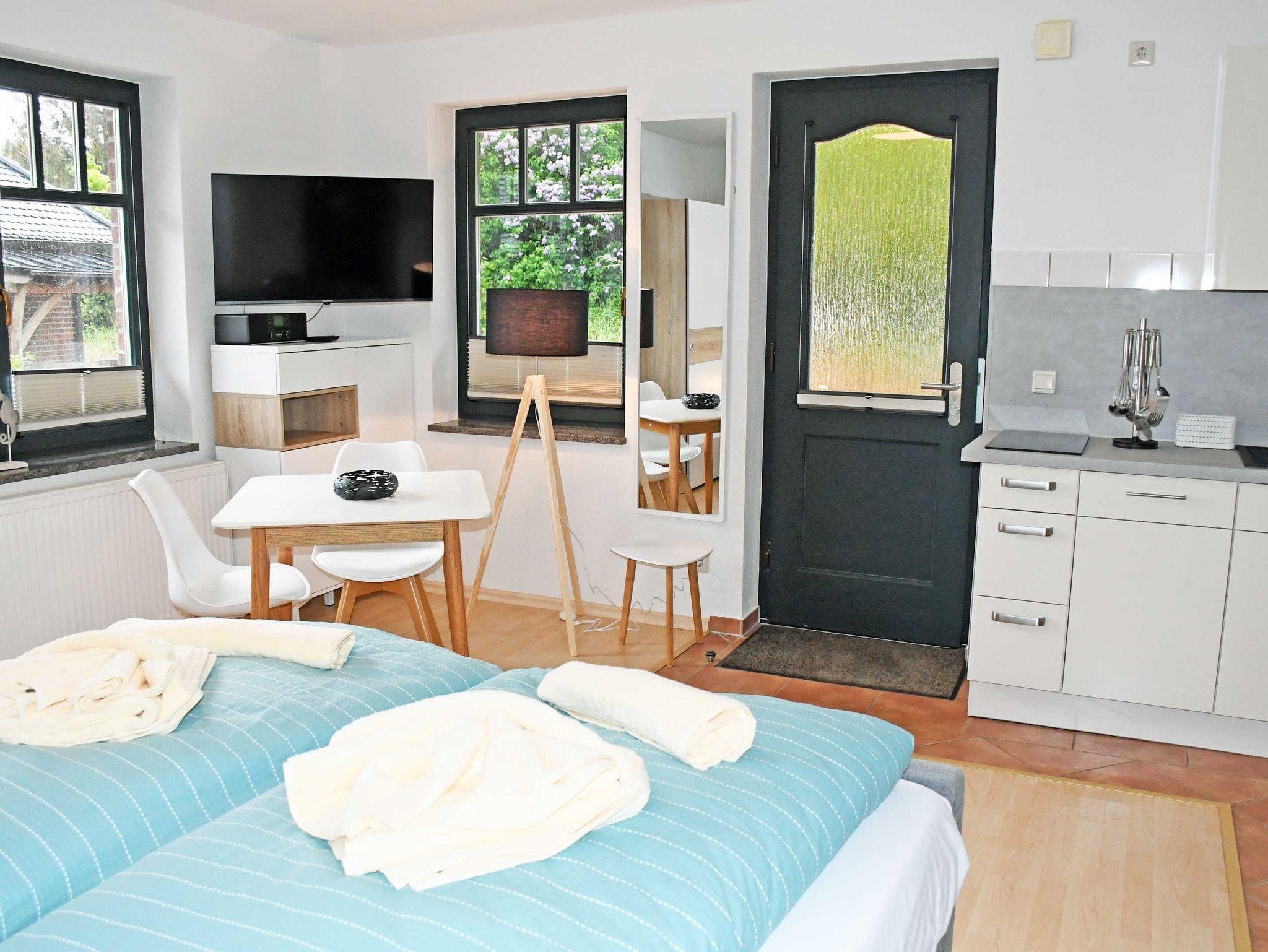 Unsere schöne 1-Raum-Ferienwohnung ist ca. 25 qm groß, hat Platz für maximal 2 Erwachsene Gäste. Sie wurde modern und liebevoll eingerichtet und bietet ein WLAN-Internetzugang.