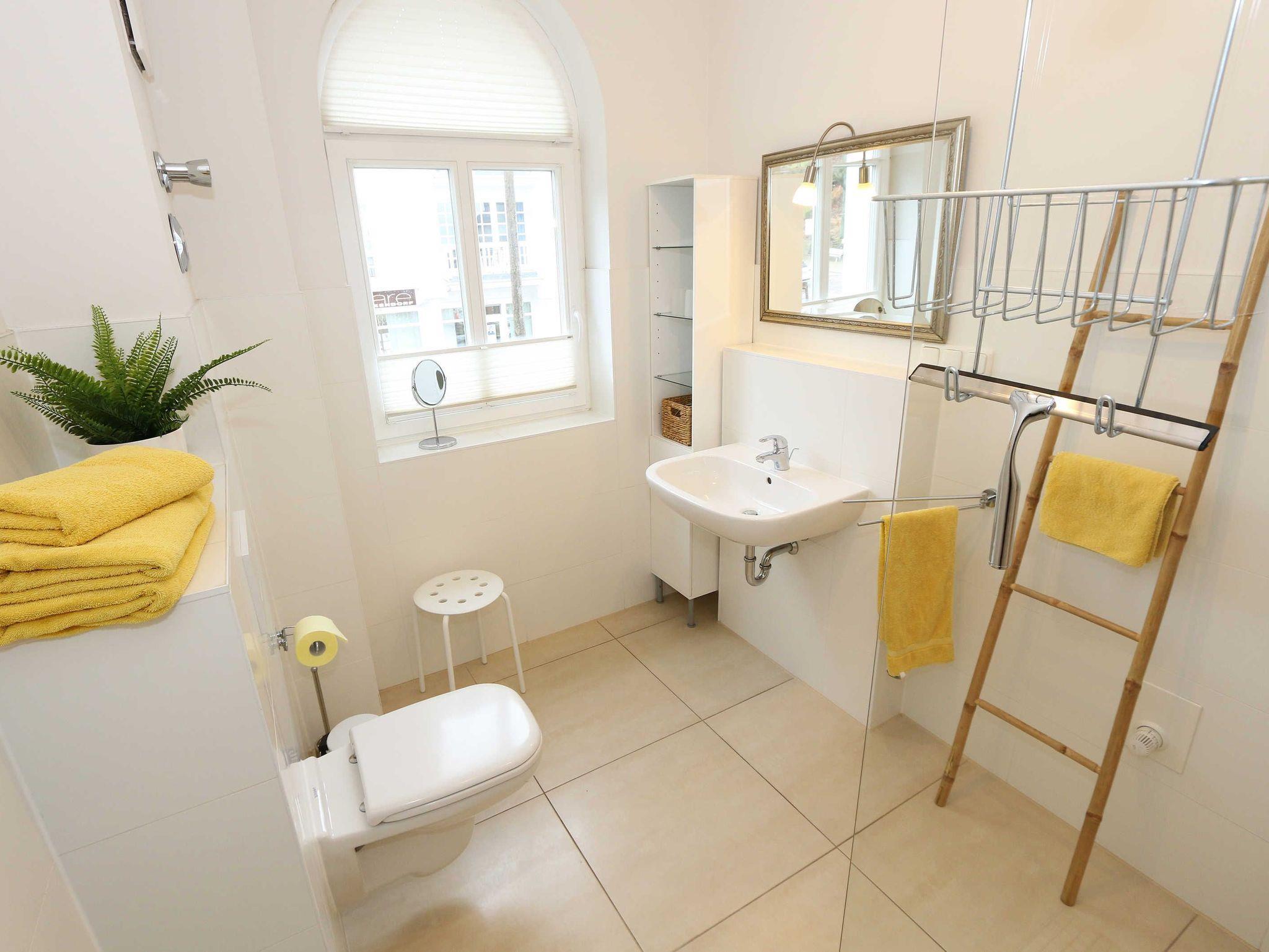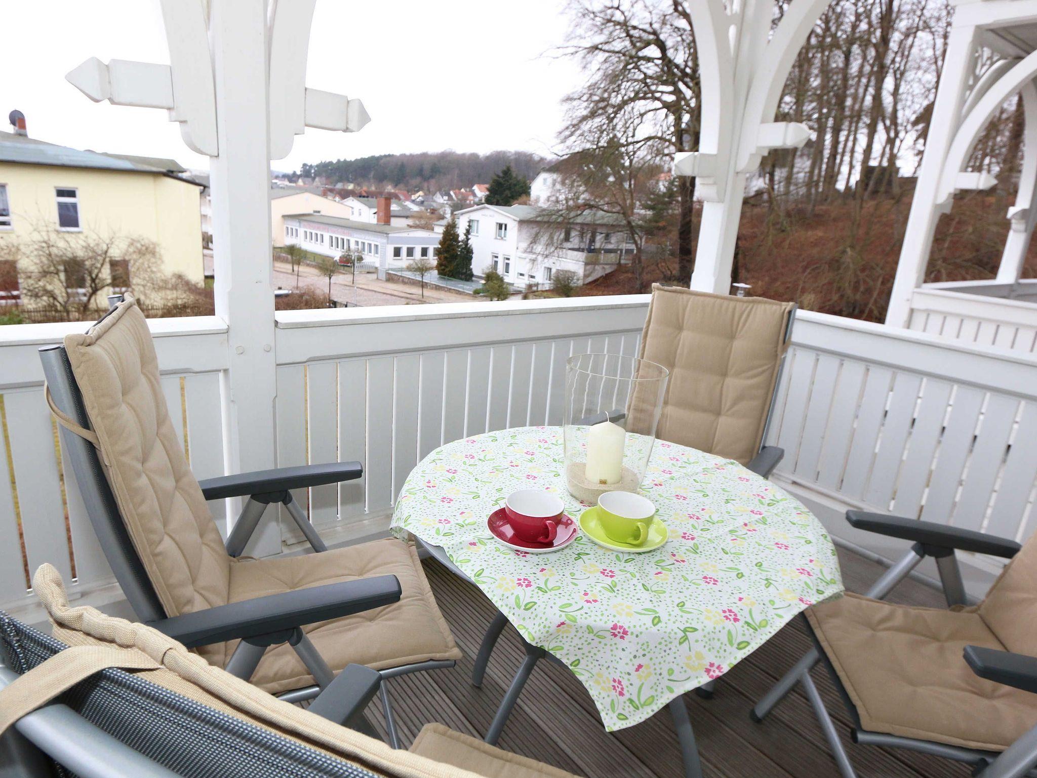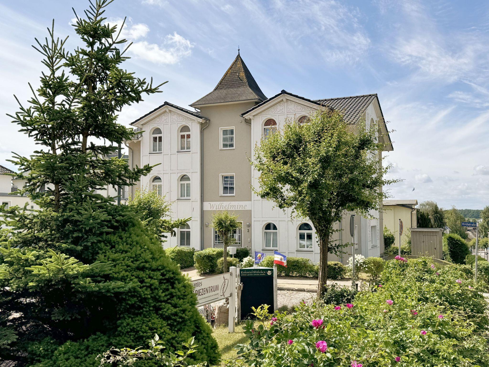 Die Villa Wilhelmine, ein ruhiges Haus mit sechs Wohnungen, liegt sehr zentral in einer Seitenstraße der bekannten Wilhelmstraße und ist in Anlehnung an deren prächtige Villen ebenfalls im Stil der Bäderarchitektur entstanden. Von hier sind die berühmte Selliner Seebrücke und der feinsandige Strand in wenigen Minuten zu Fuß erreichbar. Das im weitläufigen Seepark am Selliner See gelegene Freizeitbad und ein Fahrradverleih befinden sich in etwa 500 m Entfernung. Die liebevoll eingerichtete, 66 qm große Wohnung Kreidezimmer mit zwei Schlafzimmern liegt im 1. Stock des Gebäudes zur Gartenseite. Sie hat einen großzügigen Süd-Balkon, der im Sommer bequemen Sitzplatz zu Ihren Mahlzeiten bietet. In der kühleren Jahreszeit sorgt ein eleganter Elektrokamin für Gemütlichkeit im modern eingerichteten Wohnzimmer.