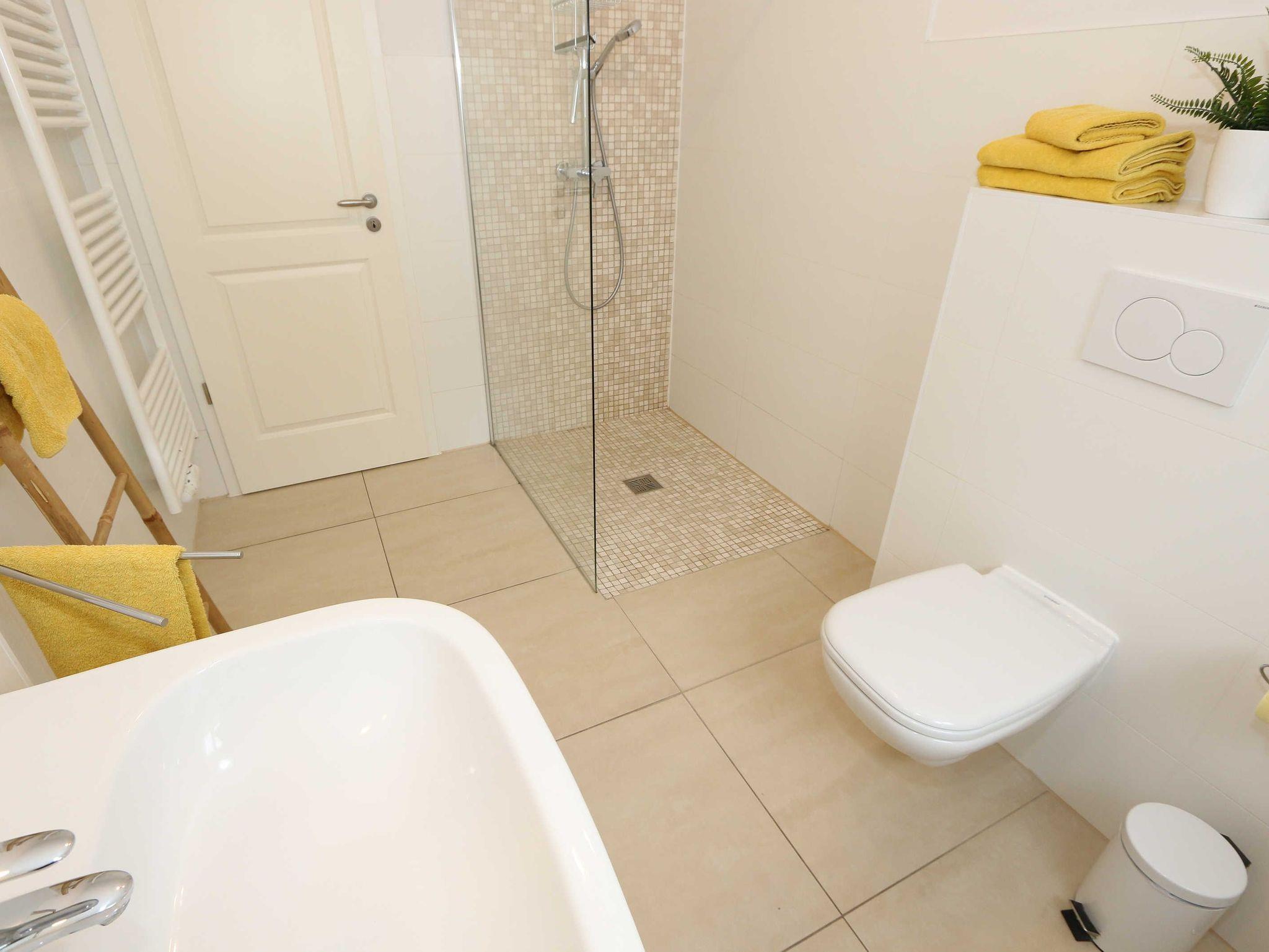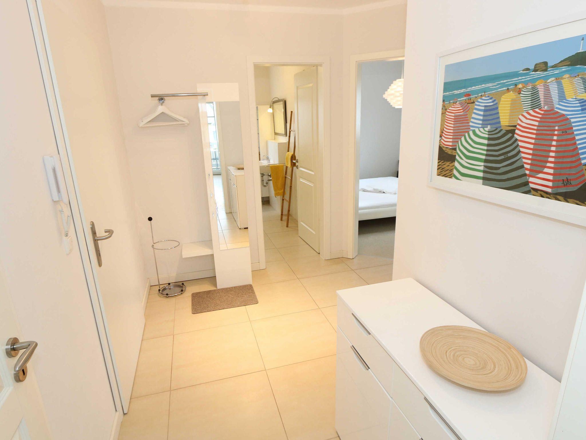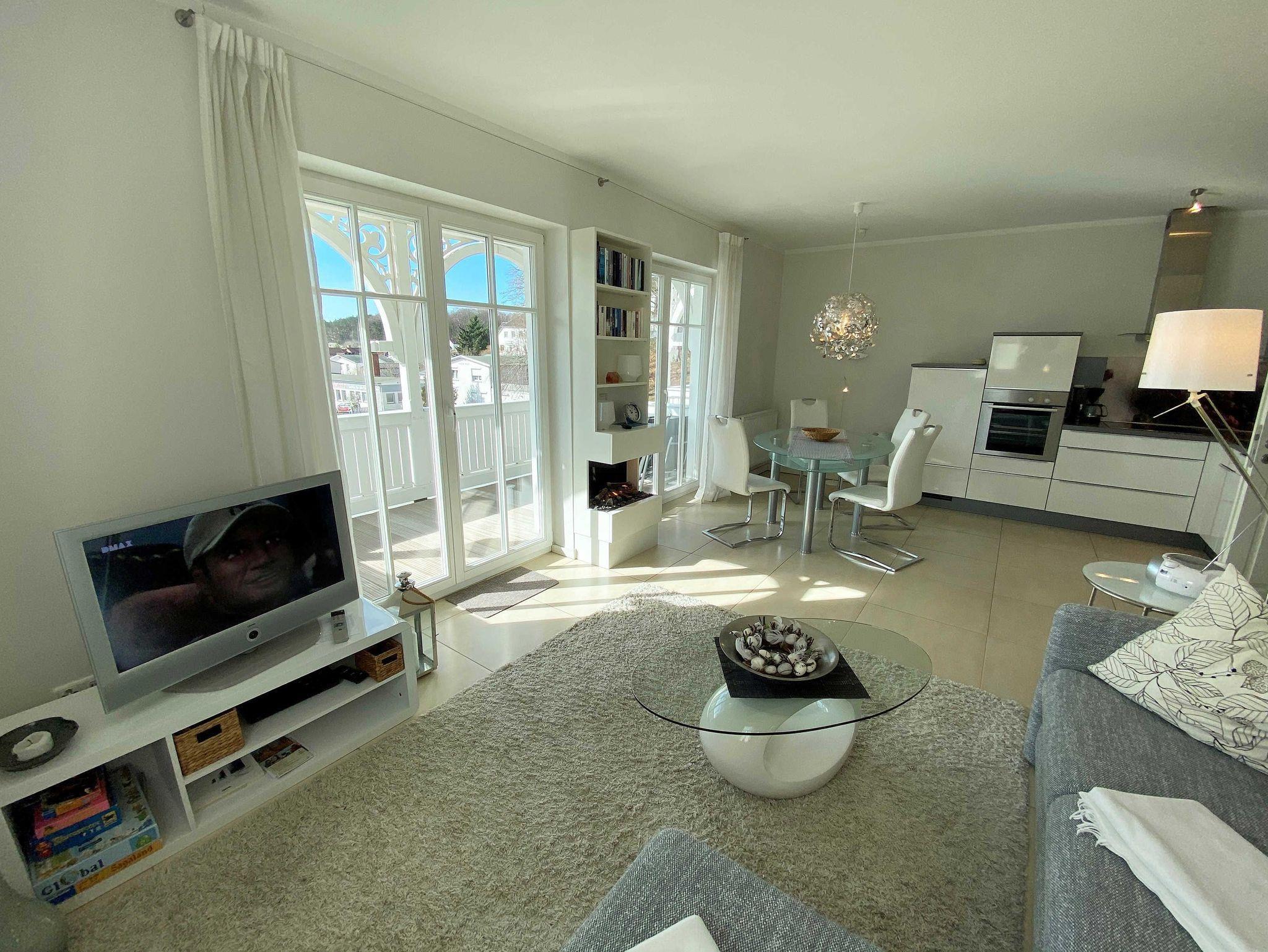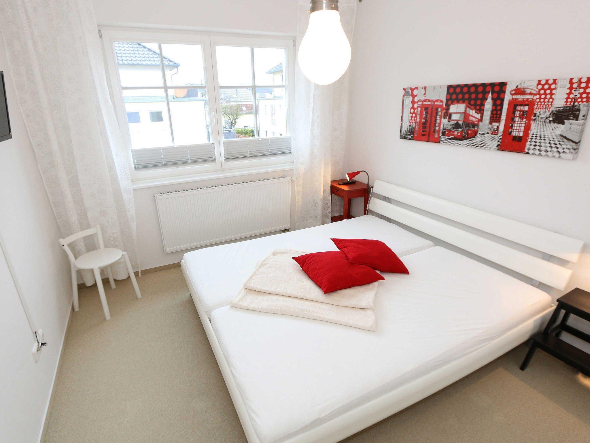 Die helle Nichtraucherwohnung mit Fliesenboden und Teppich in den Schlafzimmern ist geschmackvoll eingerichtet. Mit Ihren ca. 66qm bietet Sie ausreichend Platz für max. 2 bis 4 Personen. Die harmonisch integrierte Küchenzeile erlaubt mit einer Heißluft-Mikrowelle und Grill in Kombination, Ceran-Kochfeld, Backofen, Spülmaschine, Kühlschrank mit Gefrierfach, Wasserkocher, Toaster, Kaffeemaschine, Senseo Pad-Maschine, Kaffeeautomat und anderen praktischen Helfern die weitreichende Umsetzung Ihrer kulinarischen Wünsche. Angrenzend befindet sich ein bequemer Esstisch. Die beiden Schlafzimmer sind mit bequemen Betten (je 1,80 m x 2,00 m), verstellbare Lattenroste und reichlich Schrankfläche ausgestattet. Der Wohnbereich wird mit einer Couch, ein Sessel, ein Couchtisch, Leselampe sowie einem Regal und TV-Board abgerundet. Ein Smart-TV im Wohnzimmer und in einem der Schlafzimmer sowie DVD-Player, Musikanlage mit DAB-Radio, Gesellschaftsspiele und eine kleine Bücherauswahl sorgen neben einem kostenlosen WLAN-Anschluss für Ihre Unterhaltung. Ein Elektrokamin im Wohnbereich lädt bei etwas schlechterem Wetter zum Verweilen ein und sorgt für die perfekte Illusion eines realen Feuers. Das großzügige Bad mit Fußbodenheizung, WC, Fön, Kosmetikspiegel, Badhocker, Waschplatz und ebenerdiger Regendusche verspricht den erholsamen Wellness-Effekt. In dem vorhandenen Abstellraum befindet sich eine Waschmaschine zur freien Nutzung. Zusätzlich befinden sich hier Reinigungsutensilien, ein Bügelbrett sowie ein Bügeleisen. Für unsere kleinen Gäste steht ein Hochstuhl inklusive zur Verfügung. Ihre Fahrräder und Strandutensilien lassen sich in einem abschließbaren Schuppen neben Ihrem PKW-Stellplatz (Nr.03) unterbringen. Haustiere sind nicht erlaubt. Die Erstausstattung eines Wäschepaketes (komplette Bettwäsche, 1 Duschhandtuch, 1 kleines Handtuch) können Sie bis 14 Tage vor Anreise gegen einen Aufpreis dazu buchen oder durch eigene ergänzen. Ab 2 gebuchten Paketen erhalten Sie einmalig 1 Geschirrhandtuch und 1 Duschvorleger dazu.