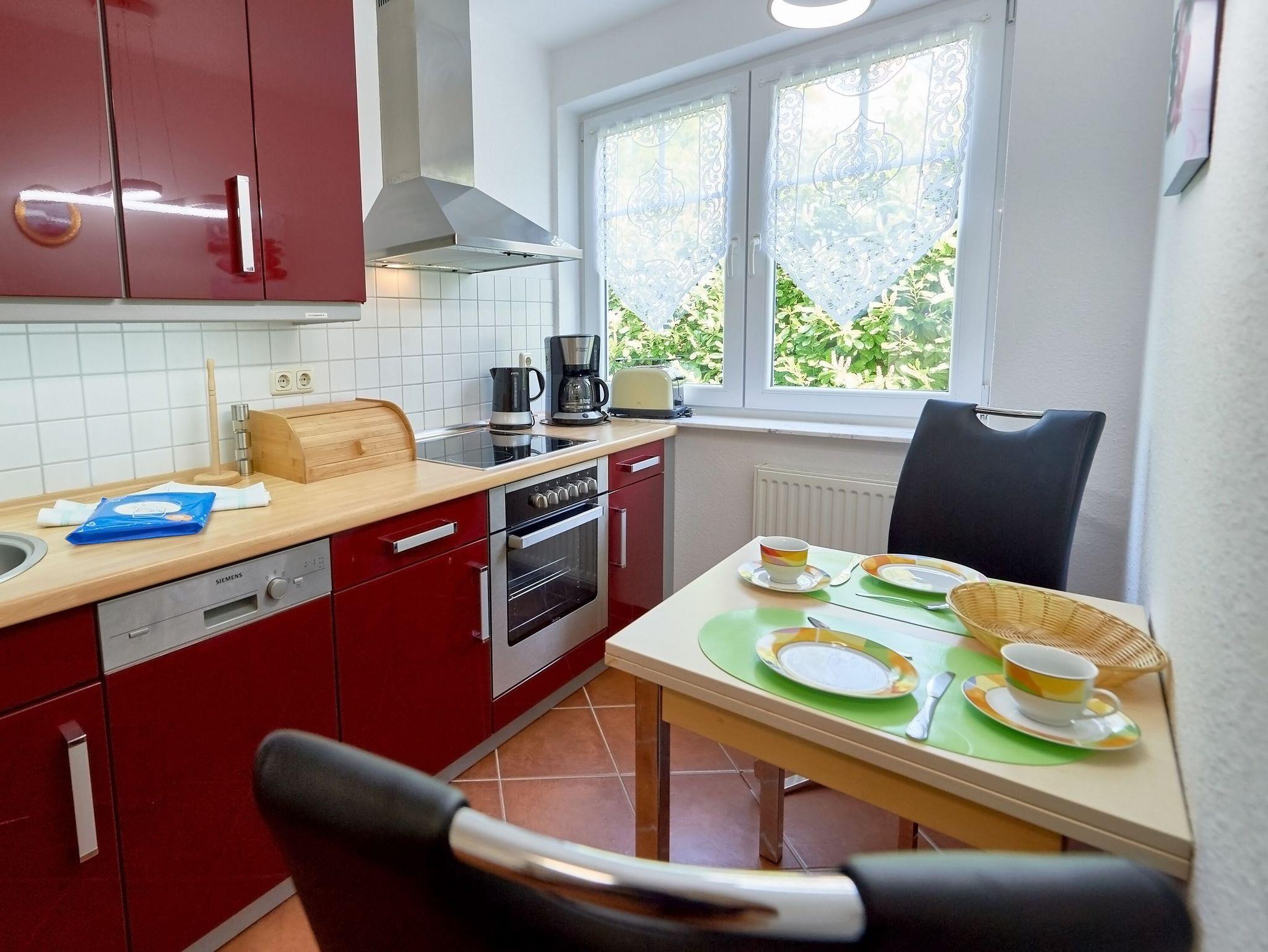 In der separaten Küche stehen Ihnen u.a. eine Spülmaschine, ein Kühlschrank mit Gefrierfach, ein 4-Platten-Cerankochfeld, ein Backofen und diverse Kleingeräte zur Verfügung, so dass Sie sich bequem selbst bekochen können, wenn Sie nicht unterwegs in einem der empfehlenswerten Lokale der Insel speisen.