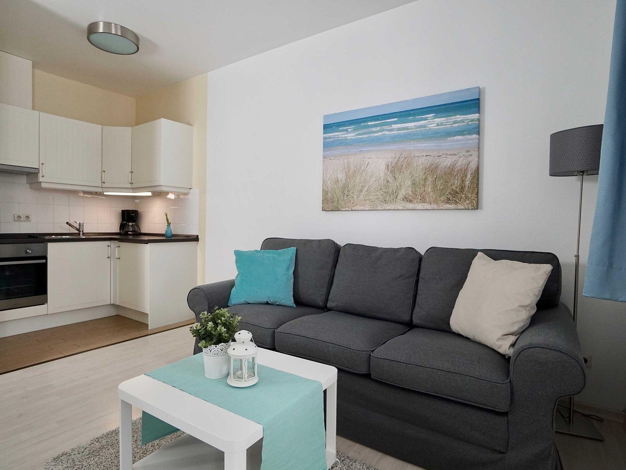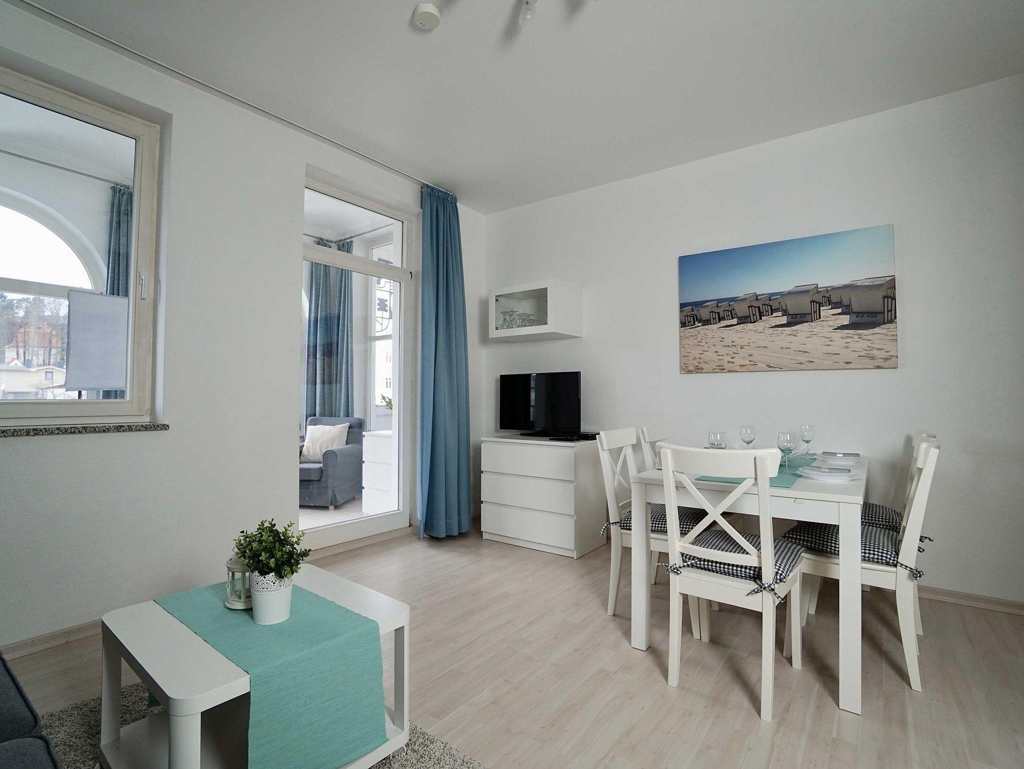 Im Komfort-Appartement Jasmund (A) mit ca. 53 - 60 m² finden bis zu 6 Personen Platz für einen schönen Urlaub. In dem modern eingerichteten Wohn- und Essbereich finden Sie ein gemütliches Sofa, das abends zu zwei Schlafmöglichkeiten umfunktioniert werden kann. Von dort aus haben Sie auch den direkten Blick auf den Flachbild-Fernseher, der gerade in den Abendstunden gut für Ihre Unterhaltung sorgen kann. Ein kostenloser WLAN-Anschluss und ein SodaStream ist nutzbar. Am großen Esstisch finden alle Gäste dieses Appartements Platz, nachdem in der angrenzenden Landhaus-Küchenzeile, die sich auch in diesem Raum befindet, die Urlaubsmahlzeit zubereitet wurde. Hier finden Sie neben einem Cerankochfeld und Backofen auch die Kaffeemaschine, Wasserkocher und Toaster.