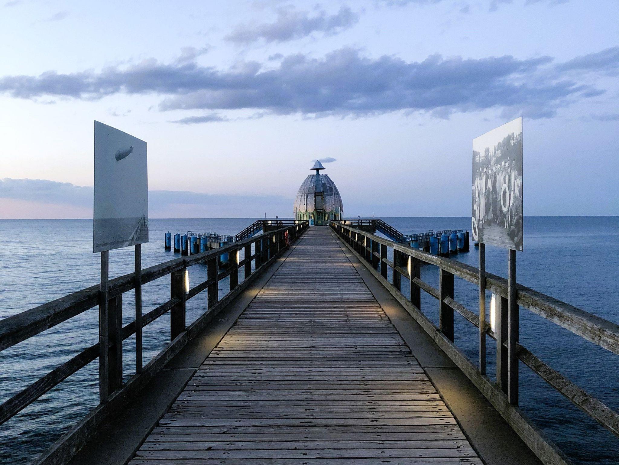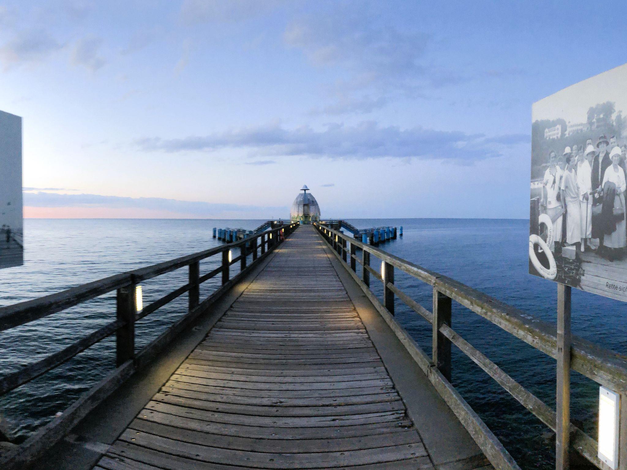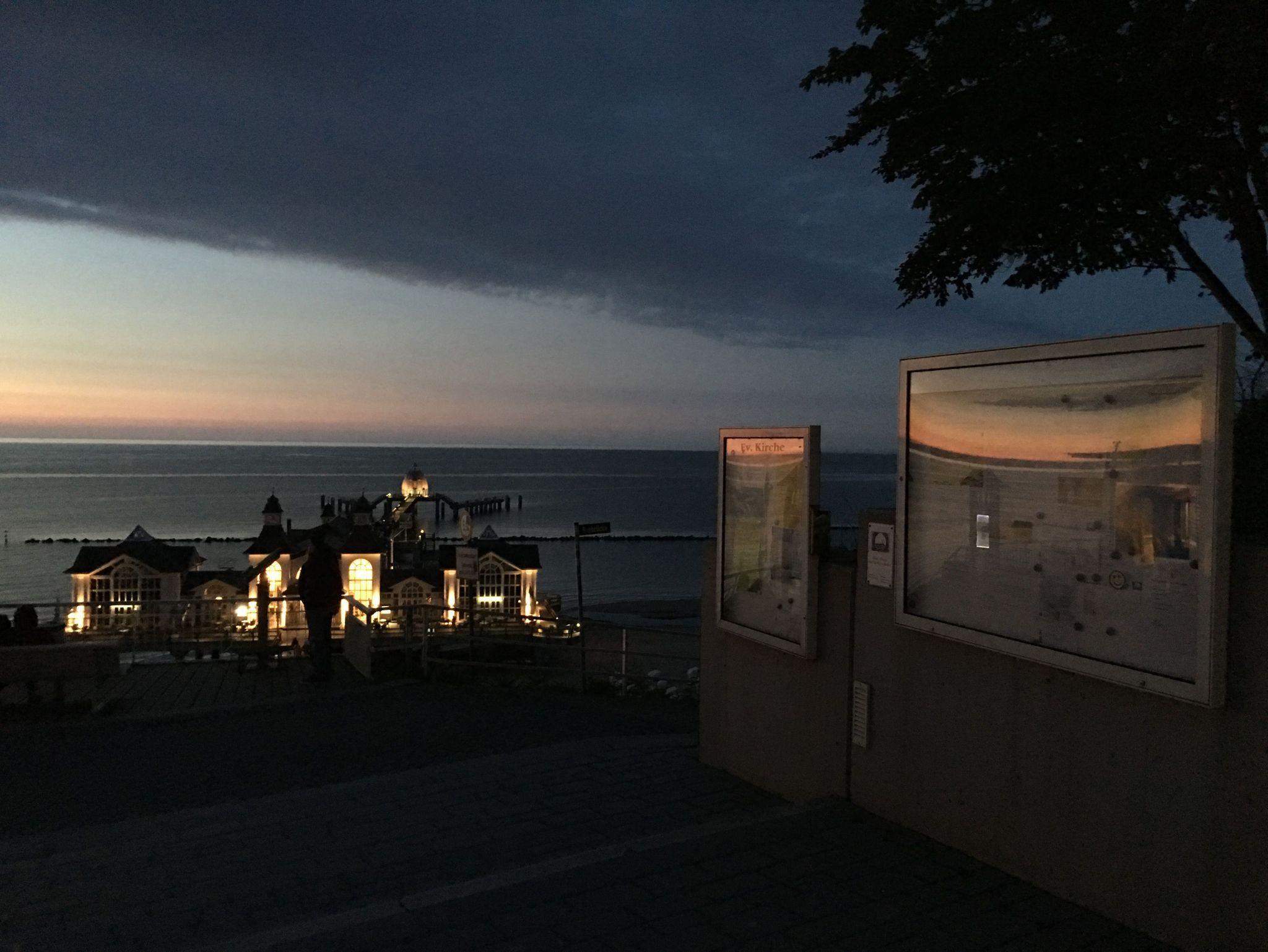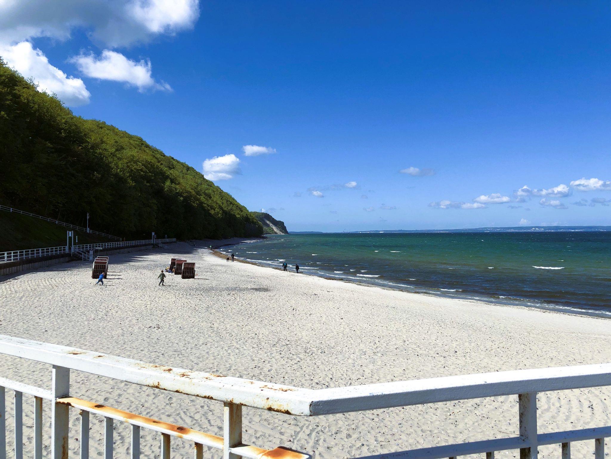 Direkt unterhalb der Ferienwohnung verläuft die Seeparkpromenade, die in nordwestlicher Richtung Meer in die Wilhelmstraße, dem Ortszentrum von Sellin, mündet. Endpunkt der Wilhelmstraße bilden das Hochufer und die bekannte Seebrücke.