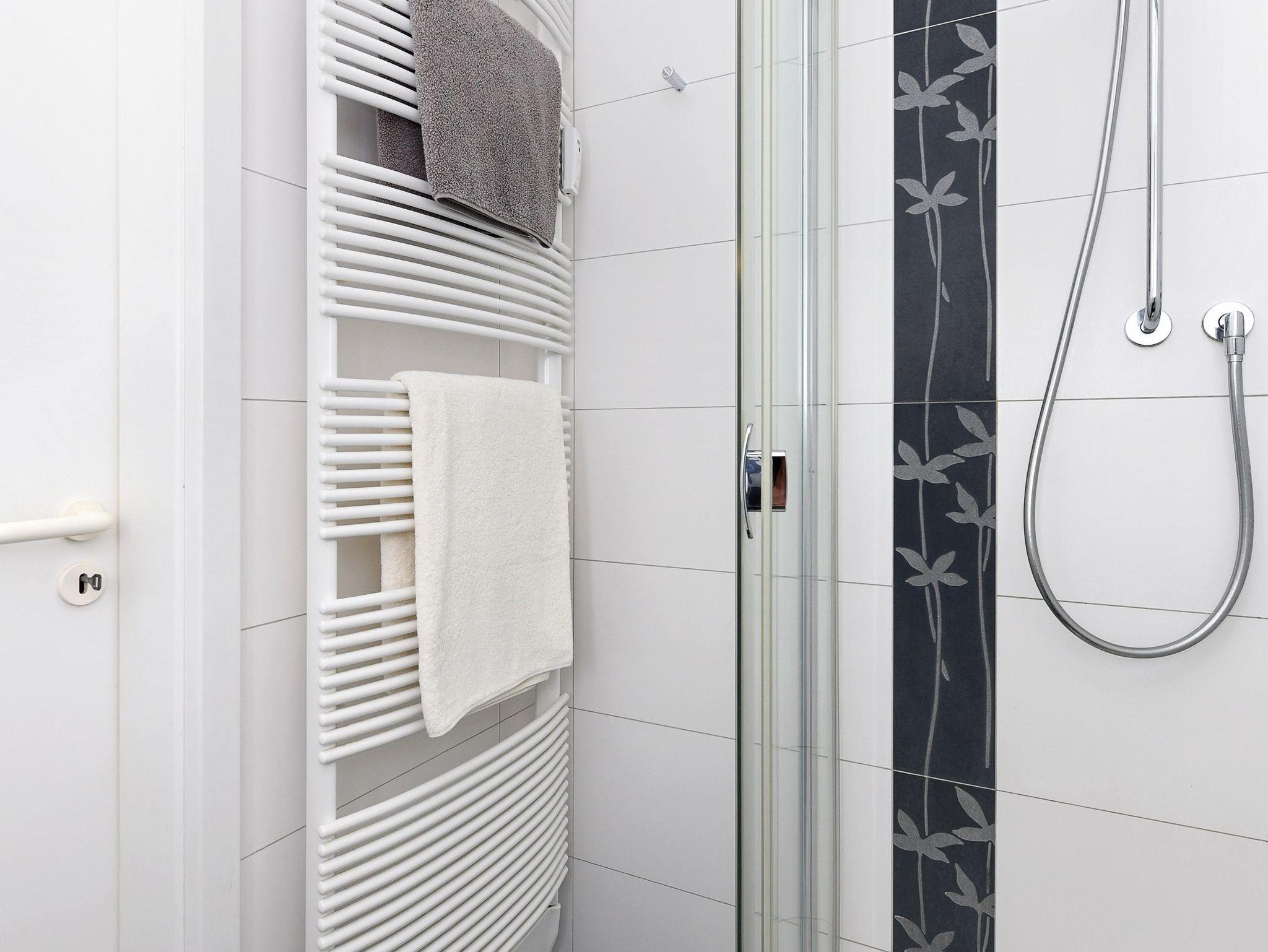 Die 52m² große Wohnung verfügt über 2 nach Südwesten ausgerichtete Balkone. Von dort aus blicken Sie auf den Seepark und das Badeparadies Ahoi Rügen mit Außenbecken, Wasserrutsche und Saunalandschaft.