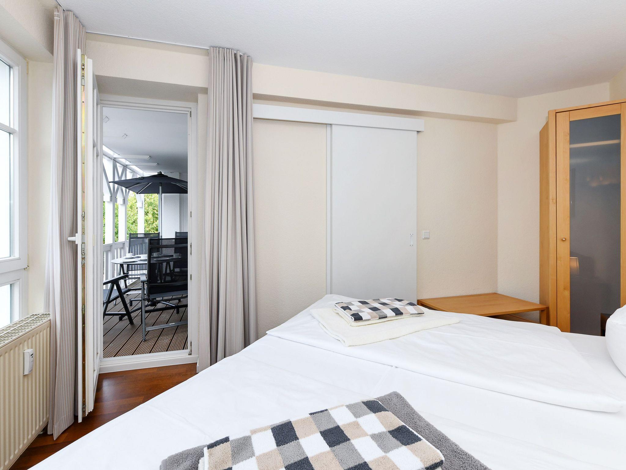 - 3 Zimmer/ 52 qm/ 4 Pers, 2 Balkone, Ausrichtung Südwest und Blick auf Seepark und Erlebnisbad,